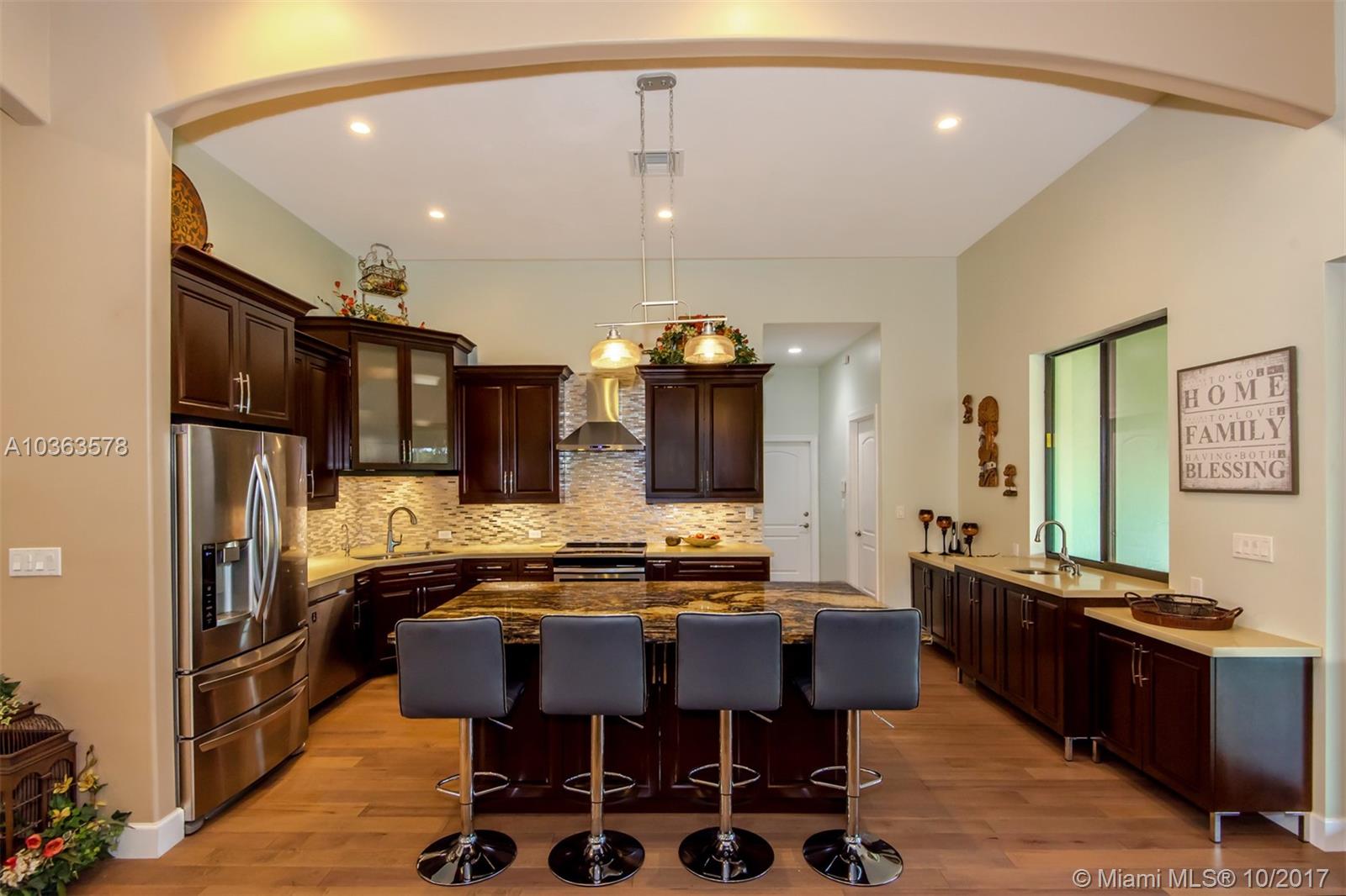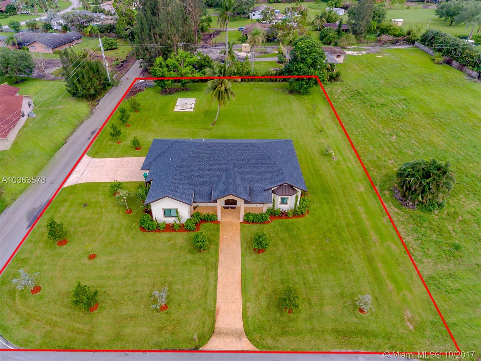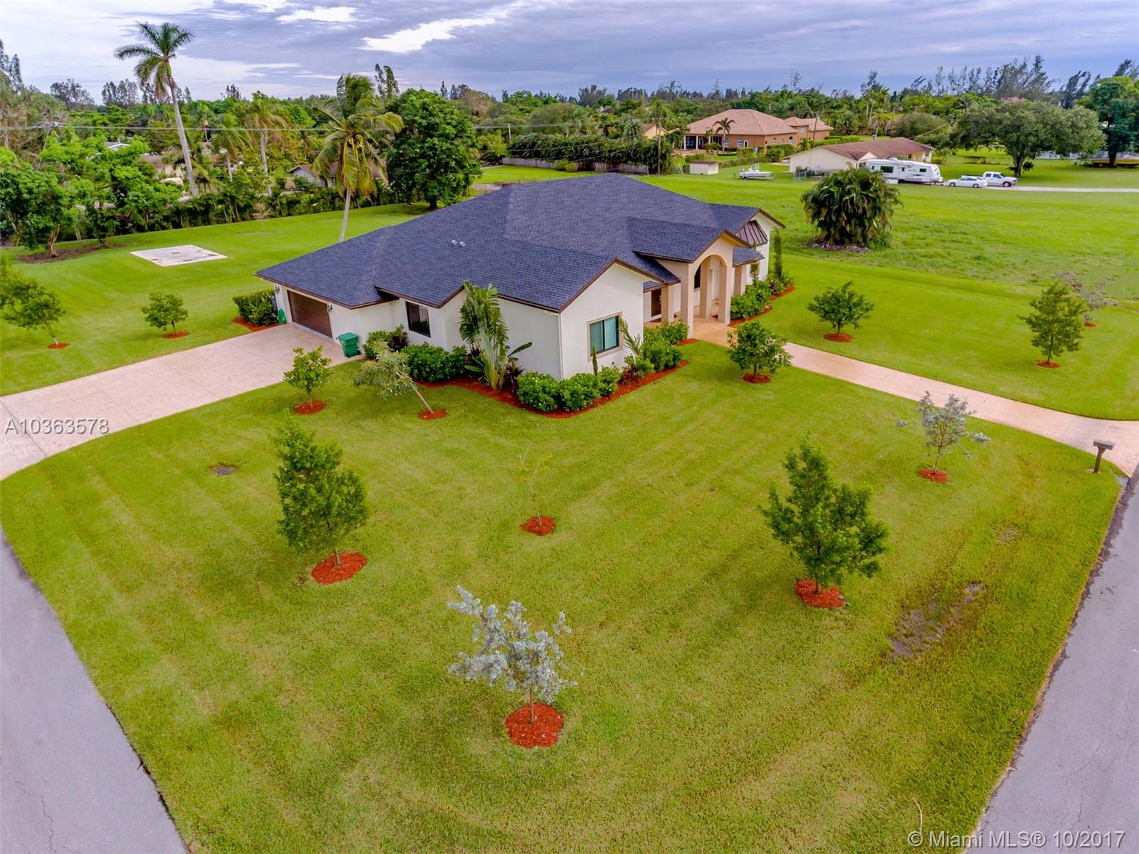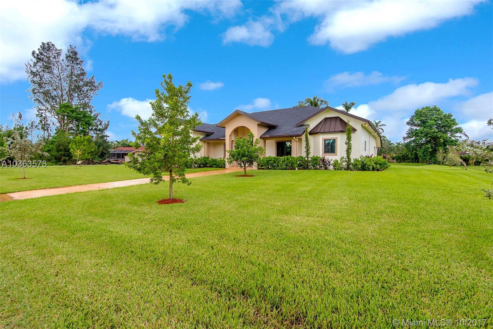 An elegant & newly built, country-style, estate home on an acre corner lot. A rare opportunity to own a new home amid the peaceful Davie farms & equestrian homes, while still being near world-class beaches, shopping, dinning & top schools. This home is turnkey & stress free. Thoughtfully built, featuring 3 bedrooms/3.5 bathrooms & an office/guest room, high impact windows & doors, volume ceilings, open layout with split bedroom floor plan, pantry & laundry rooms. Perfect for entertaining with warm wood floors, a custom all-wood kitchen & wet bar topped with quartz & granite counters & covered patio with an expansive lot. The oversized 2.5-car garage houses the 2 super-high efficiency Lennox HVAC units & has a workbench. Driveway fits 6 more cars.