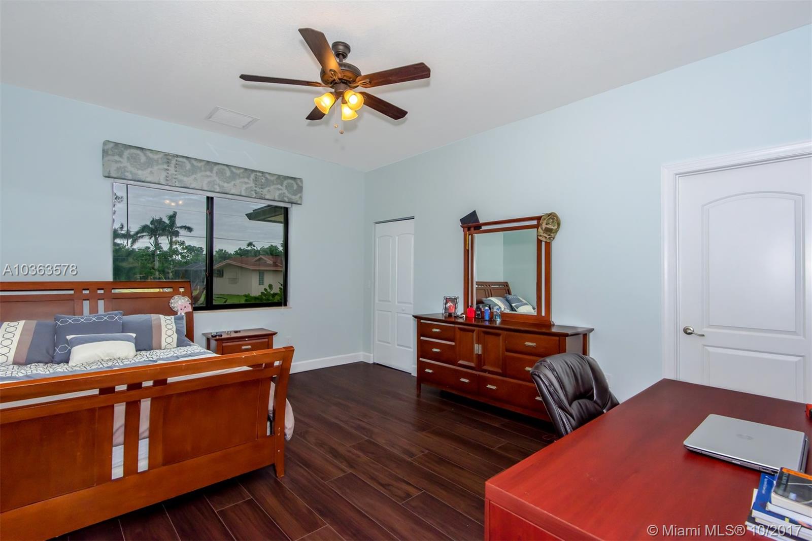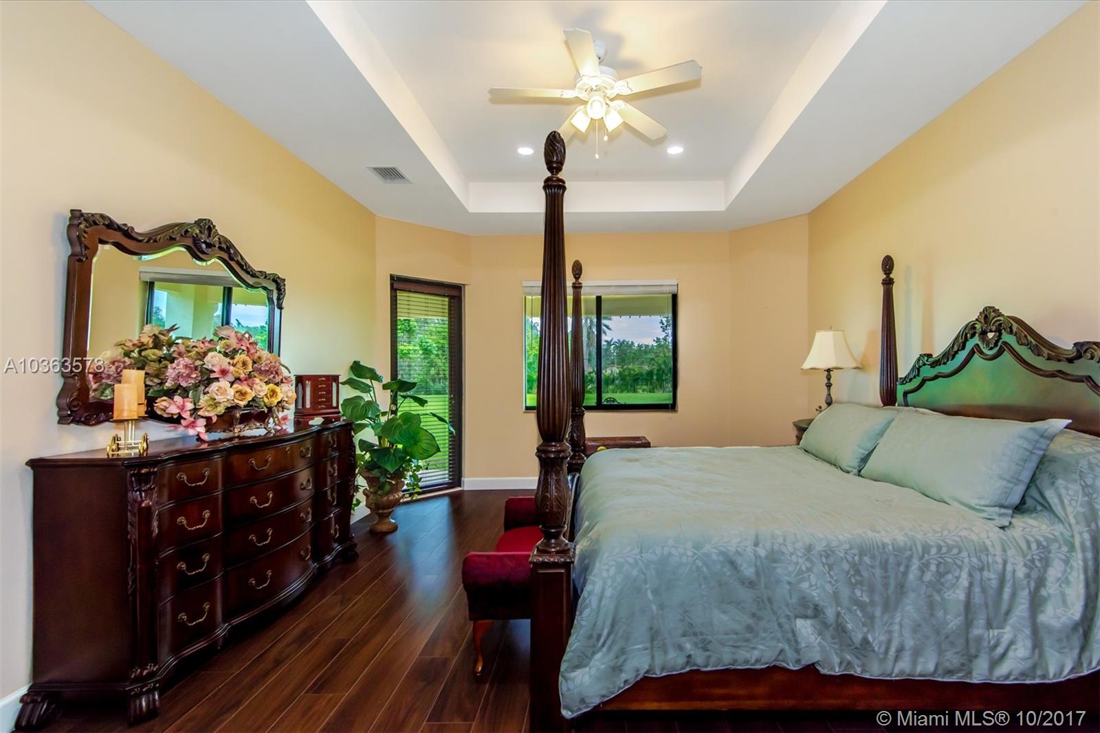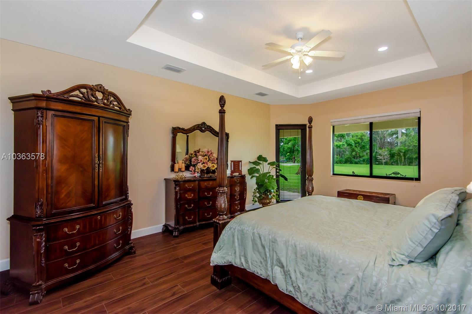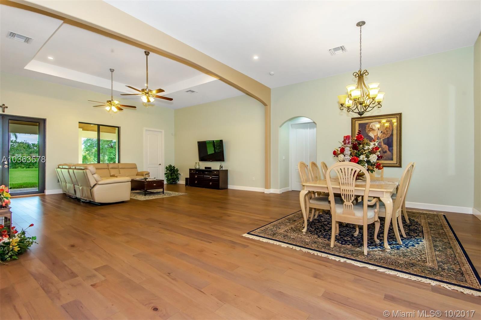 An elegant & newly built, country-style, estate home on an acre corner lot. A rare opportunity to own a new home amid the peaceful Davie farms & equestrian homes, while still being near world-class beaches, shopping, dinning & top schools. This home is turnkey & stress free. Thoughtfully built, featuring 3 bedrooms/3.5 bathrooms & an office/guest room, high impact windows & doors, volume ceilings, open layout with split bedroom floor plan, pantry & laundry rooms. Perfect for entertaining with warm wood floors, a custom all-wood kitchen & wet bar topped with quartz & granite counters & covered patio with an expansive lot. The oversized 2.5-car garage houses the 2 super-high efficiency Lennox HVAC units & has a workbench. Driveway fits 6 more cars.