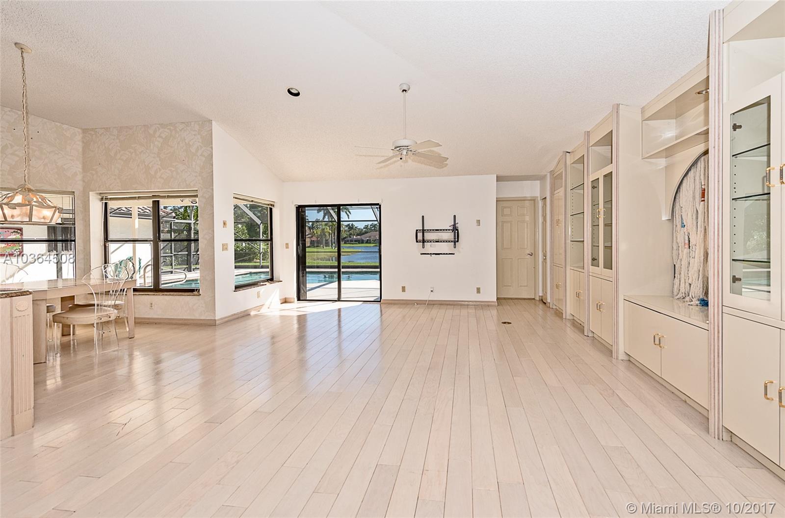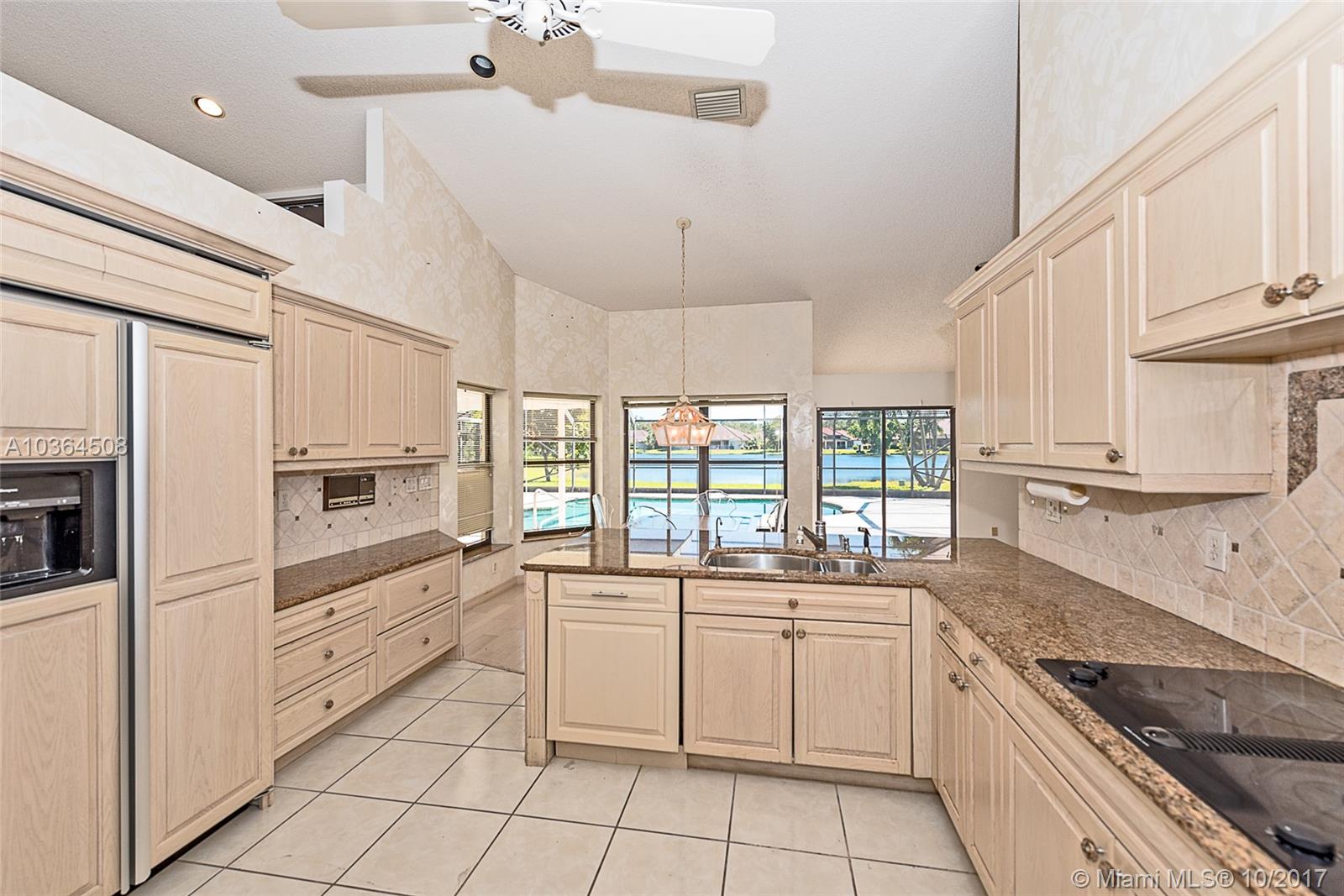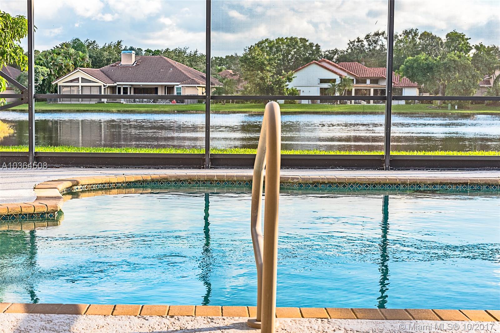 Come enjoy the Weston lifestyle in this light, bright spacious family home in the great neighborhood of Tequesta Lakes. This Four bedroom/ Three bathroom lakefront home has a large family room with a built-in wet bar. Kitchen features granite countertops and breakfast nook with eat in kitchen table and a spacious walk-in pantry. Covered patio with screened pool enclosure overlooking wide lake views. Accordion shutters. Short distance to the newly redone Peace Mound Park.