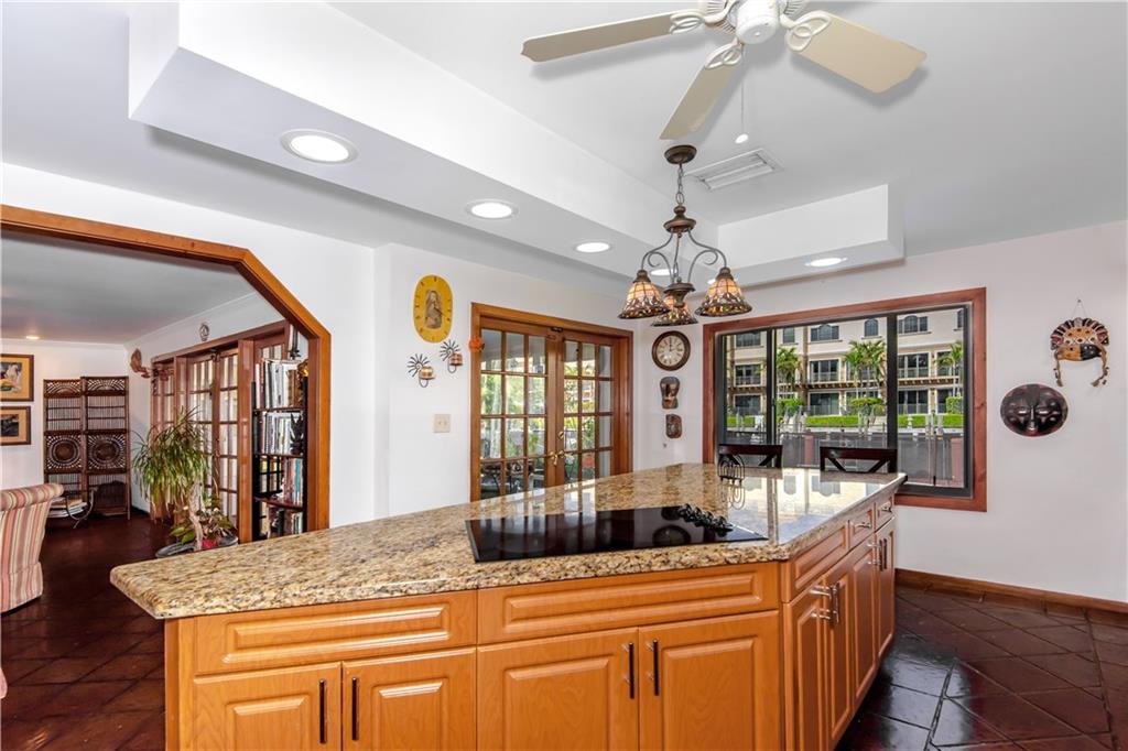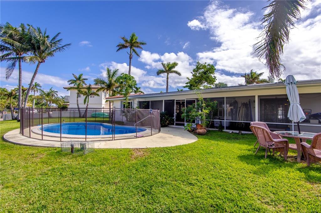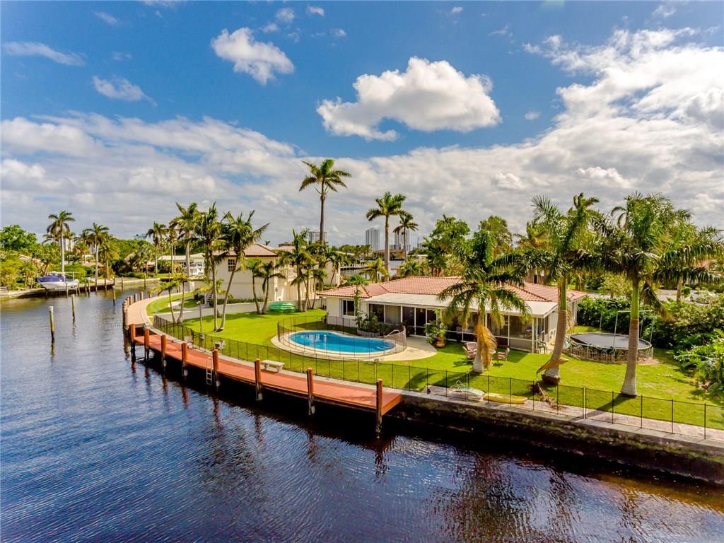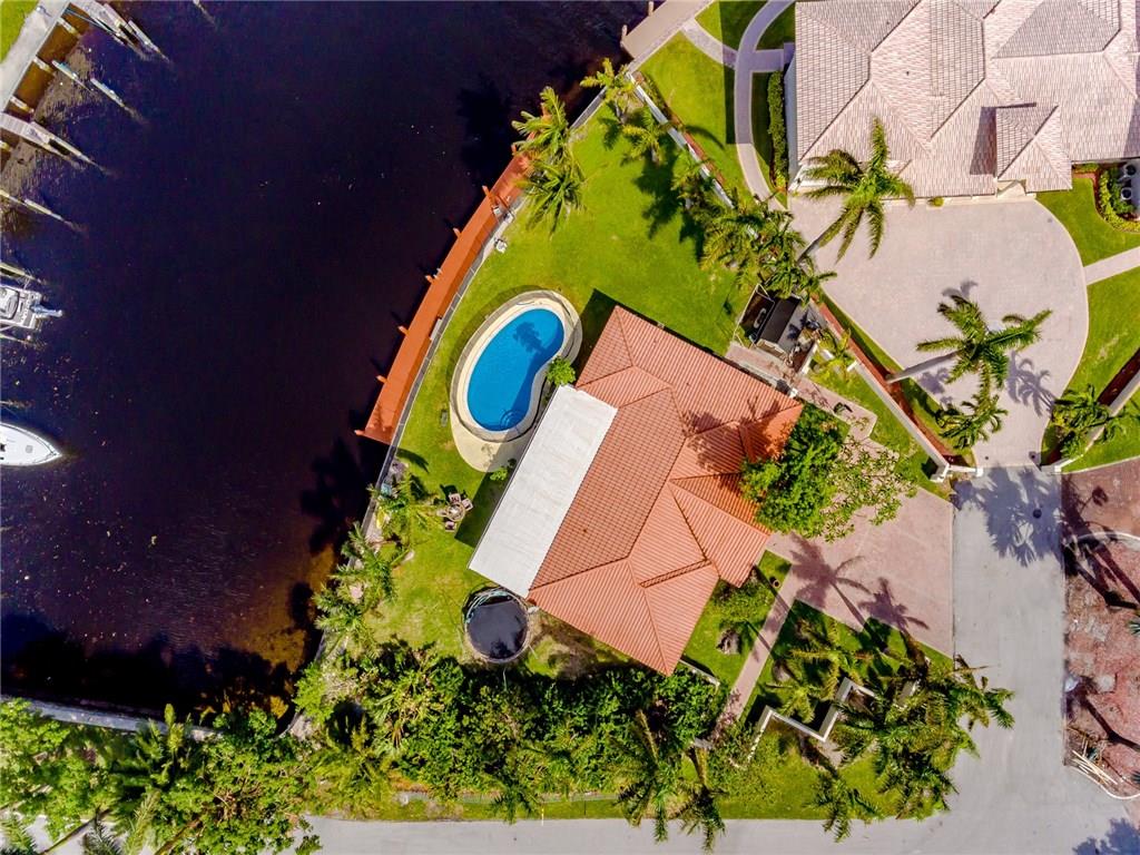 One of six homes on a private island overlooking Lake Santa Barbara. Boating, 80 foot dock and 168 feet of ocean access waterfront. Huge corner lot with sweeping views of wide waterways, which can be viewed from the large screened patio. Well maintained home with Somay system hurricane proof roof. Property has the foundation and is zoned for a three story residence, fantastic opportunity to build your dream home on this 15,660 square foot lot! As-is or expand/build up, this is an investment not to be missed!