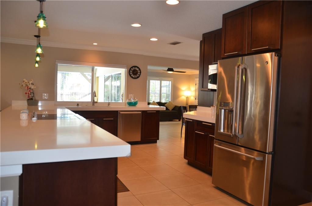 Stunning 4/3 on prime cul de sac st!Gourmet kit-Quartz counters,stainless appls,breakfast bar&dining area!3 remodeled baths!Crown molding thruout,solid wd interior doors/new hardware,tile floors,plantation shutters.Impact windows&garage door,custom front entry door.Central vac-house & 2+ car garage,central sta alarm,attic stair,cac '08,roof'04.Fabulous lush property-tropical plantings,huge covered paver patio-hurricane protected /Kevlar Vest.Salt water inground pool-solar htd,play area,dog run.