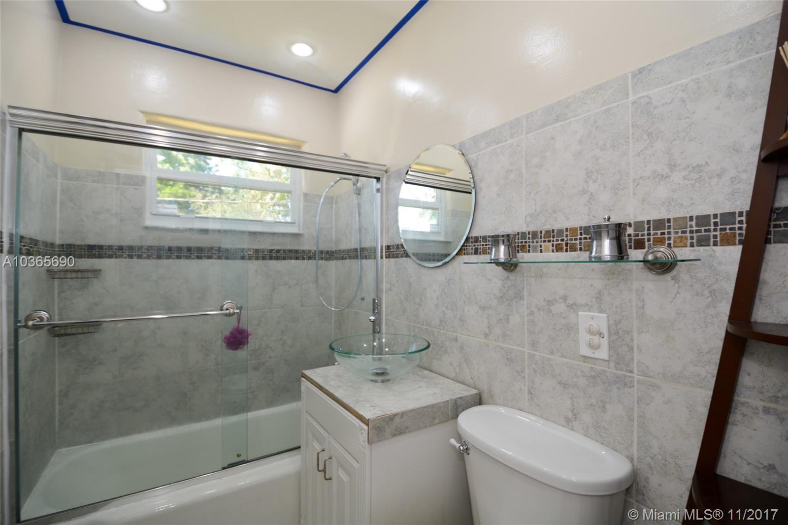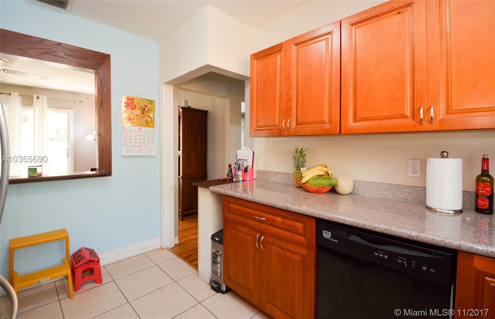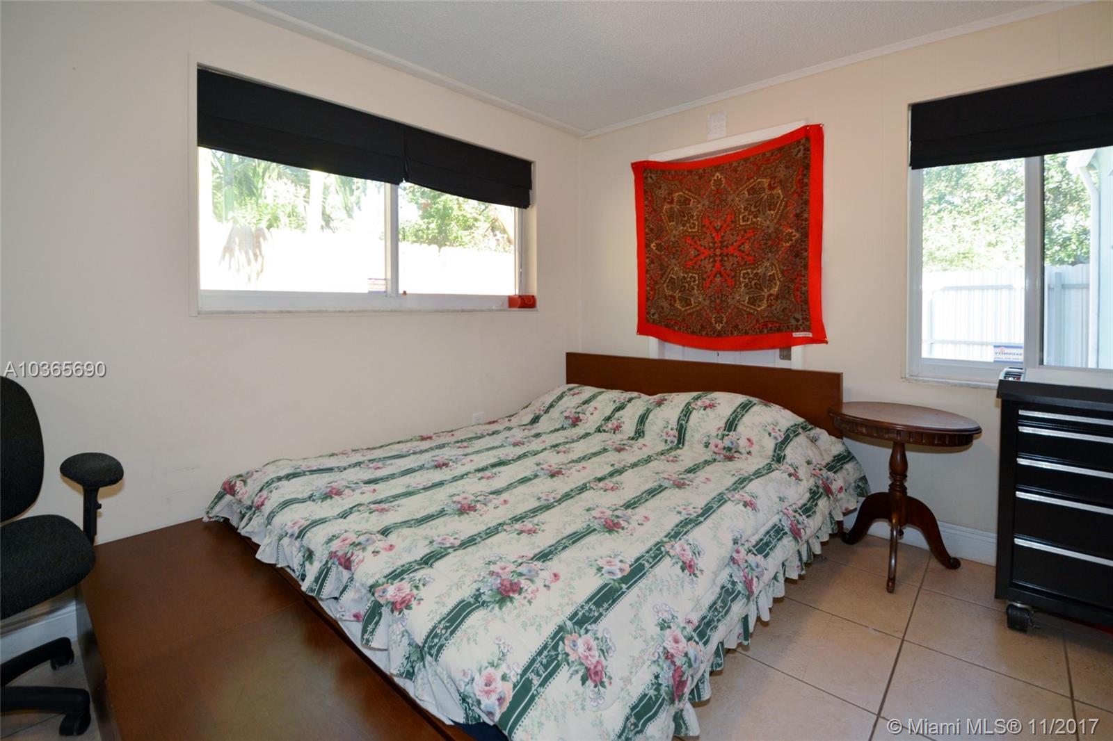 No HOA. No Flood Insurance necessary. Centrally located in Hollywood, with easy access to I-95 and only 3 miles to Hollywood Beach, this home has impact windows and an impact front door with keyless entry. New A/C units with wireless thermostat for online monitoring. Wood floors, built ins and pass through window with bar seating from kitchen to living room. It has a tankless water heater and the laundry room is located inside the home. New 25+ cubic French door refrigerator. Carefree metal fence at the front of the property enclosing 2 parking spaces at the side of the property. Remote controlled programmable fan in living room. Third bedroom has en-suite bathroom with separate entrance. Backyard has view to mature trees and room for a pool. Property is being sold as is.