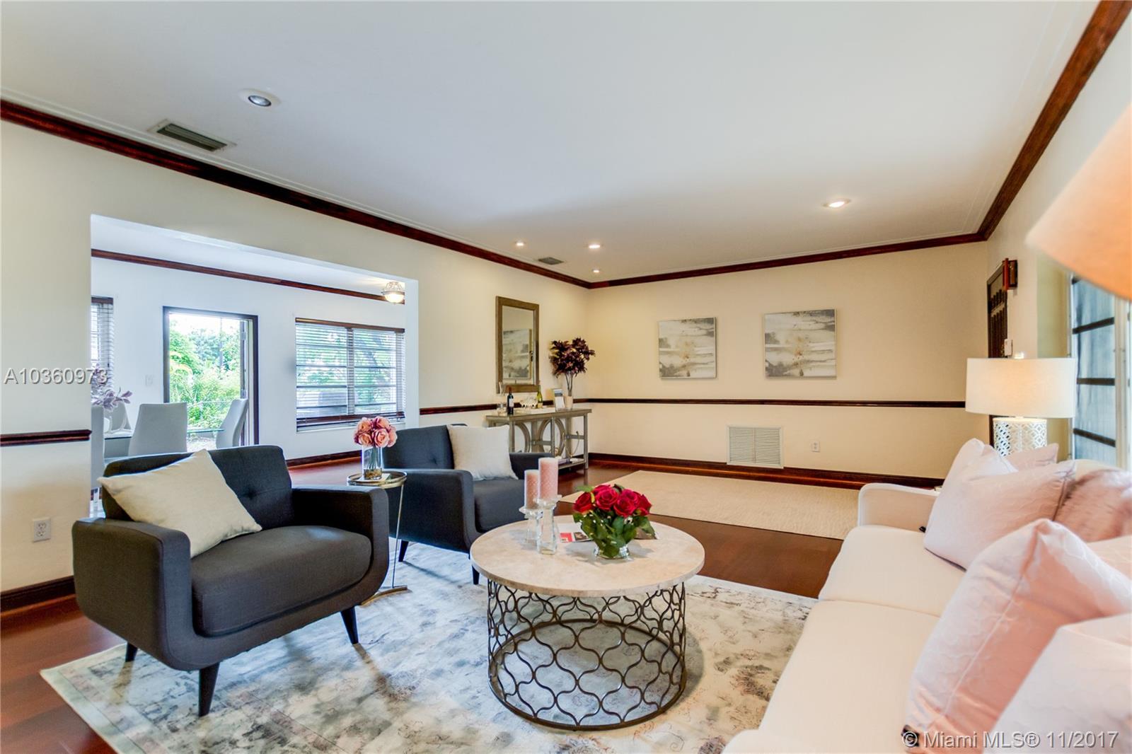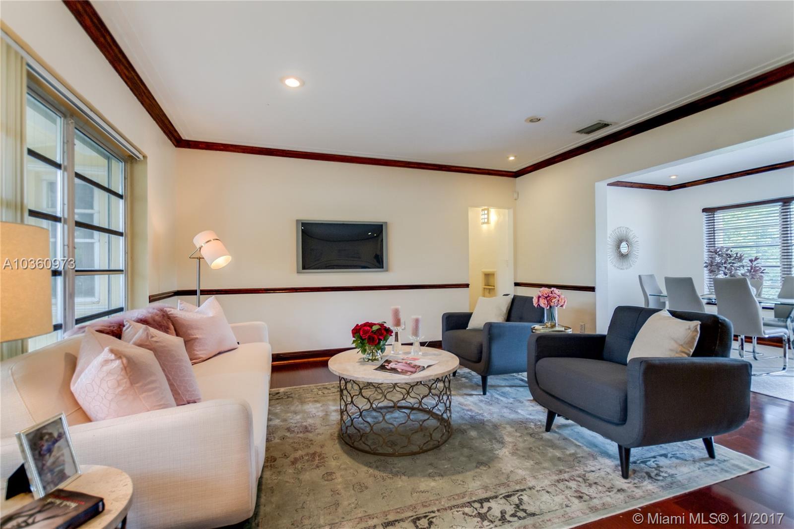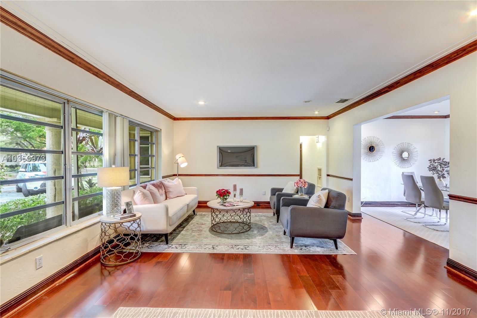 Casa Fluvia is a spacious 3 Bedroom, 2 Bathroom Mediterranean style home in the middle of Southeast Coral Gables. There is plenty of room to park with circular driveway and attached garage. Inside, this home hosts an open layout with sprawling hardwood floors that retains the home's original charm. The kitchen has lots of cabinets for storage, a pantry, and stainless steel appliances. Outside, there is a large yard (Lot is 11,500 sqft) with a patio space to play or entertain.
