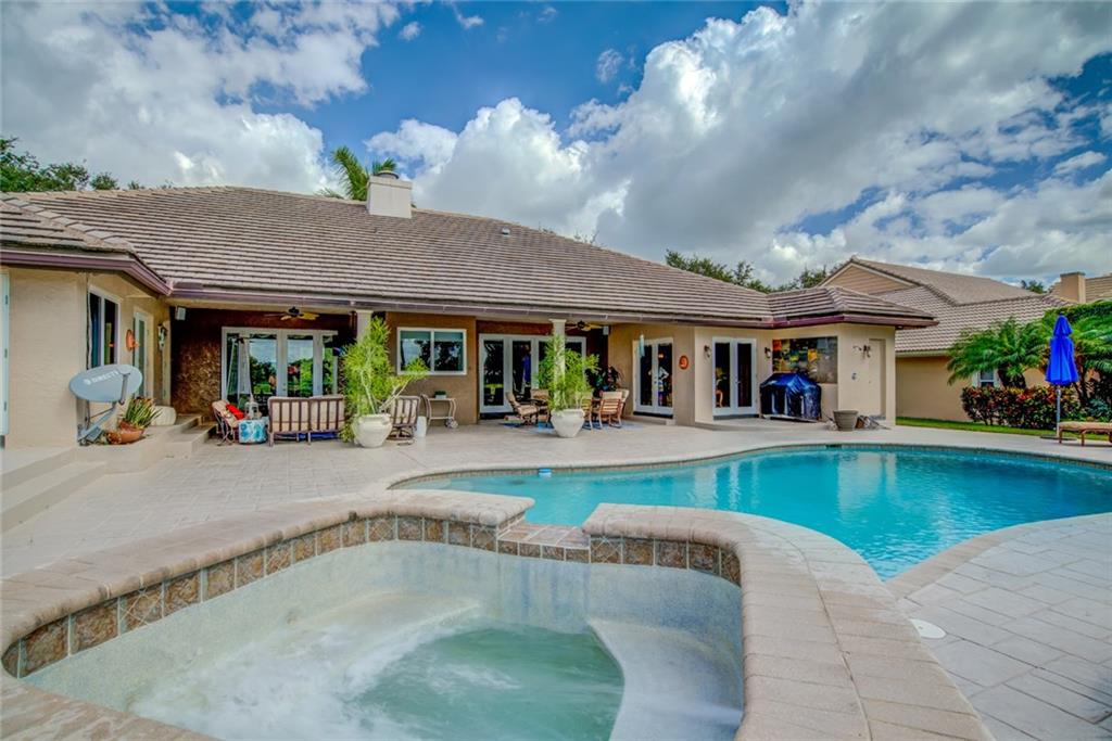 Beautiful custom home in prestigious Eagle Trace. Enjoy amazing sunsets over the golf course from your private patio, pool & jacuzzi. Absolutely amazing master suite with his/hers vanities, free-standing glass & river rock shower & custom tub. Gorgeous marble flooring throughout. Massive kitchen with hand-picked granite, custom cabinetry, double oven & more. Hurricane impact windows & doors keep you safe while providing lots of light & views to the patio, pool & golf course. Too much to list - MUST SEE!