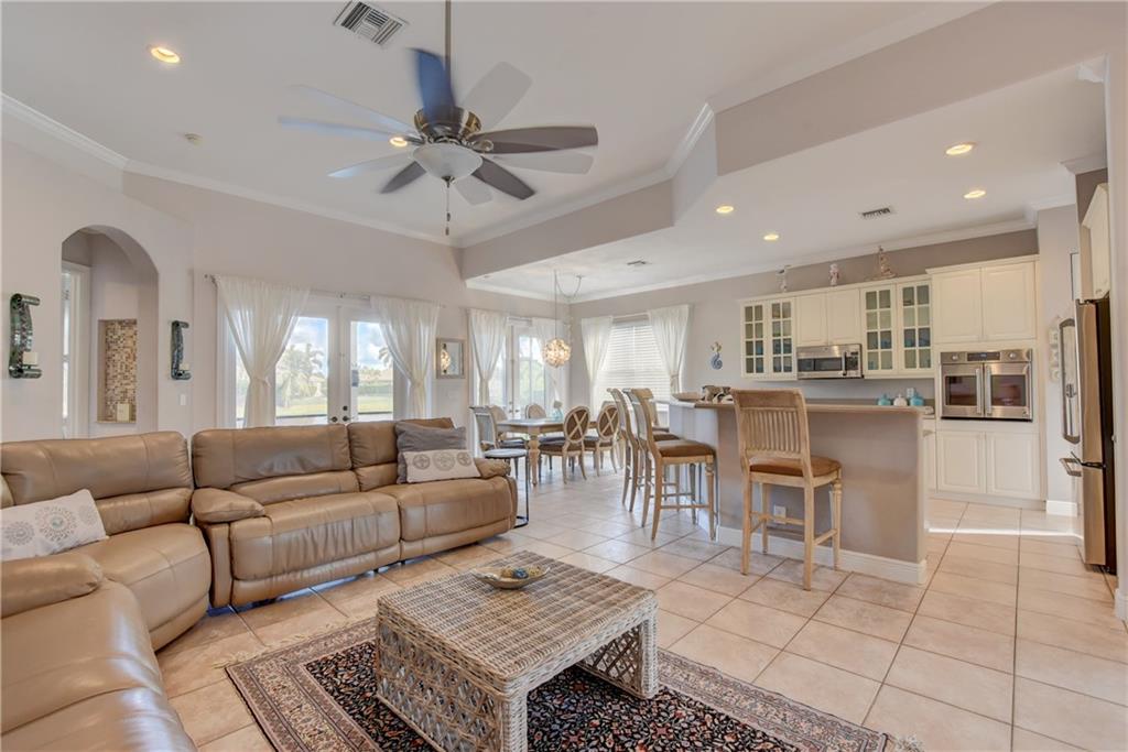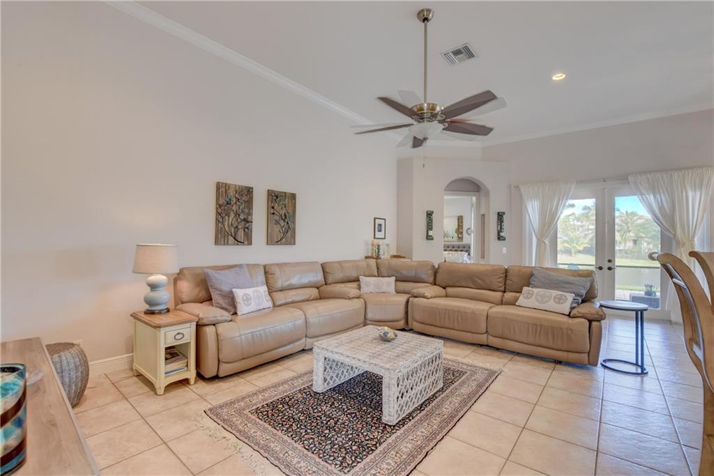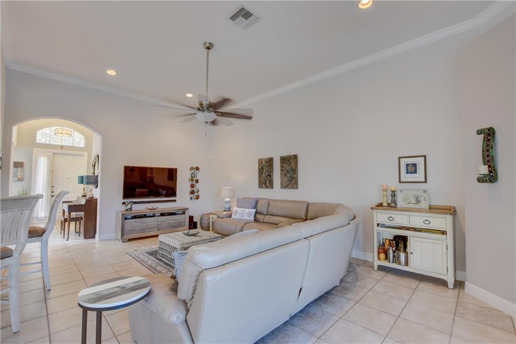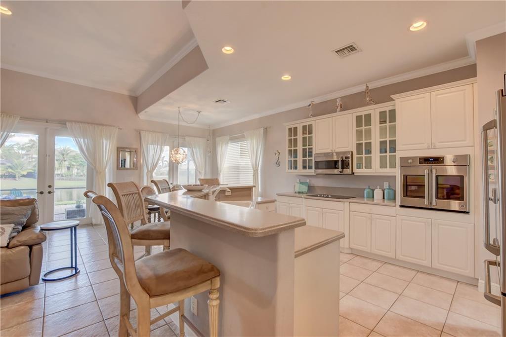 3 bedroom, 2 bath Key West model on Water in Palm Harbour. This floor plan has a great room and formal dining room. Features include crown moldings, French doors, closet cabinetry, new flooring in bedrooms, all new light fixtures & fans, new stainless steel appliances, and new hot water heater. The attic has flooring & shelves for plenty of storage. Patio has new screening. New exterior paint. Gated community w/24 hour guard, tennis, basketball, heated pool & spa. A-rated schools.