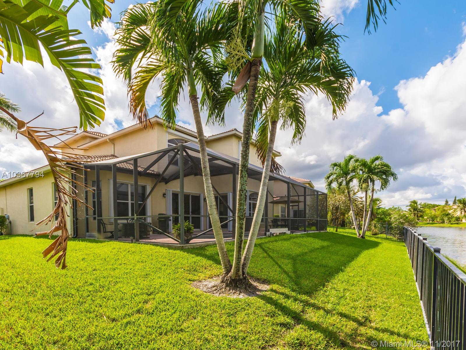 Magnificent home in a gated community! Enter through the lavishly landscaped front yard, large windows through out provide ample light in the massive living areas. Beautifully flowing floor plan & vaulted ceilings. Large Island kitchen in the center of the home, boasting wood cabinets, granite counters, new appliances & a butler's pantry. Most desirable model w/double master suites, one on each floor! Master bedroom includes a large sitting area & a grand bathroom suite w/walk-in closet. Separate laundry room & half bathroom conveniently located on the first floor. Fantastic backyard complete with a screened in pool on a wide lake, perfect place to entertain. Hurricane shutters included. Fourth bedroom currently configured as an open office/den. Look no more!