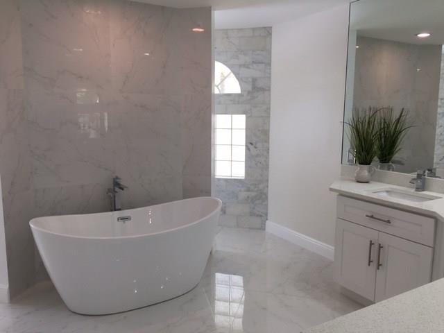 Super high end total remodel. An entertainer's dream house. Large new open gourmet kitchen with wet bar. Tropical, cascading waterfall by the front door. White Italian marble in the master bath suite transports you to a luxurious resort. Bedrooms adorned with dark hardwood floors. High cathedral ceilings. Pool and Spa. Forget the months of labor trying to bring your artistic vision to life. Color, concept, elegant and sophisticated design and function have all already been done for you. PGA golf course.
