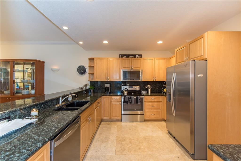 3/2 w/pool. Pavered patio, lush tropical oasis, fenced backyard. Covered entry w/dble-glass drs, neutral travertine marble-1st flr. Natural light, upgraded lighting/ceiling fans. Wndw trtmts, liv area/fam rm w/array of glass sliding drs-views of patio, pool & backyard. Kitchen w/updated wood cab, granite countertops, newer SS appl, walk-in pantry. Laundry rm w/sink, cab, washer/dryer. Bdrms w/wood on 2nd, walk-in closets, mstr bath w/soaking tub, sep shower, dual vanities, w/fr drs to balcony. No HOA
