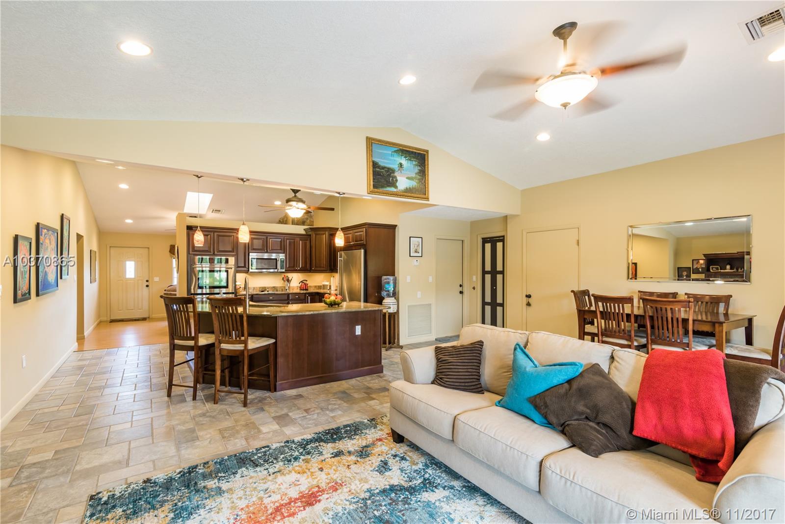 BEAUTIFUL 3 BED 2 BATH 1 CAR GARAGE LAKEFRONT HOME IN SOUTHWEST RANCHES, LOCATED ON A DEAD END STREET. THE HOME SITS ON A 36,205 SQFT LOT OFFERING PLENTY OF ROOM TO ADD ON TO THE HOUSE OR JUST SIMPLY ENJOY THE COUNTRY LIFESTYLE. THE HOME FEATURES AN OPEN LAYOUT LIVING AREA WITH A NEWLY UPDATED EAT-IN KITCHEN, TILE THROUGHOUT THE LIVING AREAS, LAUNDRY ROOM, NEWER ROOF AND AC UNIT. WALK OUT TO A BEAUTIFUL COVERED PATIO OVERLOOKING THE WATERFALL POOL AND LUSH LANDSCAPE INCLUDING FRUIT TREES. COUNTRY LIVING AT ITS BEST WITH NO HOA OR RESTRICTIONS, ROOM FOR YOUR RV AND BOAT. A+++ SCHOOLS