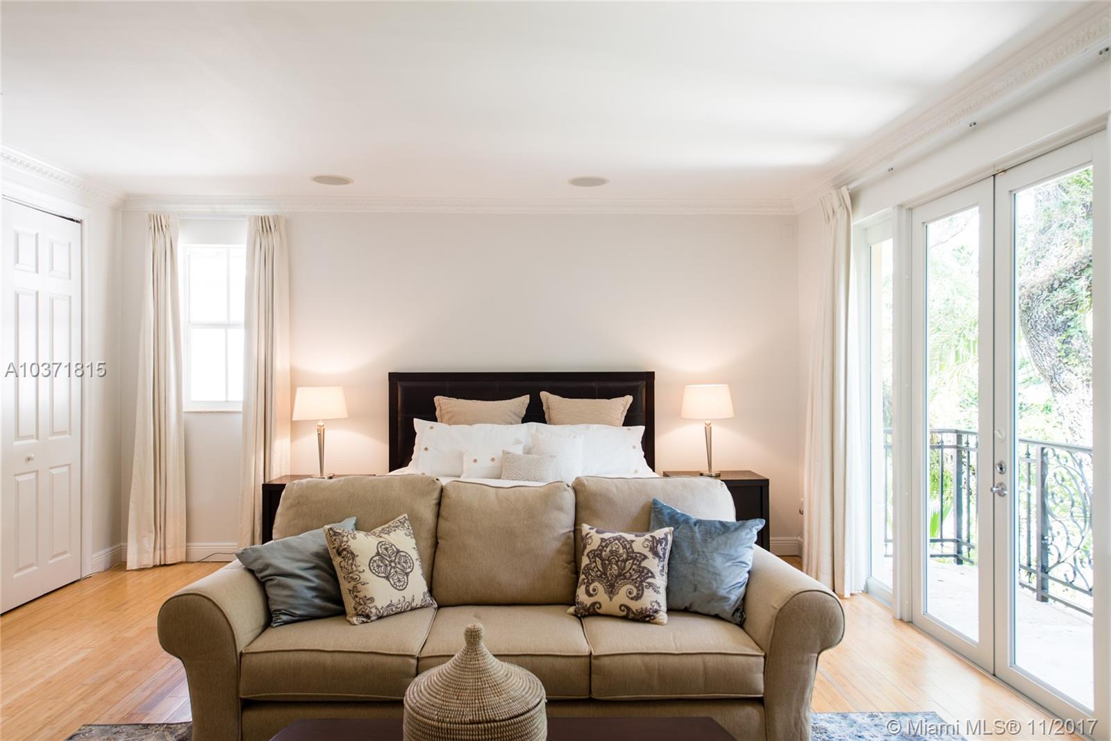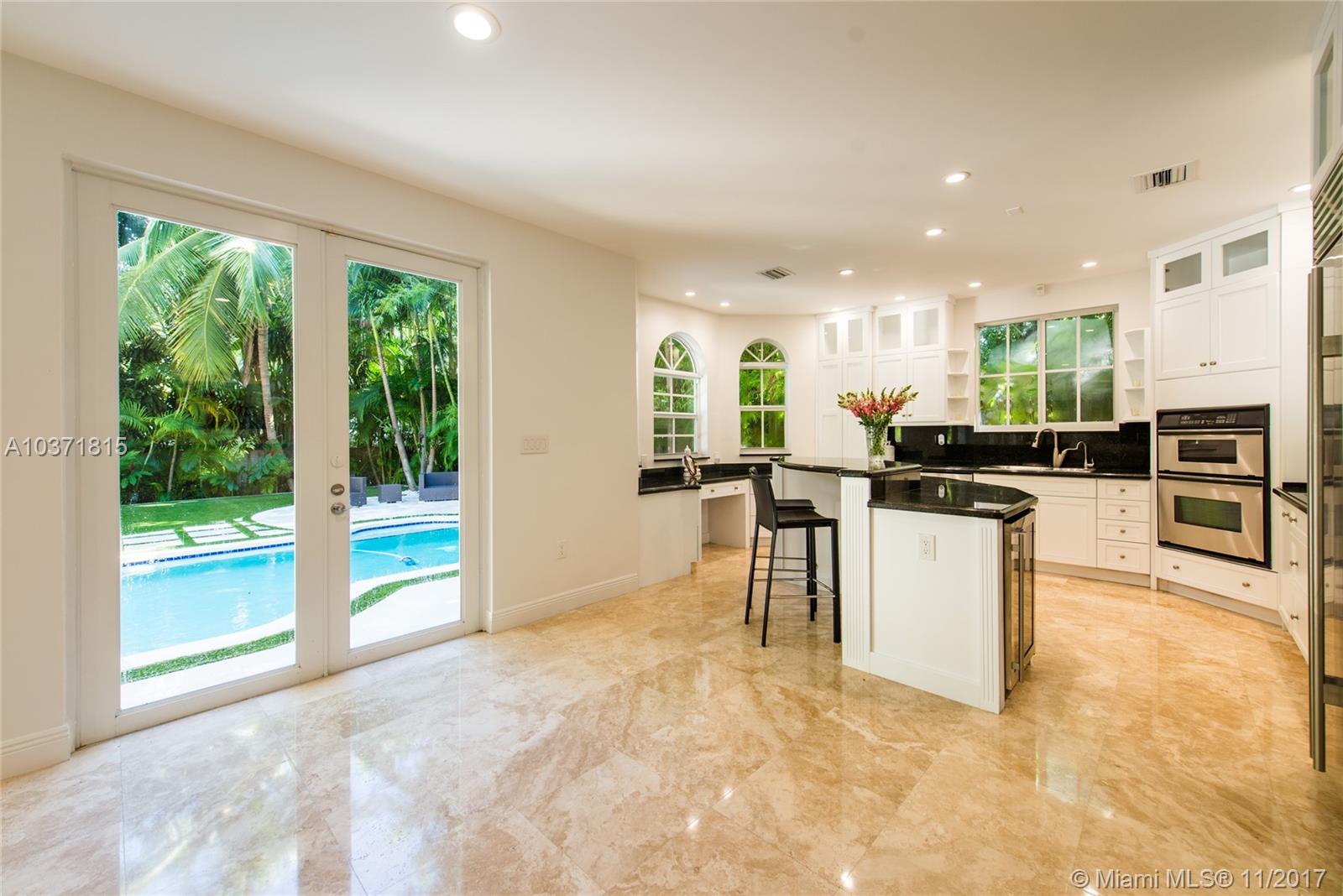 Lovely European-inspired home on a quiet, winding street in lush South Coconut Grove. A blend of classic and contemporary architectural features with light-filled living spaces that overlook the expansive garden with built-in grill area & pool. Custom kitchen with white wood cabinetry, granite countertops, stainless appliances and center island with seating. Double-height ceilings and clerestory windows in the formal living & dining room. Oversized master suite with sitting area and private balcony overlooking the tree-tops. Luxurious marble master bath with spa-tub & glass enclosed shower. Walk to the Grove village center’s galleries, boutiques, cafes and bayfront parks & marinas. Close to downtown, MIA, Coral Gables and the Beaches.