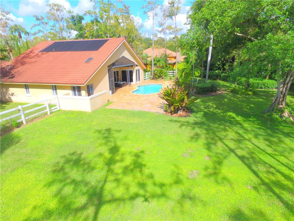 Wow! Highly desirable Parkland entertainer's dream home in exclusive 15 custom homes community, Riverside Acres. Very private single story 5/4/3 sits on over a one acre lot. Fully fenced in expansive backyard, mature, lush landscaping, sparkling pool, spacious covered lanai electric remote screens & gourmet summer kitchen! Hurricane impact windows & doors. Beautifully remodeled baths & exquisite designer finishes. Volume ceilings, Chef's kitchen, family room with bar, split floorplan, 2006 roof! Must see!
