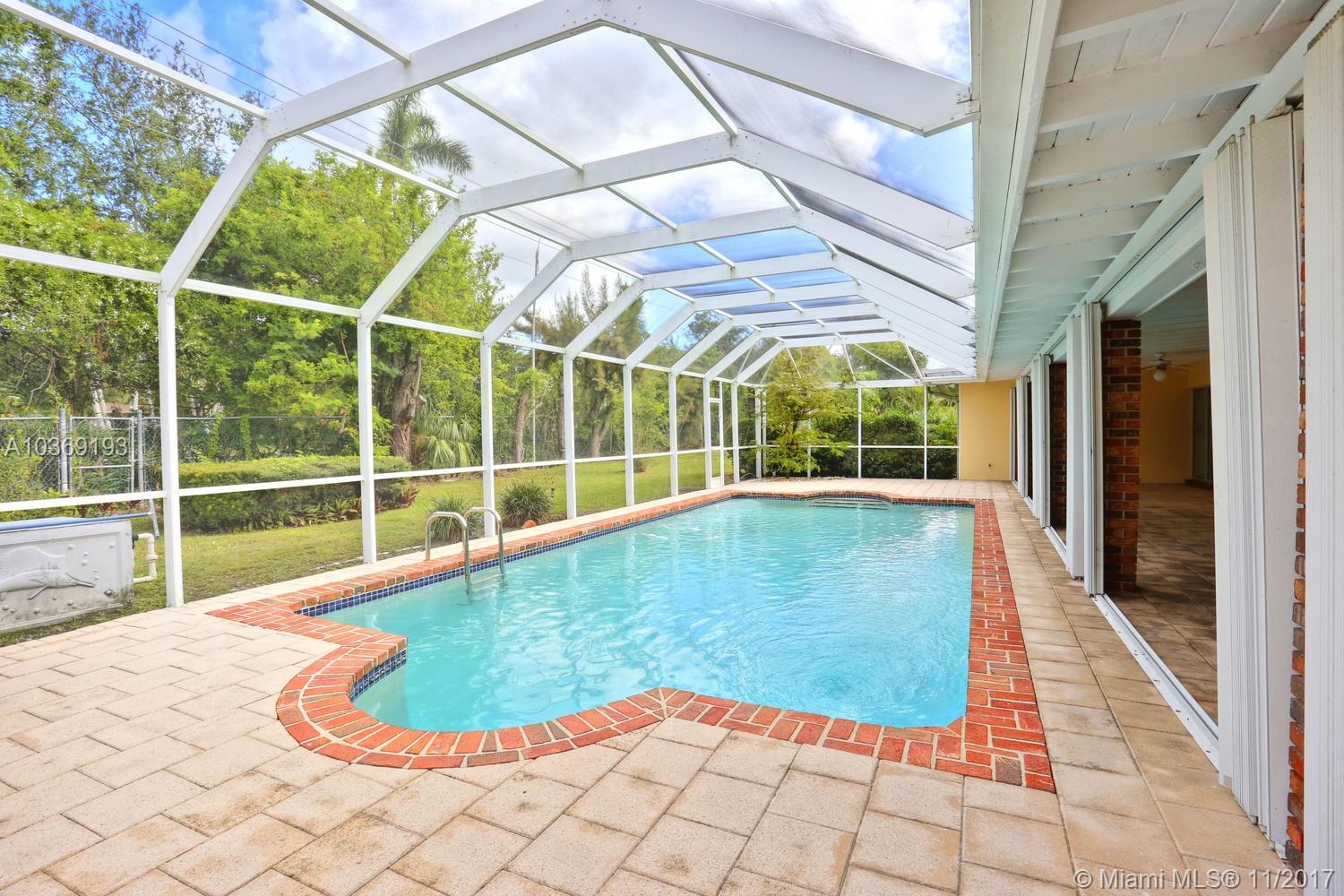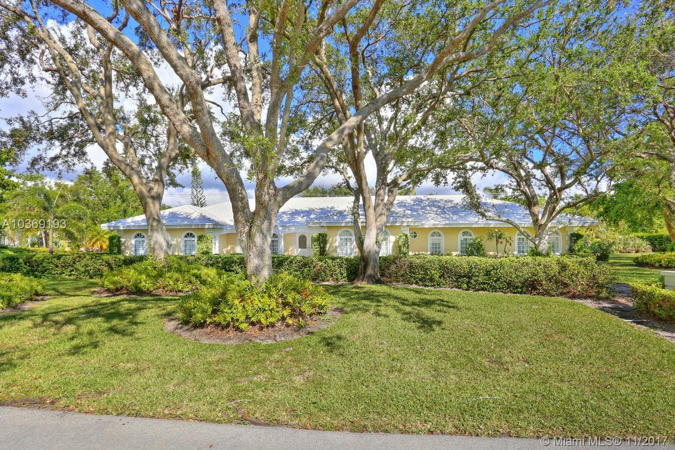 Elegant and large executive home in exclusive Pine Bay Estates. 24 hour security roving patrol. Beautifully manicured with oak laden 37,561 SF lot. Grand formal living and dining rooms. Updated roof and appliances. Split bedroom plan with large master suite. Terrific children's quarters and cabana bath. Lovely spacious outdoor patio with doom screened swimming pool. Excellent location and Pinecrest schools!
