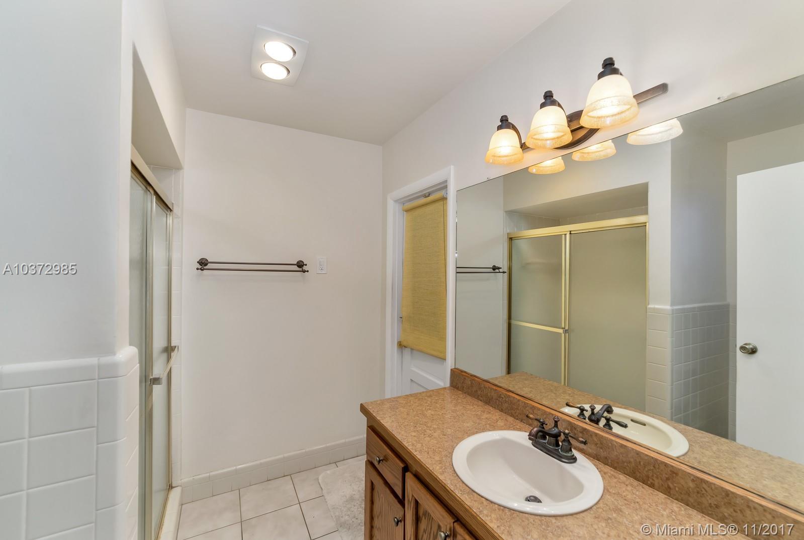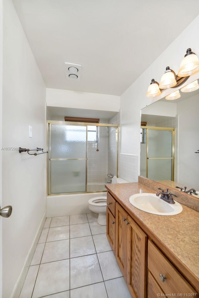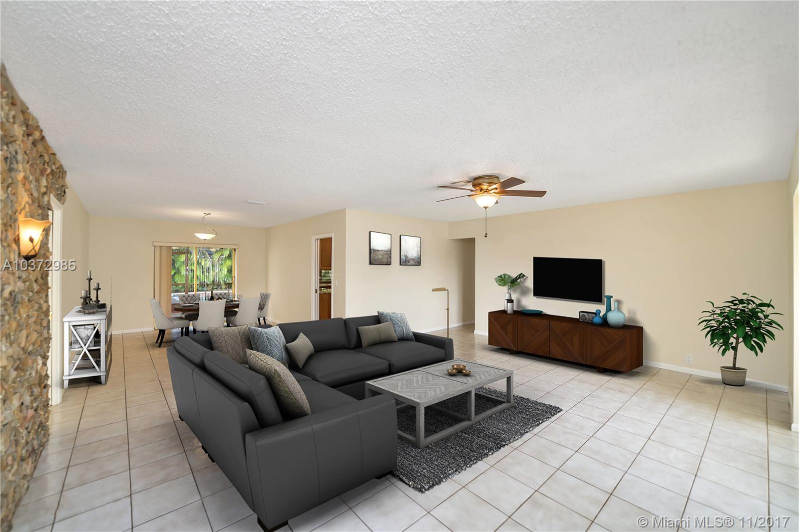Great Family home in move in condition. Freshly pained inside and out. Lovely neutral tile floors throughout and wood flooring in bedrooms. Updated kitchen with granite counters and stainless steal appliances. Garage converted to large play room with 1/2 bath and storage area. Interior laundry room. Built in bar in family room. Huge screened patio overlooks open pool and private back yard. Walk to houses of worship and shopping center. Sold as-is with right to inspect. Hurricane shutters and security system.