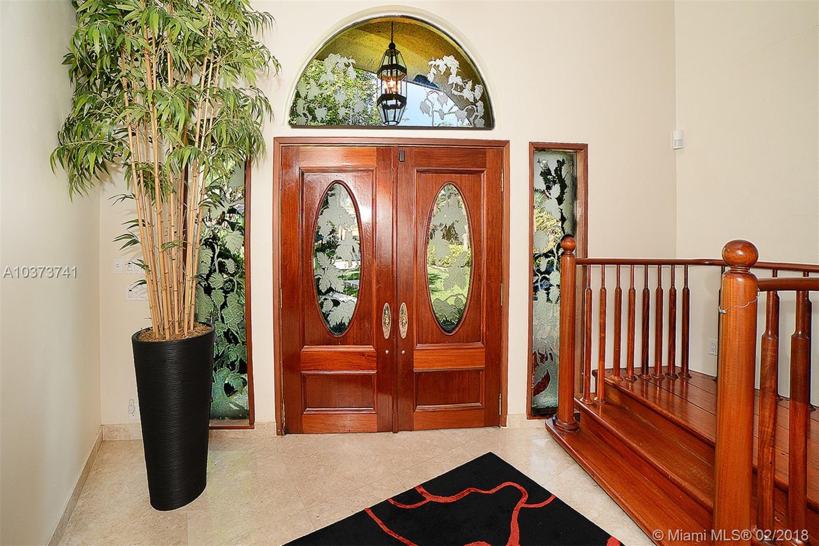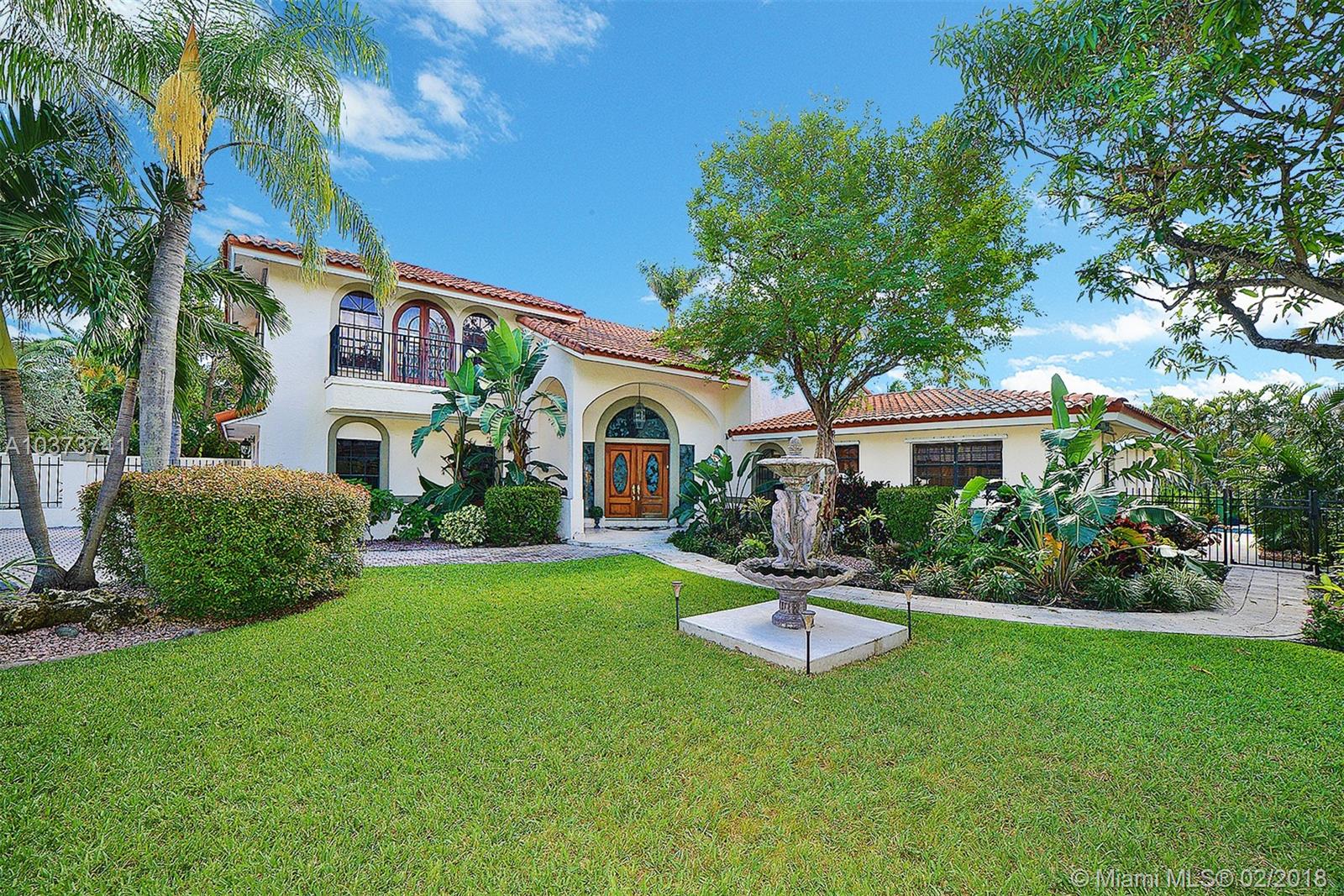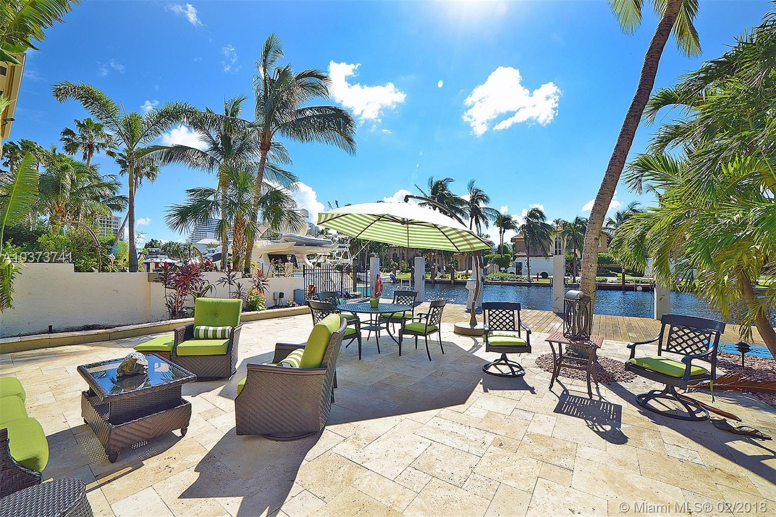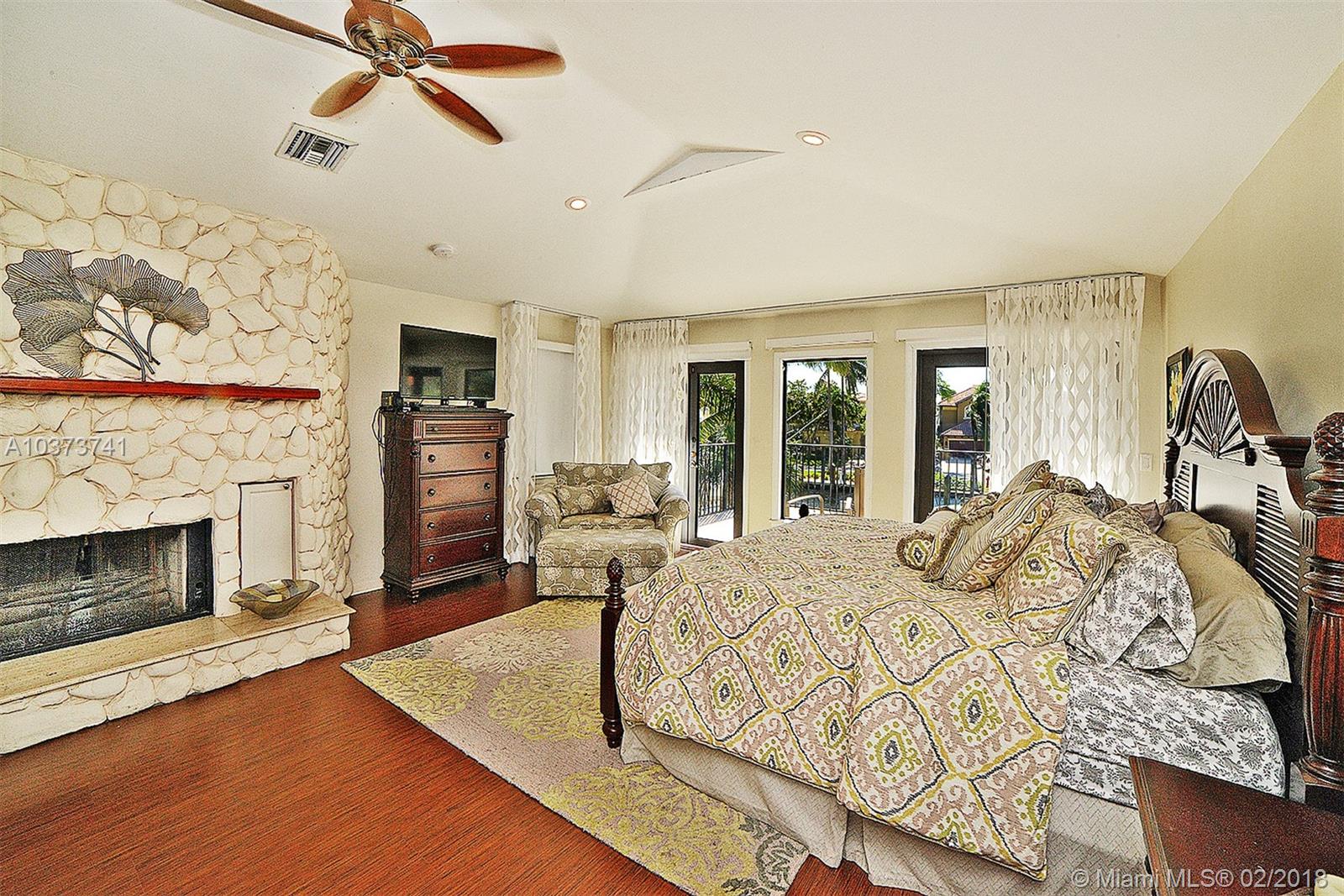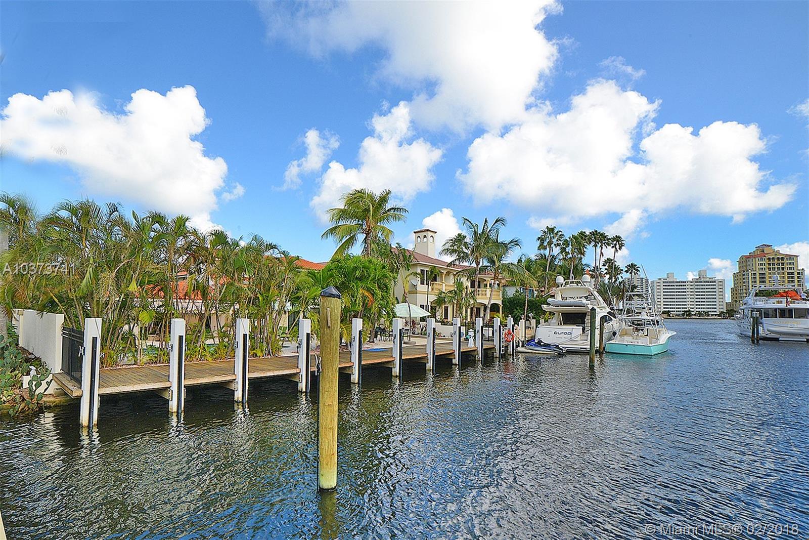 Gorgeous & classic styled Mediterranean two story home on a very unique tree lined corner lot w/ 88 Feet of Deep water, only three homes from the Intracoastal. Many significant architectural details greet you from the moment you enter this home through the elegant edged class & rich wood front doors. Downstairs: 24 inch marble floors, open kitchen w/ a huge island, formal dinning room, beautiful living room w/ fireplace, & two guest bedrooms each w/ on suite baths. Fantastic two story foyer w/ a winding solid wood staircase to the second level. An oversized master bedroom w/ vaulted ceilings, wood floors, gorgeous stone fireplace, big walk-in closet, and a massive private patio overlooking the pool & water. Master bath has marble floors, infinity edge tub, & huge shower.