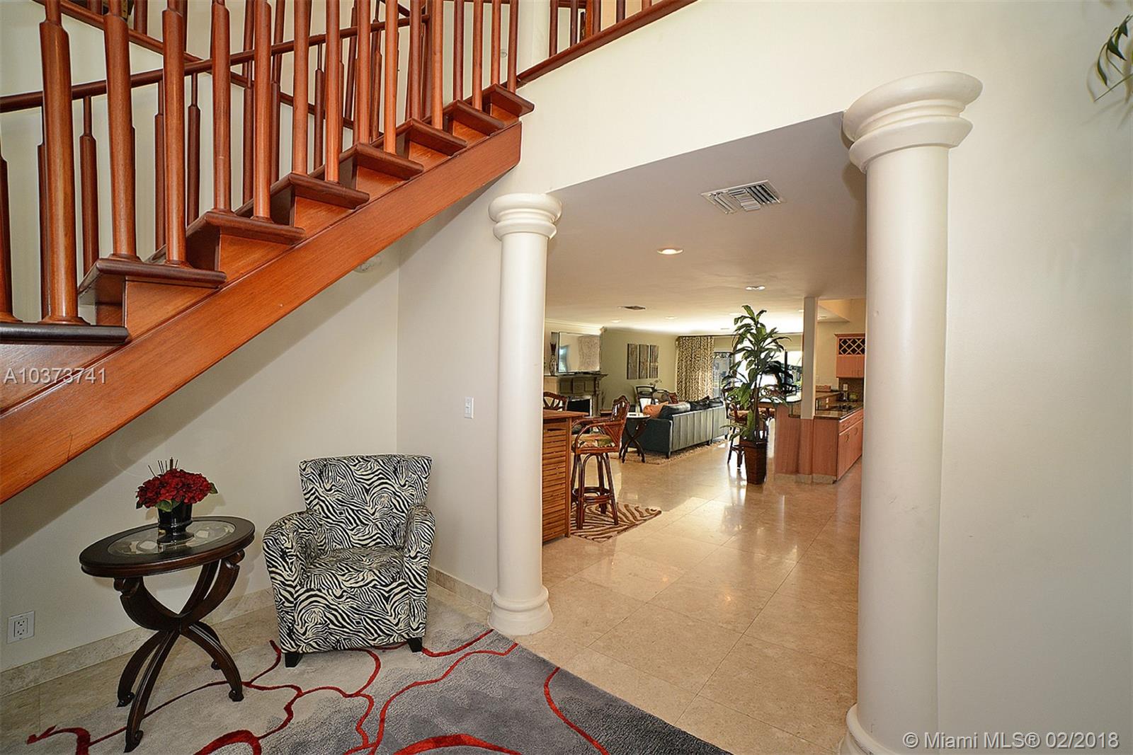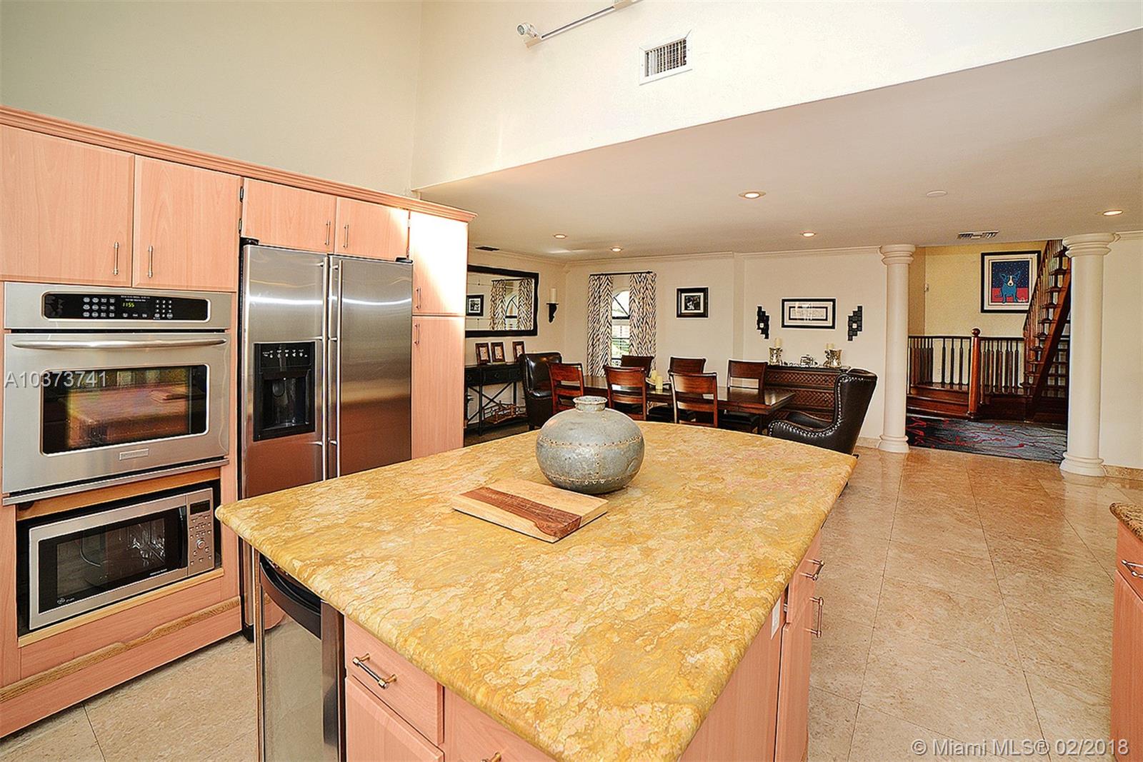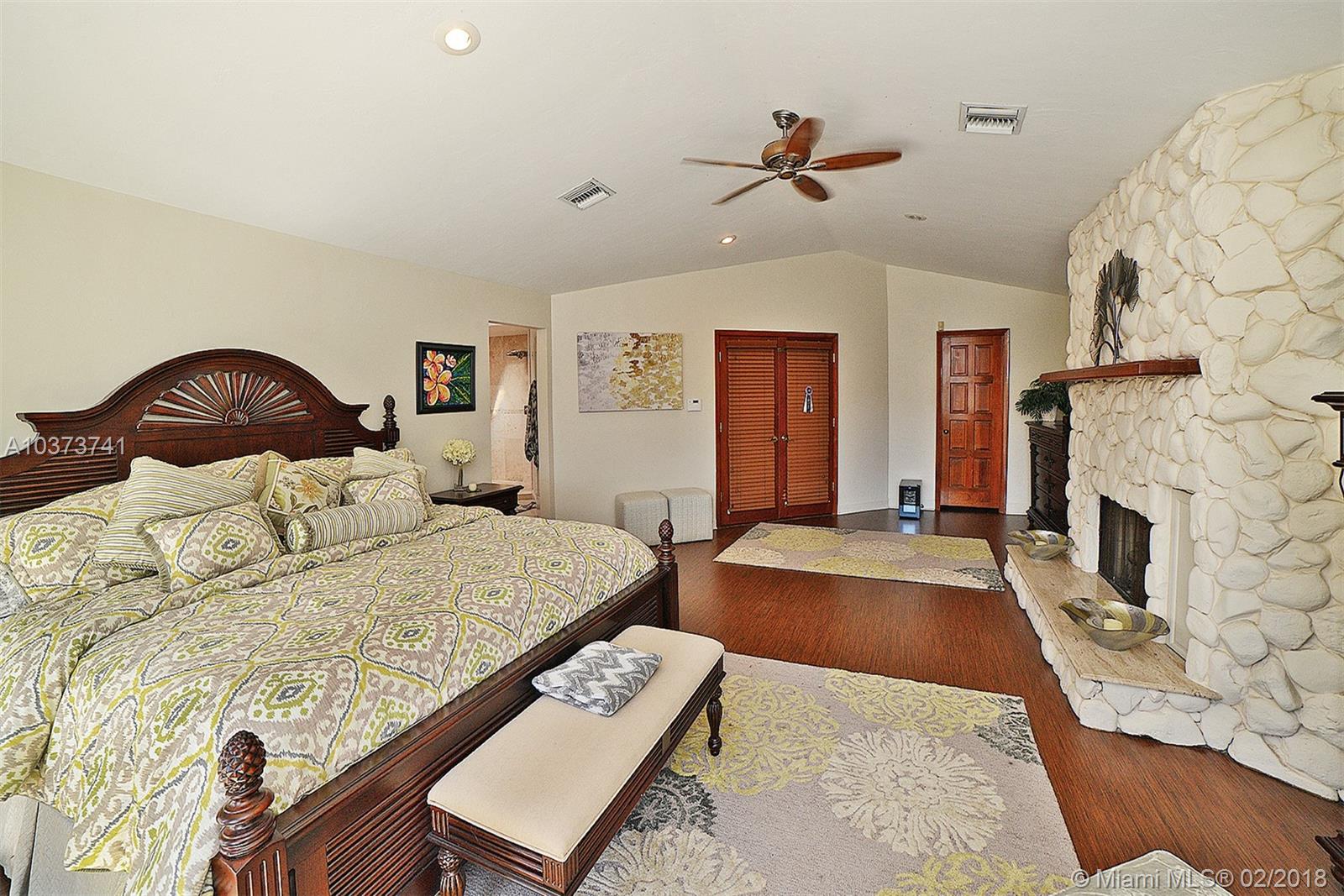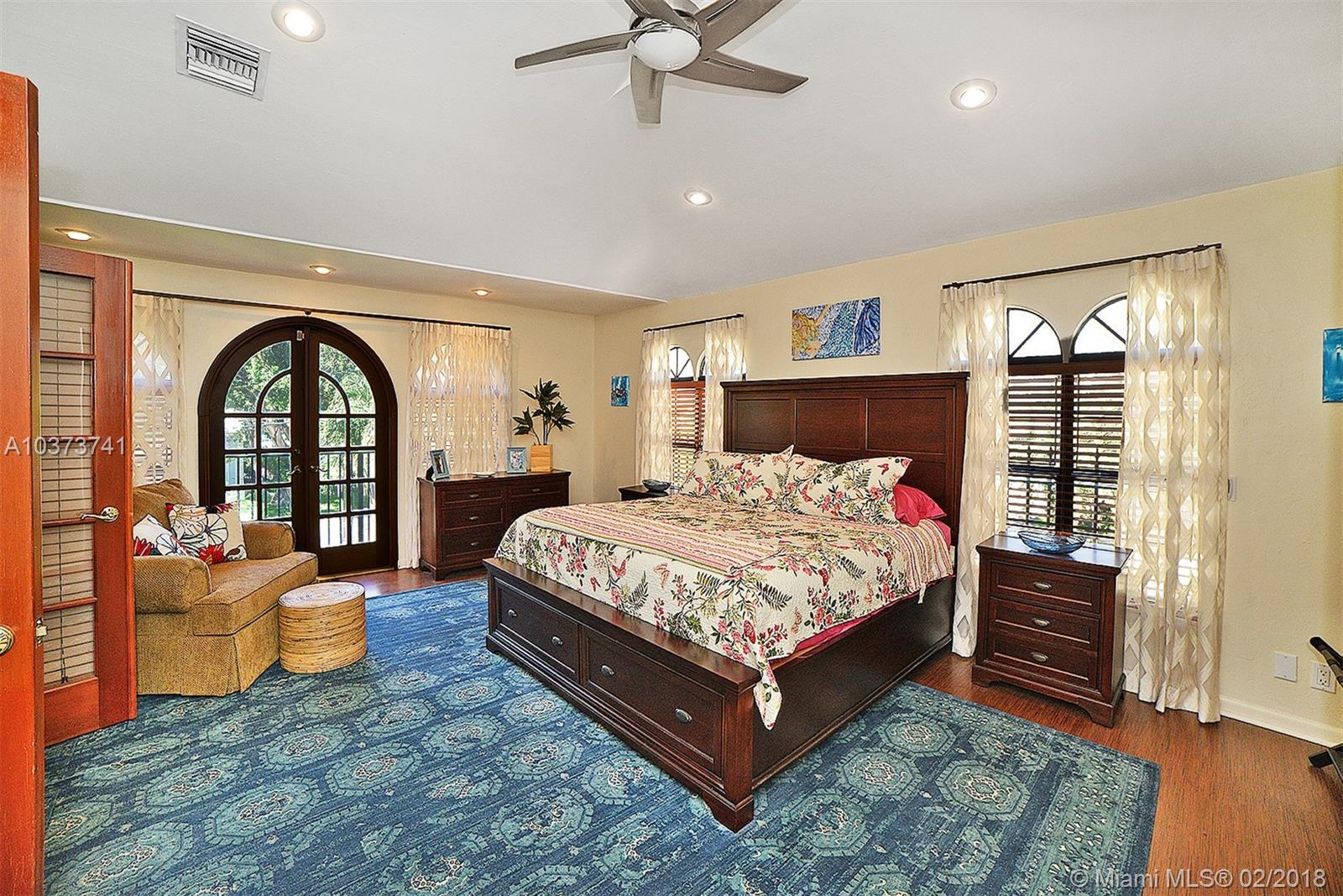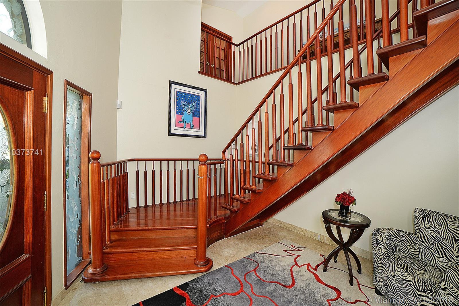 Gorgeous & classic styled Mediterranean two story home on a very unique tree lined corner lot w/ 88 Feet of Deep water, only three homes from the Intracoastal. Many significant architectural details greet you from the moment you enter this home through the elegant edged class & rich wood front doors. Downstairs: 24 inch marble floors, open kitchen w/ a huge island, formal dinning room, beautiful living room w/ fireplace, & two guest bedrooms each w/ on suite baths. Fantastic two story foyer w/ a winding solid wood staircase to the second level. An oversized master bedroom w/ vaulted ceilings, wood floors, gorgeous stone fireplace, big walk-in closet, and a massive private patio overlooking the pool & water. Master bath has marble floors, infinity edge tub, & huge shower.