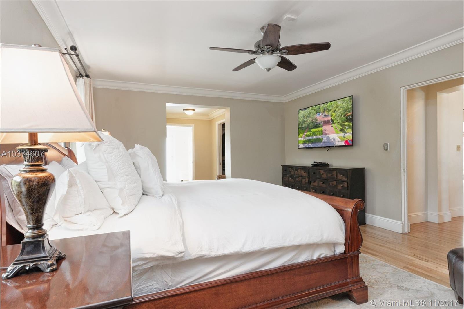 Beautifully remodeled 1936 Spanish Mediterranean 2 story Miami Shores 4 bedroom home with a 20 x 40 deep salt water heated pool on a double lot (14,200 sq ft). High open beamed ceilings as you enter, refinished wood floors, gorgeous gourmet kitchen with stainless steel top of the line appliances, custom made Italian imported hurricane impact windows, huge lavish master bathroom with roman style tub, security system, 2 new AC units, 2 car garage and hot tub spa. East of Biscayne Blvd. 2 blocks from the water. Ready to move in. A must see!