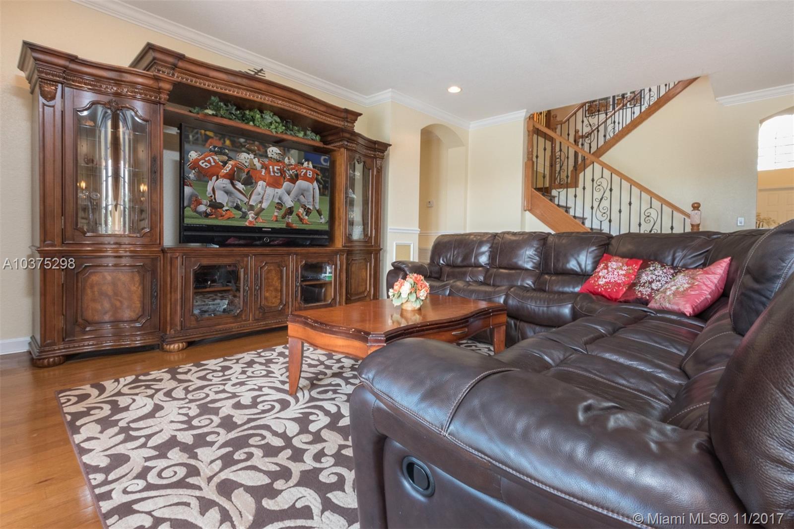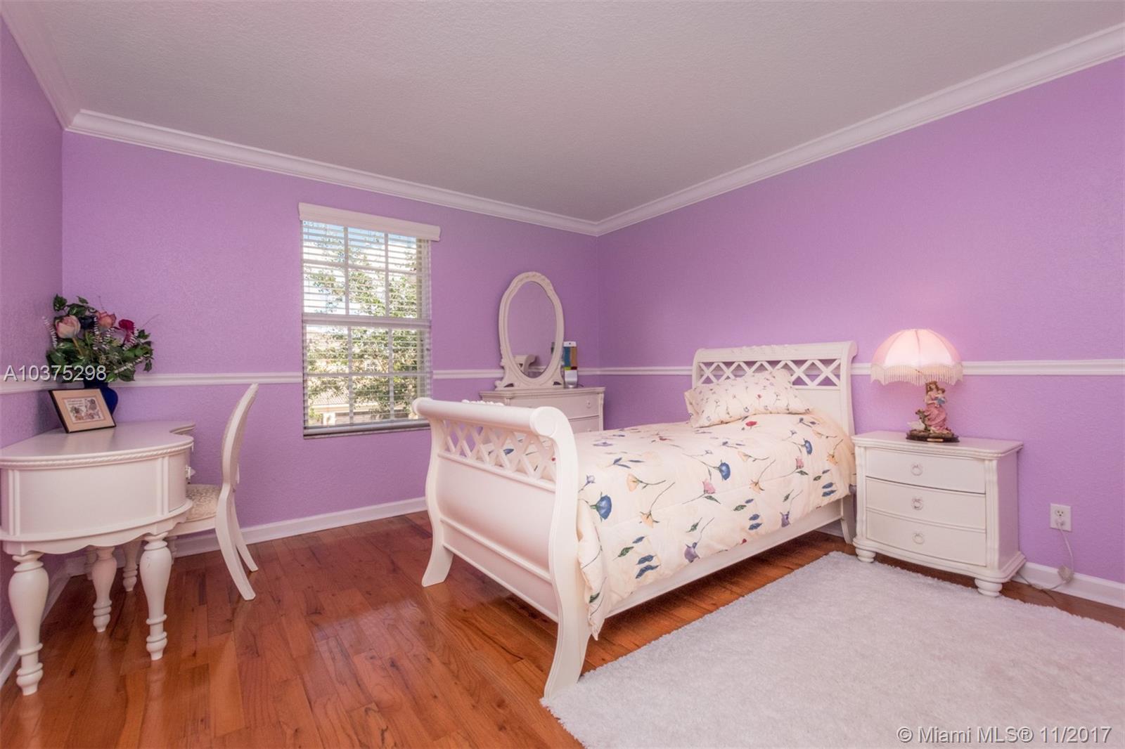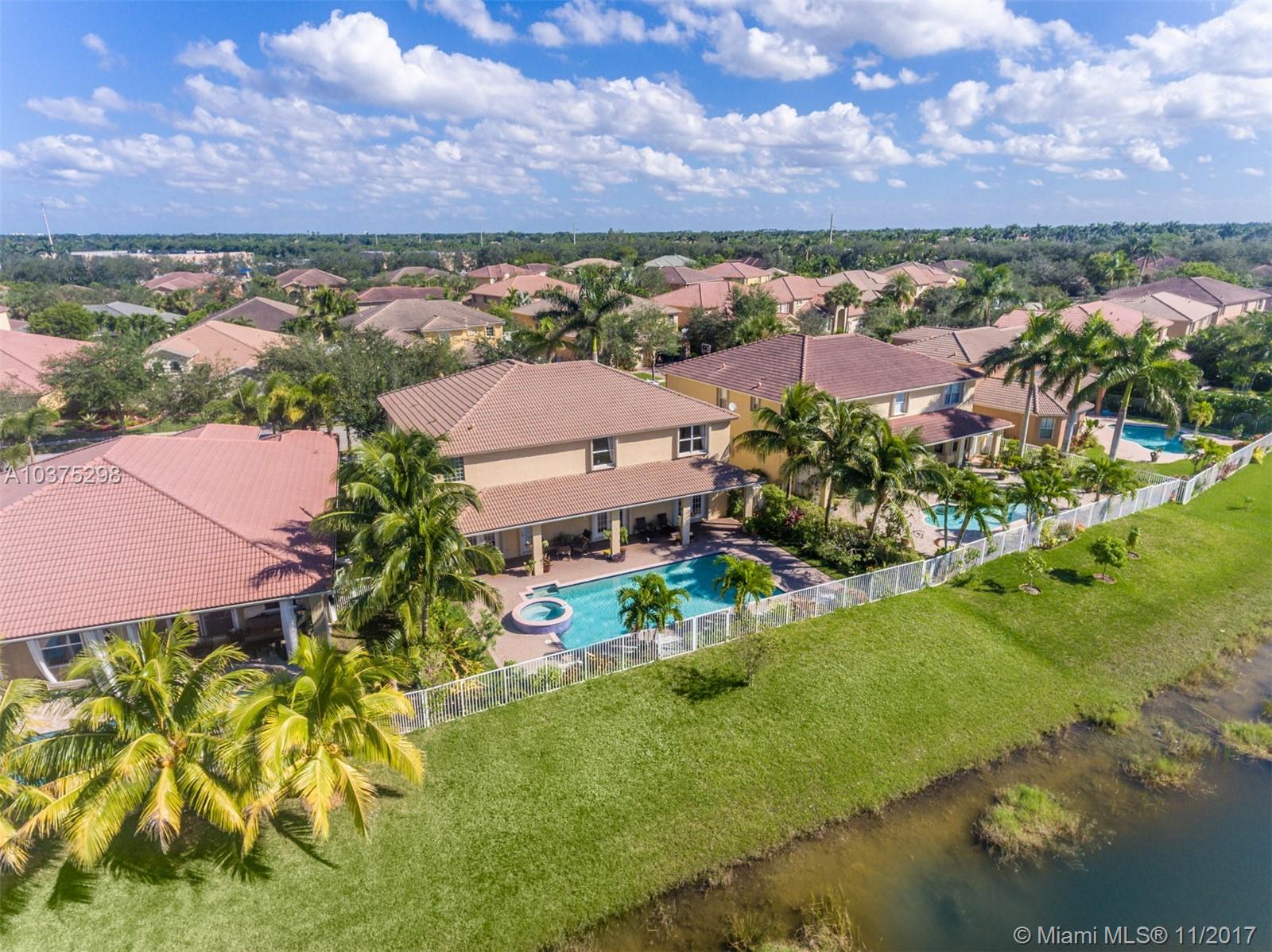 Turn Key Violet model with upgrades galore. Tucked on a quiet lakefront lot, fully fenced and privacy hedged with oversized 36x18 custom pool, paver patio and full length overhang for your comfort. Enter this decorators delight with warm real wood floors flowing through the living areas. House transformed in 2010. Marble flooring in the gourmet kitchen with upgraded 42 inch wood cabinetry, granite countertops, wall oven, Stainless Steel appliances. French doors to private yard. Full bed and 2 baths first floor (cabana) perfect as an in-law suite. All wood floors up with wrought iron dual stairs. Loft converted to playroom with closets. All bathrooms renovated. Oversized master bedroom with sitting area. New A/C(2010) and hot water heater.Extensive crown moldings. Accordion Shutters