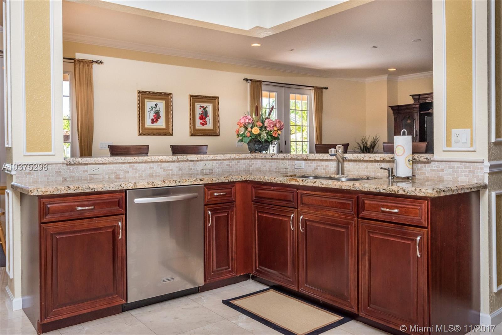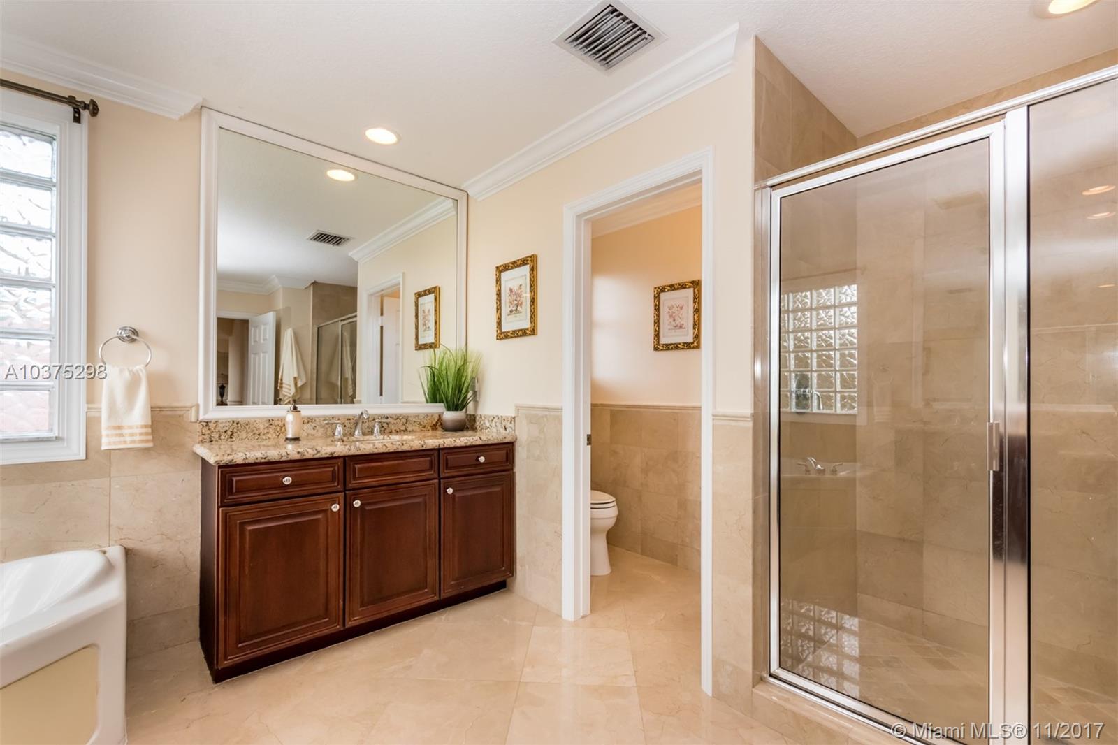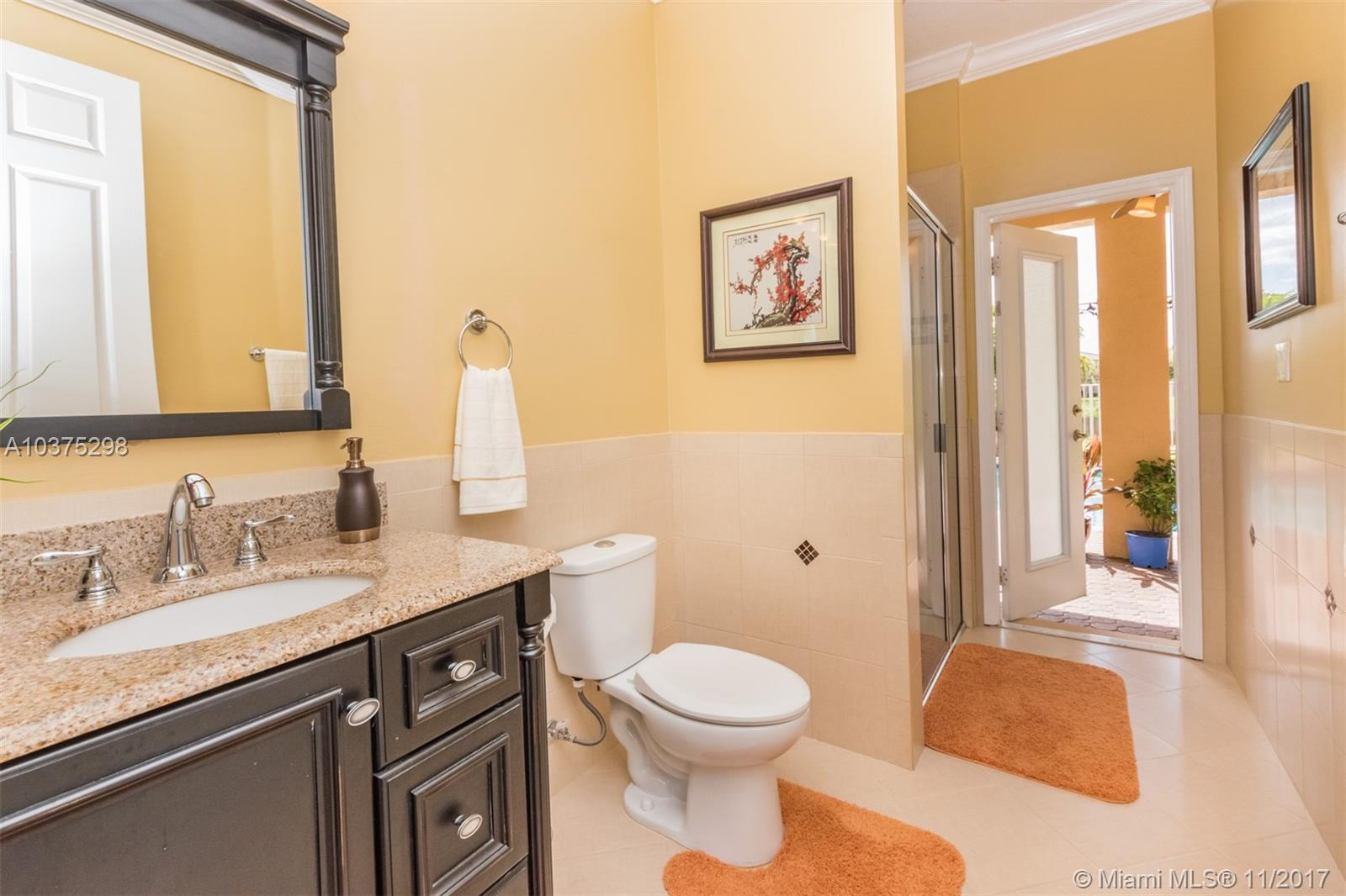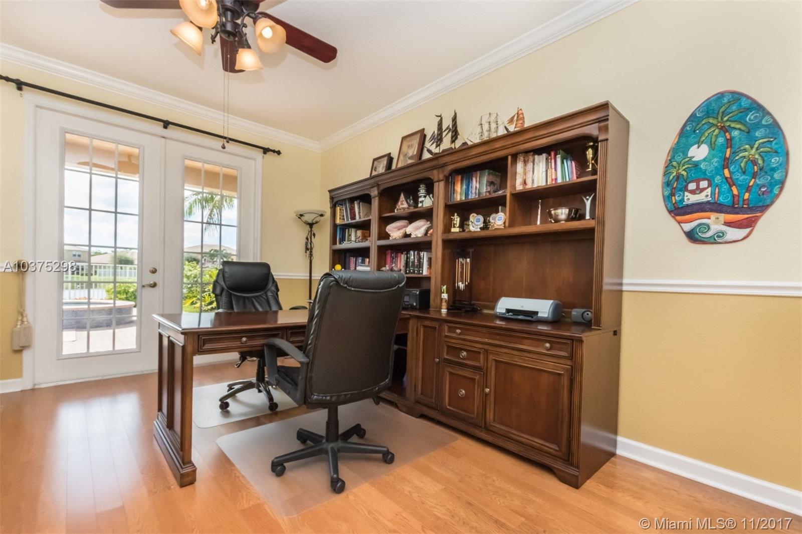 Turn Key Violet model with upgrades galore. Tucked on a quiet lakefront lot, fully fenced and privacy hedged with oversized 36x18 custom pool, paver patio and full length overhang for your comfort. Enter this decorators delight with warm real wood floors flowing through the living areas. House transformed in 2010. Marble flooring in the gourmet kitchen with upgraded 42 inch wood cabinetry, granite countertops, wall oven, Stainless Steel appliances. French doors to private yard. Full bed and 2 baths first floor (cabana) perfect as an in-law suite. All wood floors up with wrought iron dual stairs. Loft converted to playroom with closets. All bathrooms renovated. Oversized master bedroom with sitting area. New A/C(2010) and hot water heater.Extensive crown moldings. Accordion Shutters