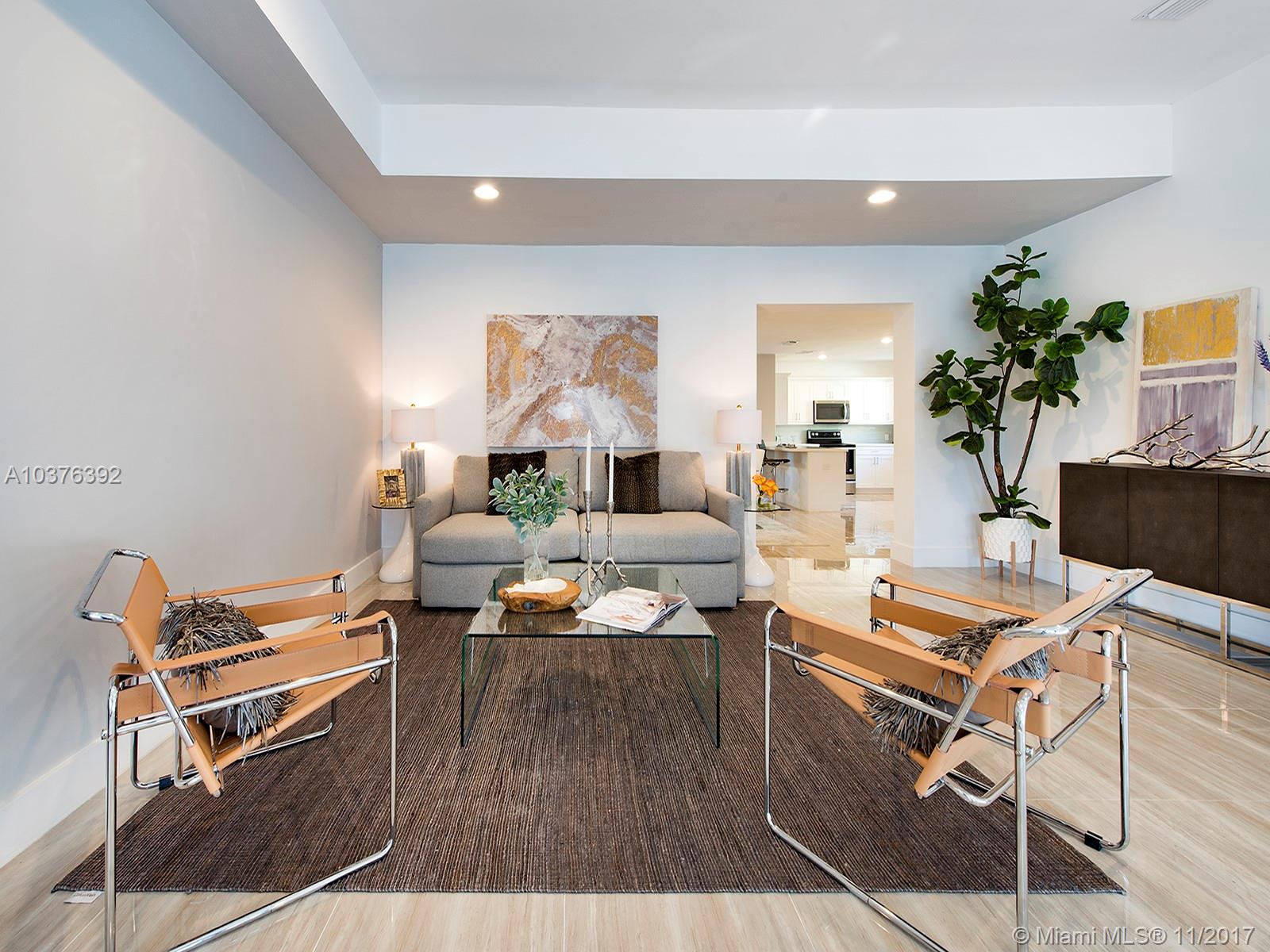 Wow! Completely re-modeled 4bed/3.5 bath 1940’s Jewel with Modern Amenities! Vaulted Ceilings, Open Spaces and Brand New porcelain tile floors throughout! Large Open Eat-In Kitchen with Breakfast Bar, New SS Appliances & brand New Cabinets; perfect for entertaining! Large Master suite includes Double sinks and large closets! Large Family Room with double French doors overlooks the newly tiled patio and private backyard. All new Hurricane Impact Windows, Plumbing, Electric system and panel and A/C! A True must See, this home won’t last long!