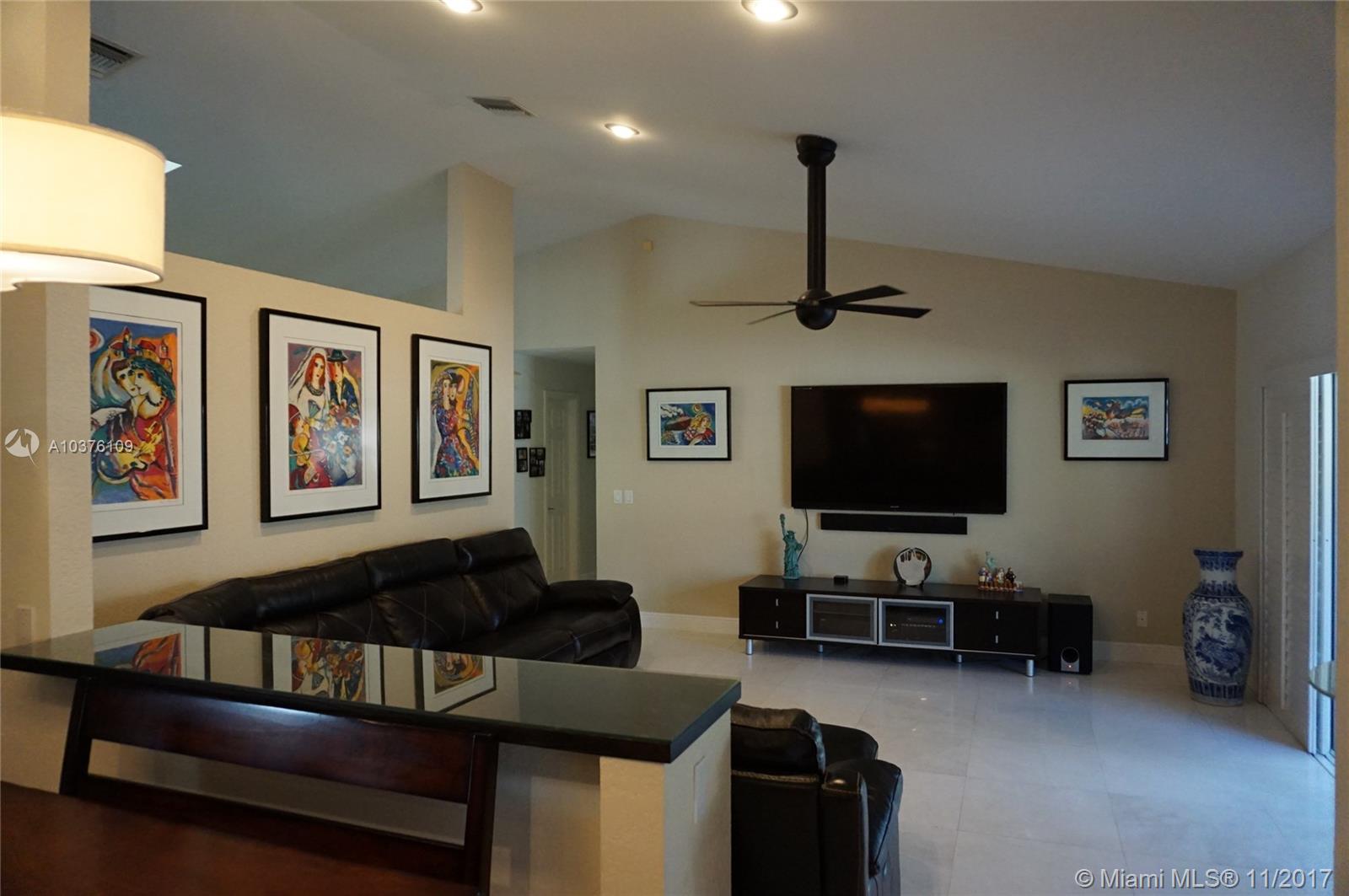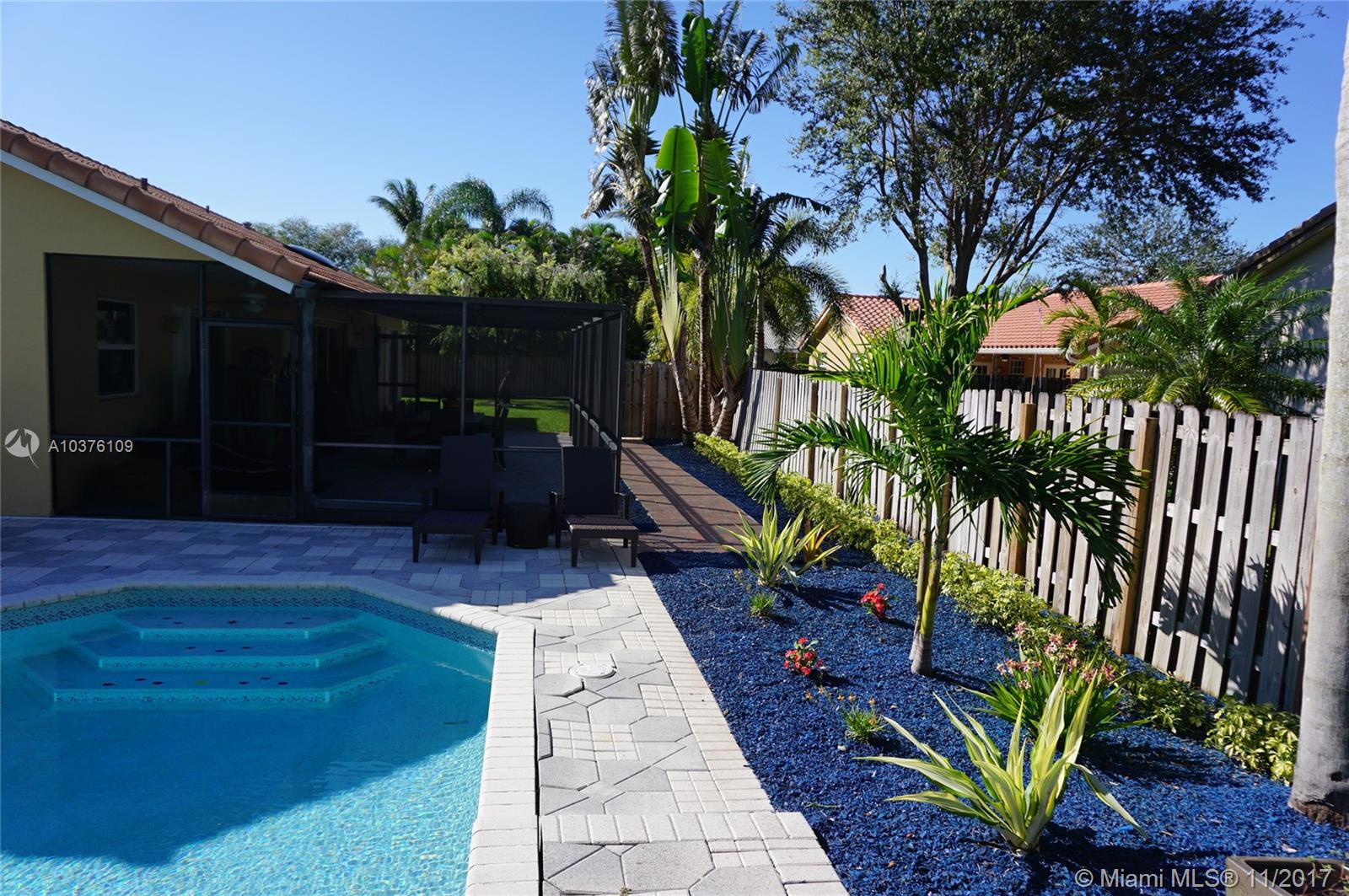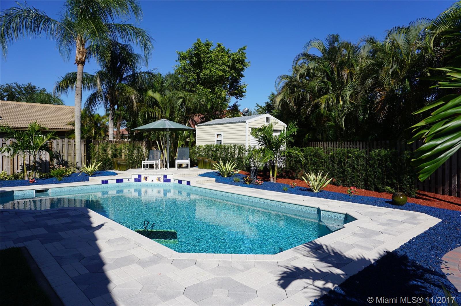 Exquisite 4 bed 2 bath renovated house with oversized lot and Salt water pool with fiber optic lights & waterfall with raised sundeck. Spacious dining & living room, beautiful kitchen with the leather finish granite counters, Designer renovated baths. All closets wooden custom made. 24x24 marble floors in foyer, hallways, family & dining rooms. Full perimeter al arm system, full 5 channel surround sound in family rm. Outdoor speakers. Oversized cul de sac lot with new fenced in yard &pavers bricks.Screened patio, Top of the line brand new digital AC, Digital garage opener, Re-done landscaping, tile roof with 3 brand new skylights, Divided backyard from the pool for Child safety,Organized California style closets. This is a real gem with perfect A + rated schools and great family neighbors.