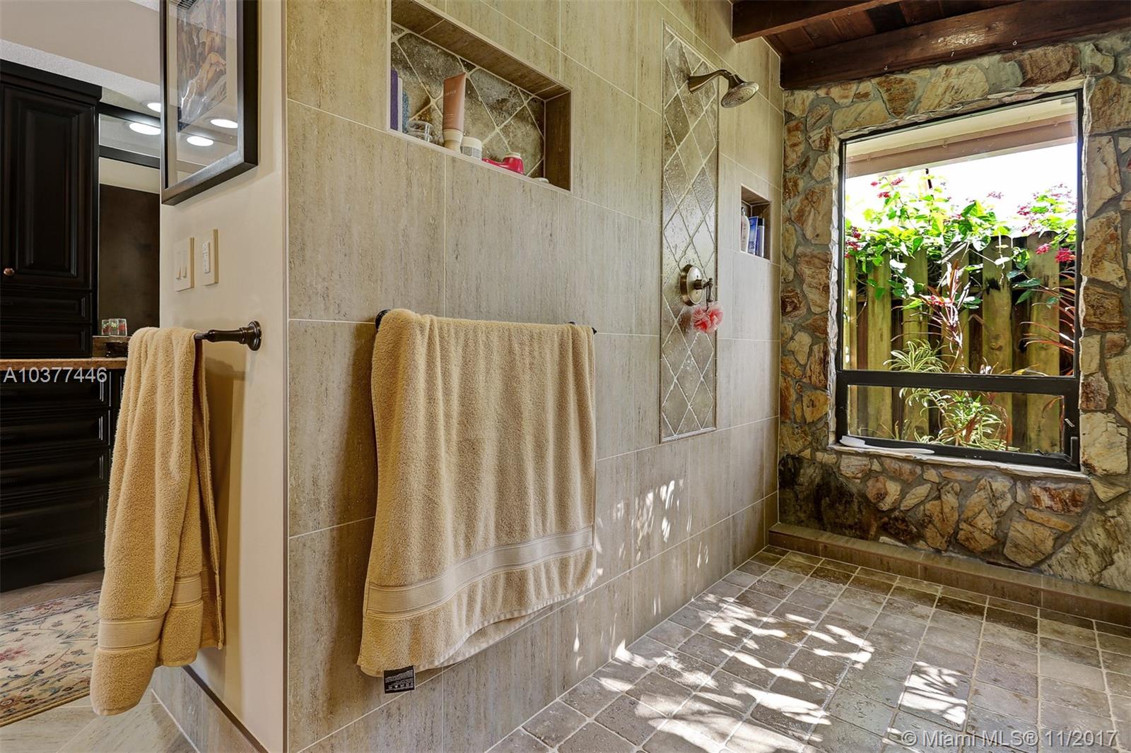 An architectural beauty! This waterfront pool home sits on a tranquil lake with breathtaking views. The lot is a builder's acre, the minute you walk in, you are greeted with 18 ft' soaring cedar ceilings , natural lights, lake views and a wonderful open floor plan. Living room features a sunken fireplace area with Old Chicago bricks accent, remodeled kitchen with silestone countertops. Large Master bedroom with a dressing area, gorgeous remodeled Master bath with a large walk in shower and floor to ceiling windows overlooking an atrium .Private mother-in-law wing with bath and cabana pool door. 80% hurricane windows. Central vac system. Two central air units.Stamped concrete front circle driveway and side driveway to garage. Fantastic 2 level patio area with amazing lakeviews!