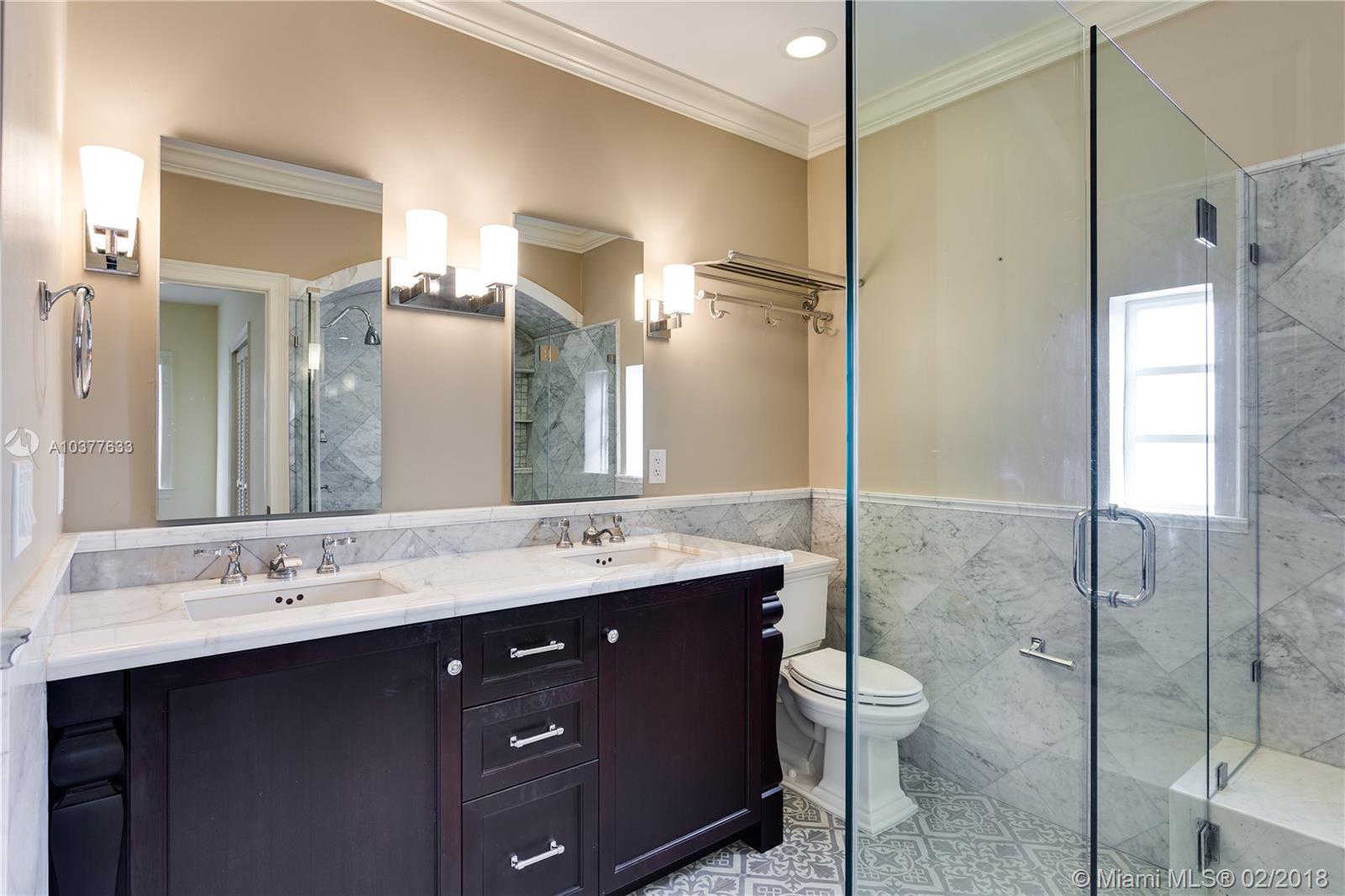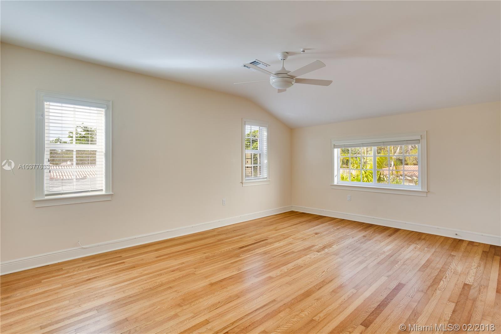 Turn-key, beautifully updated classic 1920's 2-story "Old Spanish" style 4/3.5 on quiet, low traffic Coral Gables street within walking distance to UM campus and in the David Fairchild School District. This is an unusually spacious vintage home with big rooms, big closets and high ceilings. New kitchen, new baths, impact doors and windows. 3/2.5 main house with a 1/1 guest house and a 1 car garage. Center hall stairwell foyer, large formal dining room, 23' long living room with fireplace. 17'X13' master bedroom with 10'X6' master closet