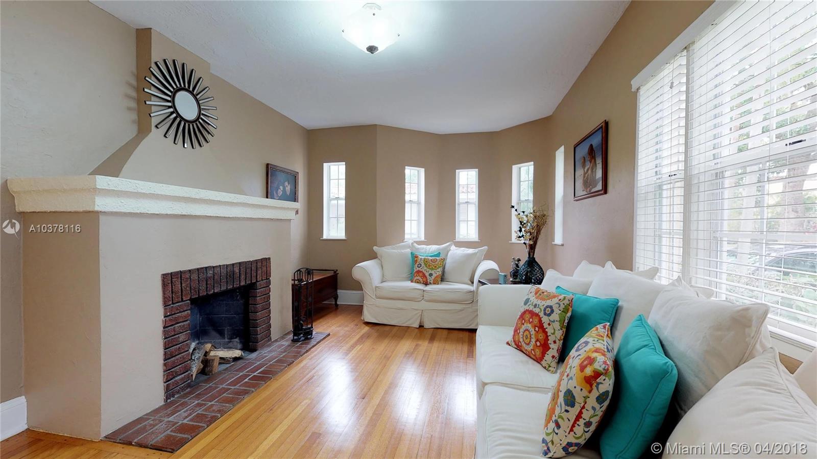 Beautiful old Spanish two story home on quiet street in the heart of Coral Gables. Home features 4 bedrooms, 3 baths, charming fireplace, wood floor, updated kitchen w/ granite, SS appliances, and contemporary finishes. Master bedroom has a private balcony overlooking a tree-lined street. Lovely backyard has built-in grill, perfect for entertaining family and friends & room for a pool. Located within A+ school district, centrally located near Gables restaurants, shopping & entertainment.