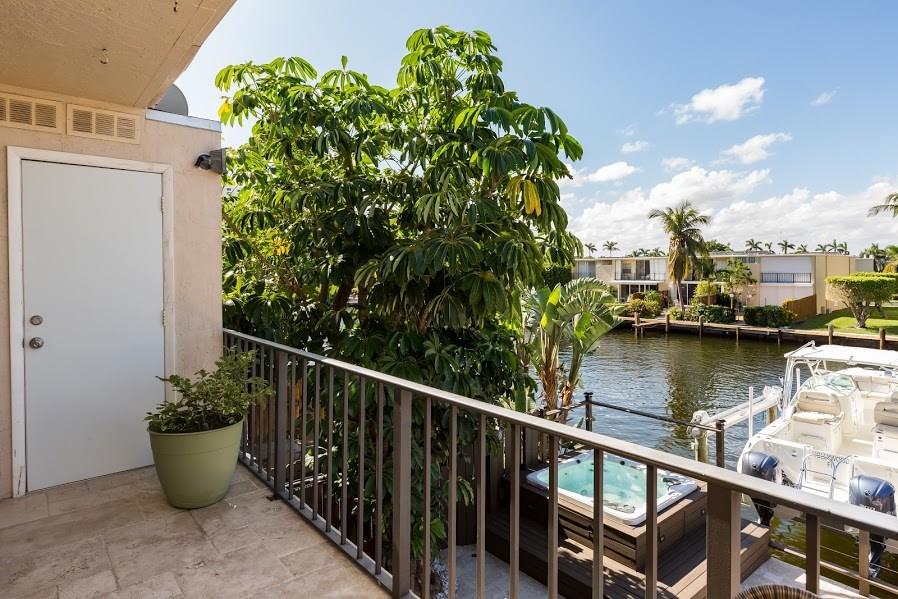 Waterfront model townhome in East Hallandale. Easy walk or bike to beach. Renovated 3 bedroom townhouse featuring a boat lover's dream at a fabulous price. The oversized deck patio has a spa Jacuzzi hot tub, summer kitchen wiith built in barbecue, sink and refrigerator. All this with boatlift and your own private dock. The home is all wood floors, open granite kitchen with all the bells and whistles. Master bedroom has balcony overlooking waterway. Updated baths, laundry room. Complex has pool/gym.