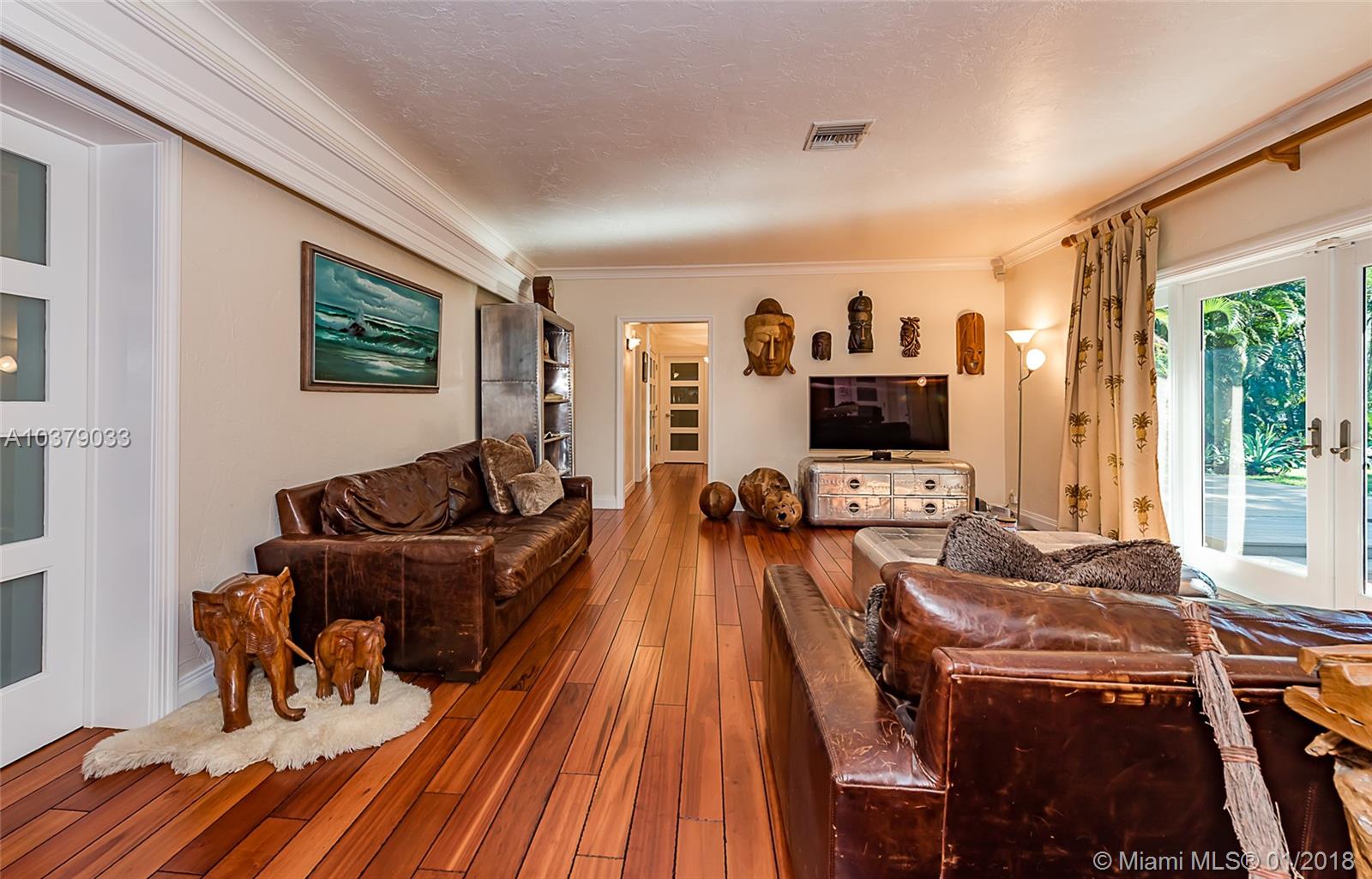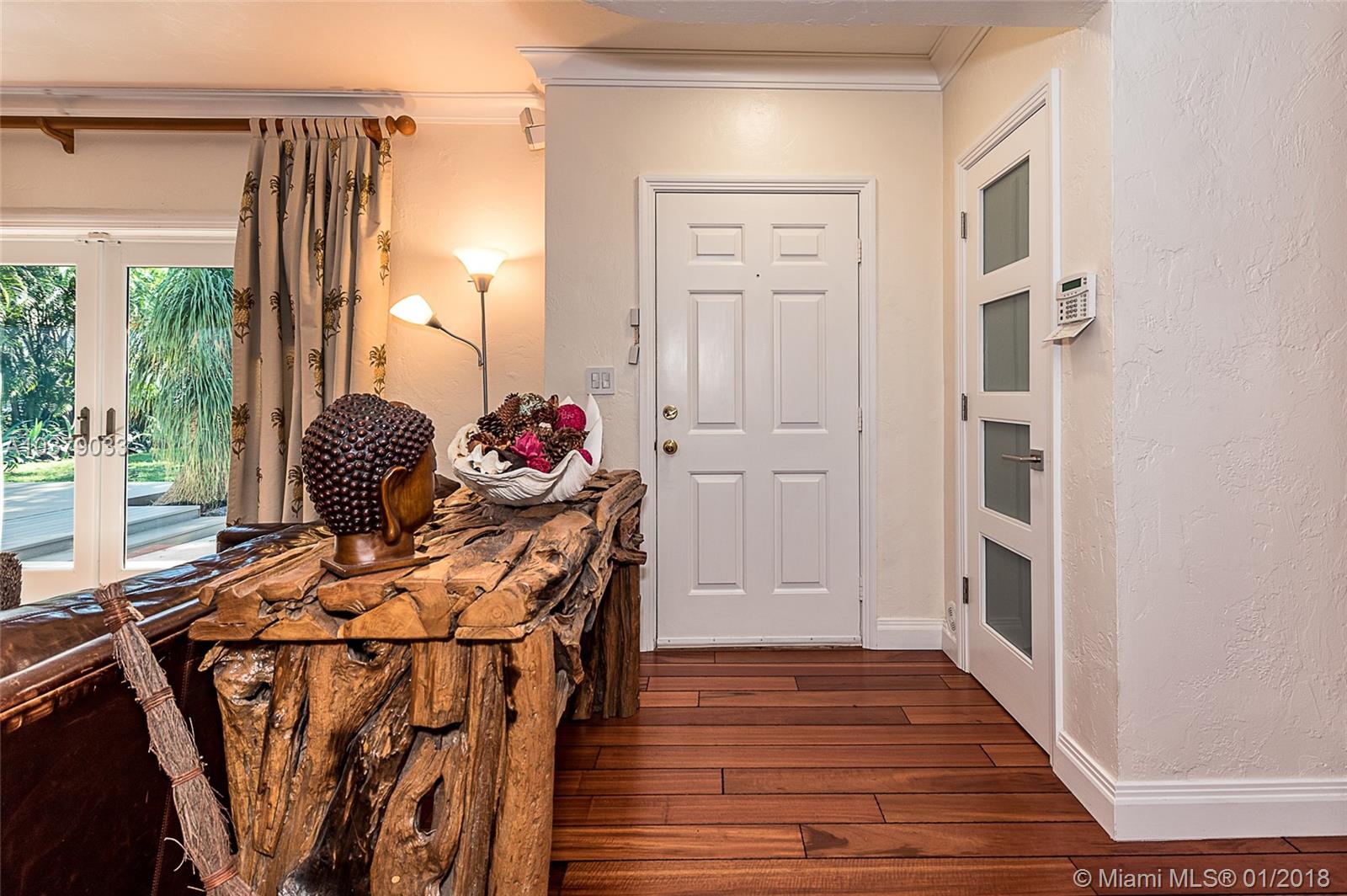Unique home surrounded by tranquil & lush landscaping in prestigious Coral Ridge East of Bayview Dr. Spacious 3/3. One of the bathrooms is a Cabana bath ready for your future pool off the Zen inspired front deck area. (see architect plan) Come & see the attention to details of this distinctive home. Some of these highlights include spacious walk-in closets, elegant custom crown molding and rich hardwood flooring throughout. $20K in custom interior doors. Bathrooms were recently updated with a contemporary look. Living room, cabana bathroom & master bedroom feature french doors to Zen area. New kitchen appliances & newer a/c and water heater. Formal dining room with french door leading to screened entertainment area. laundry room with farmer's bath. Sellers say, "Bring all offers!"