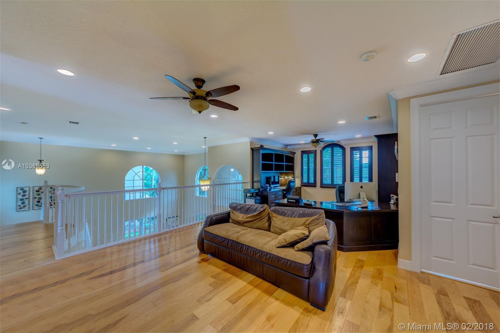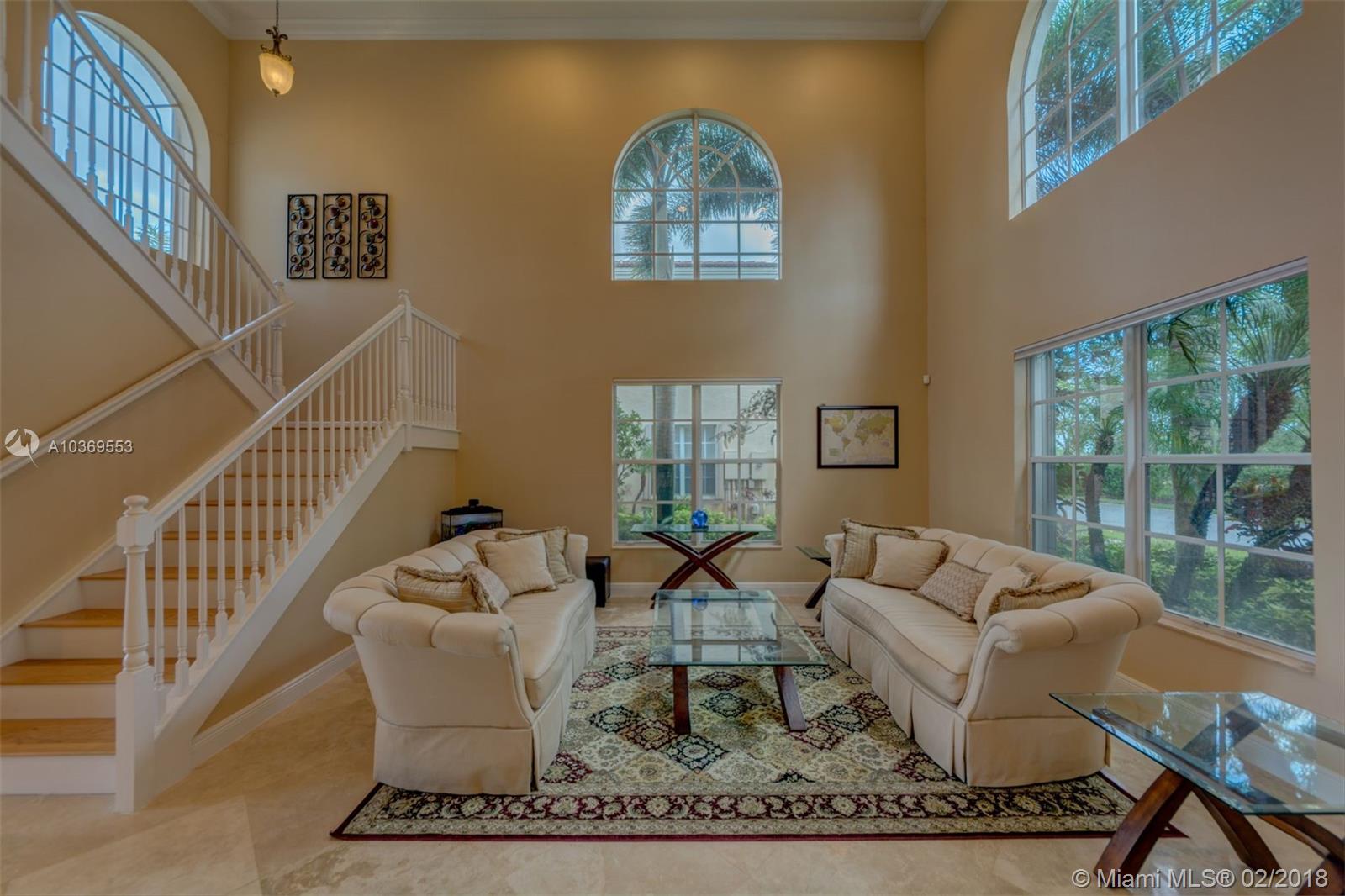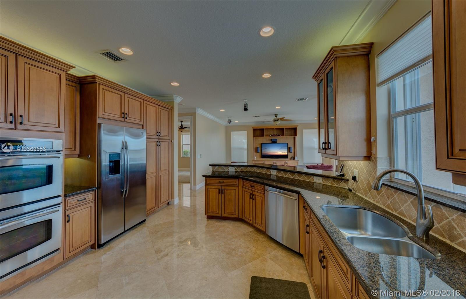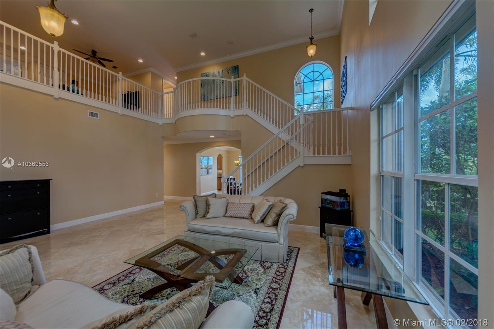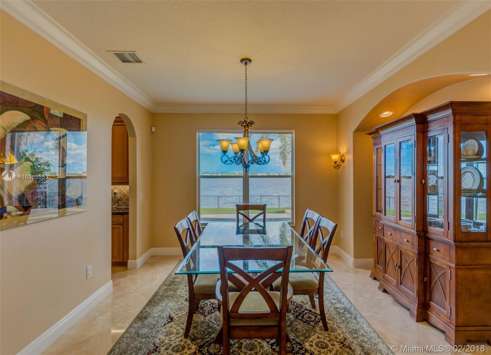 Step into this spectacular estate home and be greeted with exacting standards, premium finishes and spellbinding panoramic lake views. This oversized home features a full bed-bath downstairs PLUS a 6th bedroom builder's option that currently opens as an expansive LOFT. The desirables Buyers seek include a heated POOL with salt water system, an upgraded kitchen with custom cabinets and spacious breakfast area, travertine tile that adorns the entire first floor with engineered wood on the entire second floor, recessed LED lighting with high doors and ceilings throughout, custom plantation shutters, crown molding, accordion shutters on most windows, a fenced-in yard with auto sprinklers, and more. Conveniently located in a guard gated community near schools, shopping, and dining.