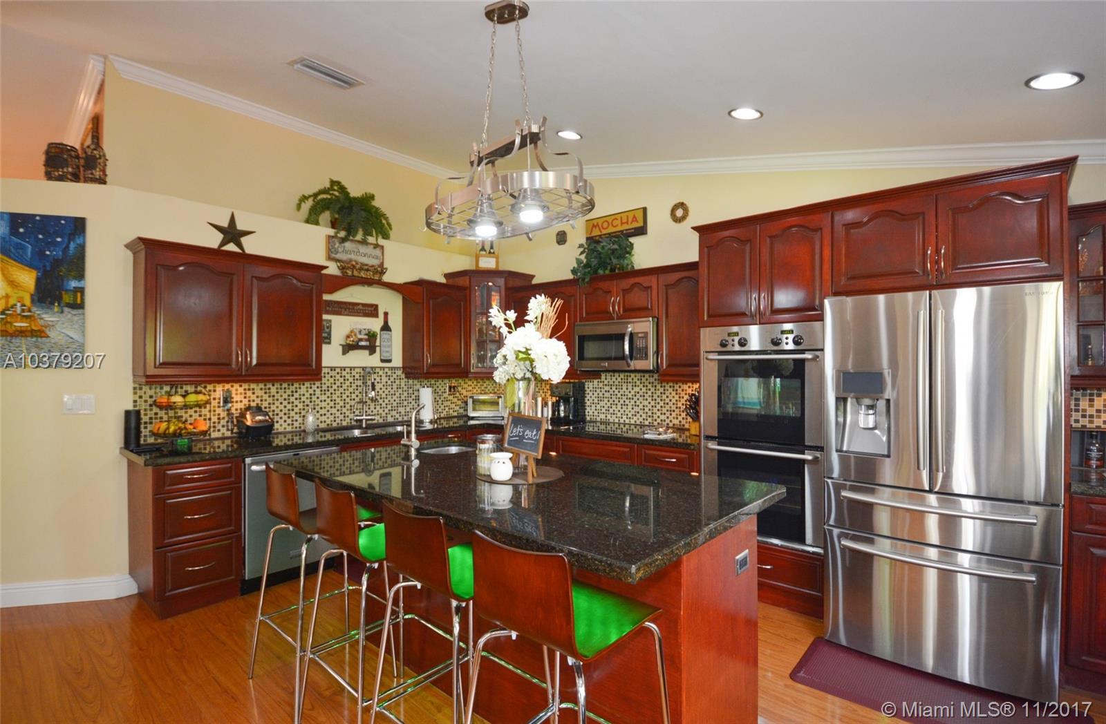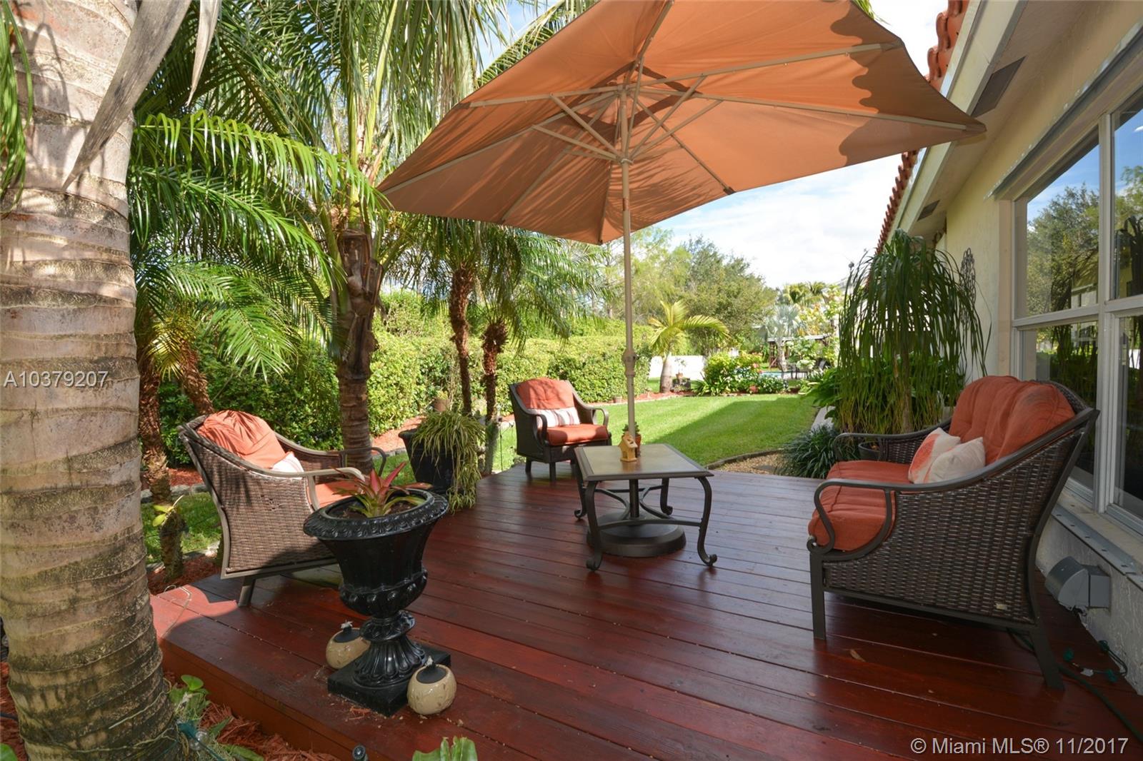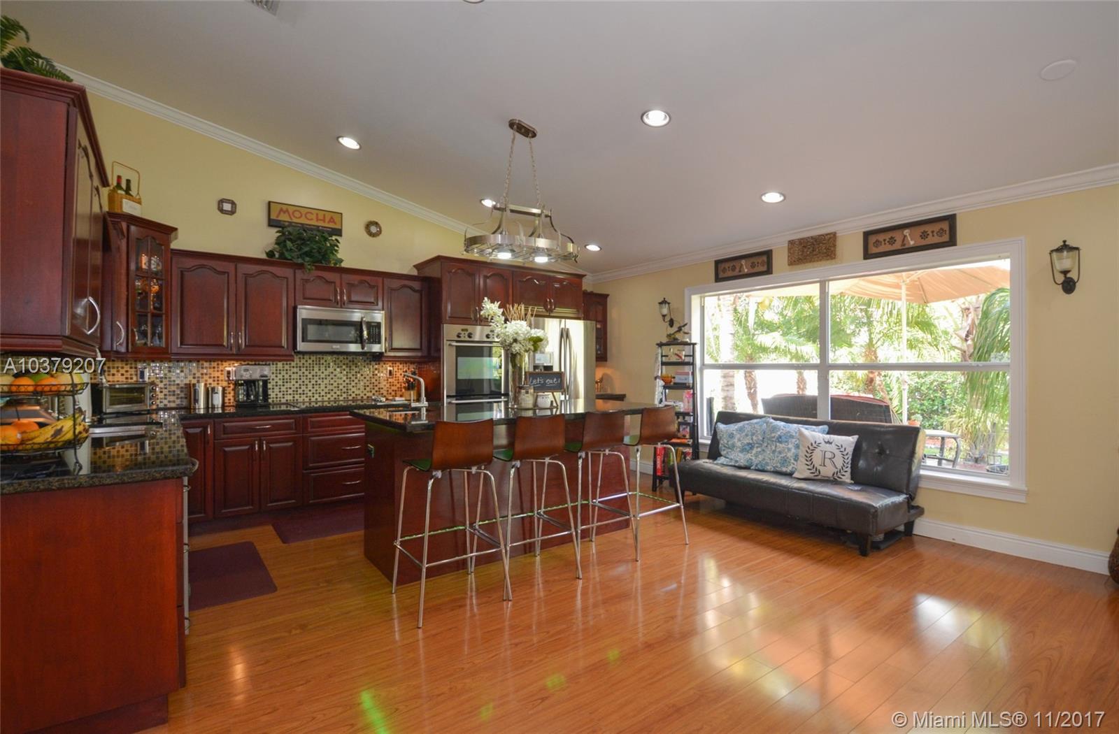 Live the South Florida Lifestyle with your own Piece of Paradise. Beautifully Landscaped Patio/Deck Oasis & Exteriors. Substantially Remodeled inside. This Gem boasts High Vaulted Ceilings, Modified Open Concept, Complete Kitchen Remodel with Granite, SS Appliances, Huge Island, Double Oven, 42" Custom Wood Cabinetry. Brand New Tile Roof with 10 YR Transferable Warranty, Newer High Efficiency A/C, Garage Converted to Bonus Room (can easily be converted back), Custom, oversized Wood Decking, Just re-stained!! Great Location! Close to Fine Dining, Shopping, Great Parks and Easy access to Highways to either Metro Miami or Ft. Lauderdale! Room for a Pool! Don't Miss this One!!
