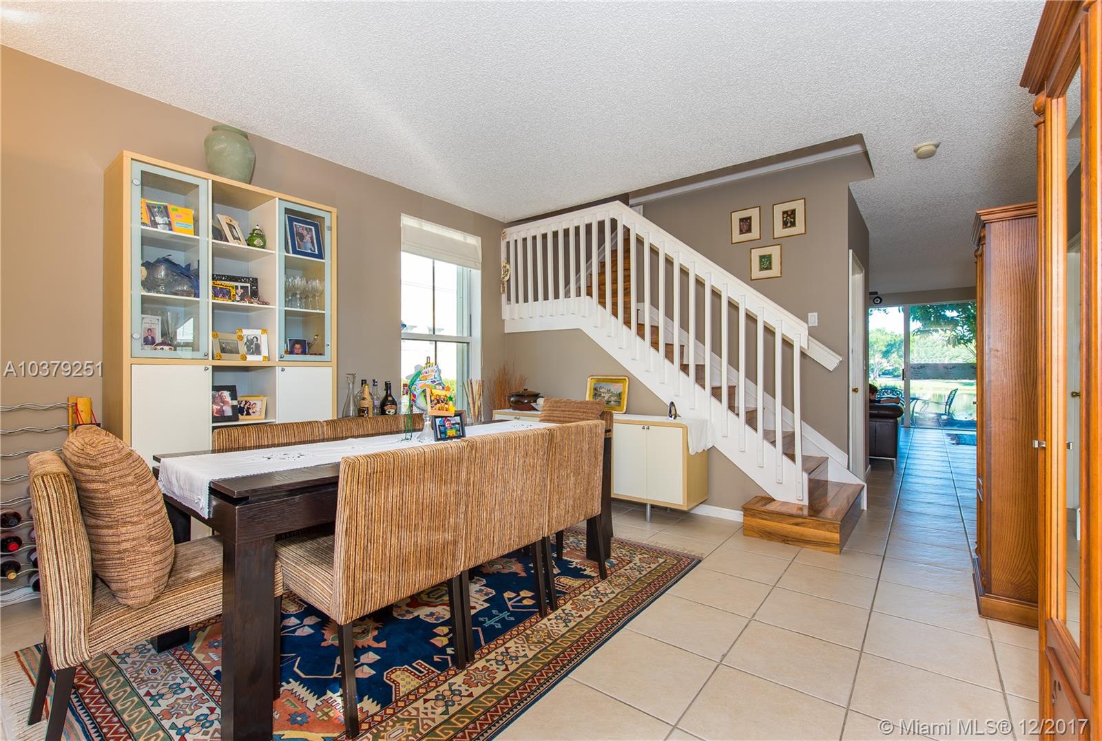 Water Front Well kept corner Townhouse with pretty lake views in Regalo-Riviera Isles Gated Community. Open floor plan with 3 Bedrooms & 2.5 Bathrooms. Ceramic Tiles on 1st floor & Wood floors on 2nd. Water filter for entire Townhouse. New dishwasher & electric oven appliances. Awning on the Patio & Accordion hurricane shutters in every window. 1-Car Garage & 2 Spaces to park in front. Diagonal & Walking distance to MIDDLE AND HIGH SCHOOL.