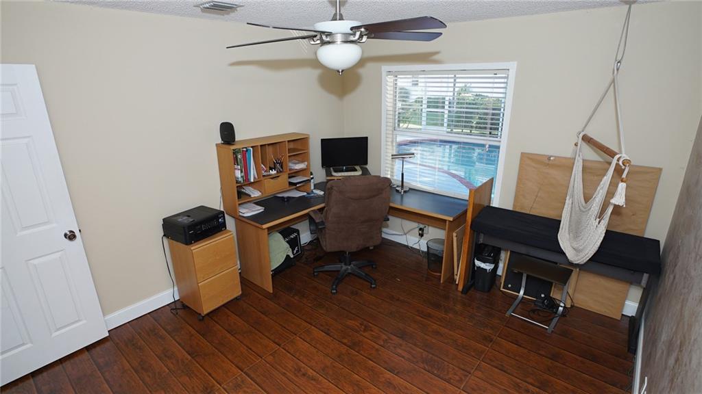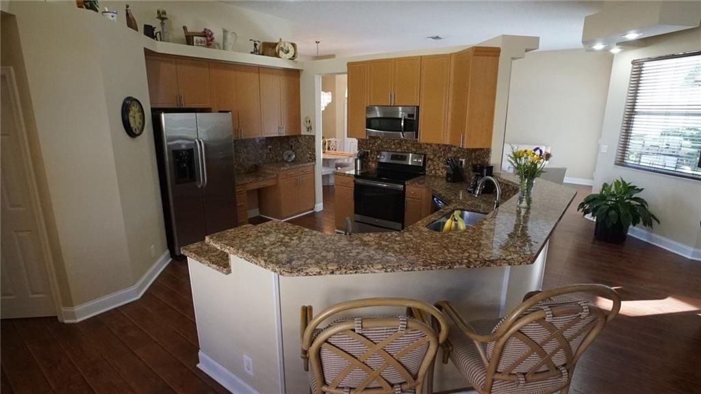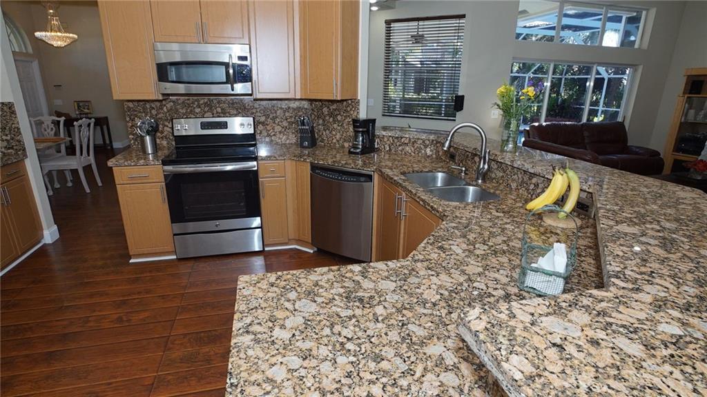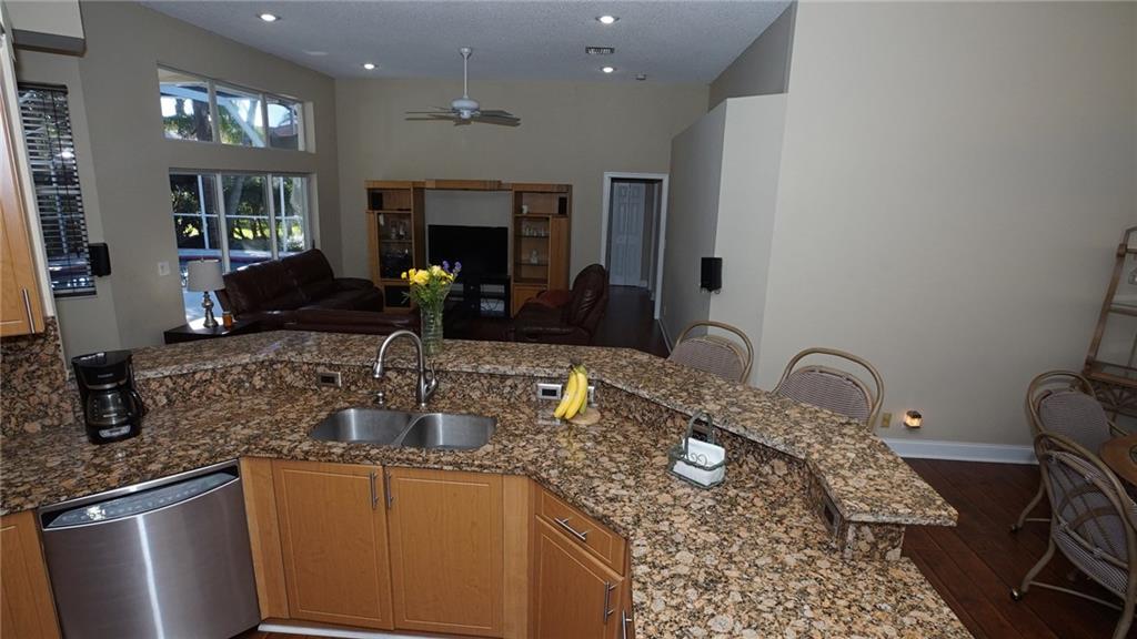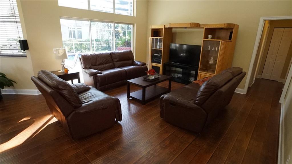 Beautiful 4 Bedroom, 2.5 Bath Home in Highly Desirable Kensington Circle. Split Bedroom Open Floor Plan with Wood Laminate Flooring Throughout Entranceway, Kitchen, Dining Room, Breakfast Area and Living Room. Wood Cabinets and Granite Countertops in Kitchen Area. Large Screened in Pool Area with Cabana Bath. Separate Laundry Room and 2 Car Garage. Beautifully Kept Yard. A Rated schools... Come Visit This Home...You'll Be Glad You Did! See You There...