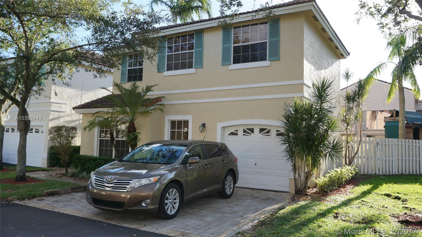 Lowest price for 4/2.5 SFH in Weston. low HOA fees with A+ rated schools. Two story with vaulted ceiling above living room. Large family room and separate dining area. Single car garage, and attractive exterior .Big Corner lot with Playset in back yard. House only needs paint new owners. Lovely gated community with swimming pool. Owner is motivated to sell.
