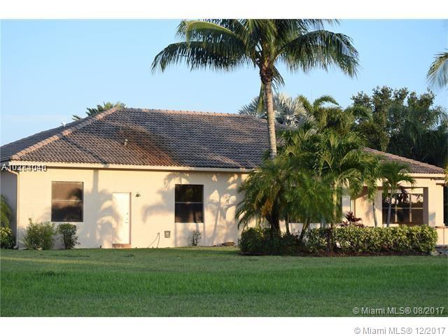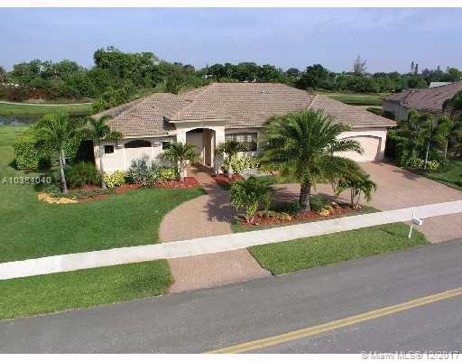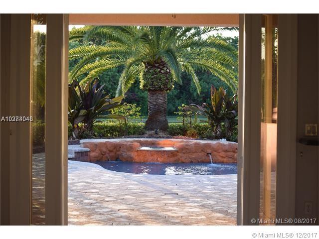 Imagination Farms is an outstanding Davie community. On just under an acre, this home backs to lush vegetation, is completely private and is flooded with natural light. The home backs to an equestrian trail; everyday the magnificent horses come by. It offers some unique features NOT found in similar models. The custom, dream kitchen, uses all 10 feet of ceiling height with cabinetry, has a built in Subzero, Thermador double oven & an oversized Bosch range with hood. Tops are granite, appliances are stainless steel. Wet bar replaces the breakfast nook. Split bedrooms. 4th bedroom has to be installed, as it was removed to expand the family room. Lagoon pool and spa framed by palm trees. Great covered patio with area for summer kitchen. Recently painted in and out. Circular driveway.