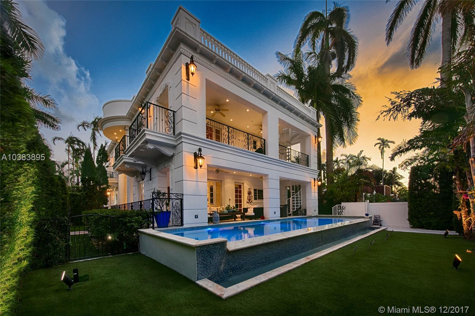 This stunning tri-level corner lot Belle Époque style residence on the Venetian Islands features 3,894 SF of impeccably designed interior space. Spacious living room w/soaring ceilings, private dining room, Carrara marble & Brazilian cherry wood floors & Venetian plaster walls, plus an elevator. Open gourmet kitchen sports top of the line appliances. Spacious 2nd floor master suite w/his/hers walk-in closets, & large private balcony that overlooks a beautiful infinity edge pool. Stunning master bath w/Onyx steam bath & spa Jacuzzi. An amazing 2,570 sqft rooftop terrace w/large Jacuzzi spa with waterfall, BBQ, bar/lounge areas & 360 degree views over the Venetian Islands, Biscayne Bay, and Downtown Miami complete this amazing home. Security Video/Audio Devices Operating on Premises.