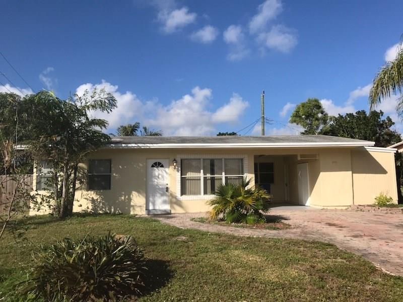 Great starter home on a large corner lot in Pompano Beach. Updated kitchen & baths. Split bedroom floor plan. Freshly painted inside & out. Large Master Bedroom with French doors to outside screened patio. Also access from kitchen to patio. Lots of windows for natural light. Room for a pool. Separate laundry/workshop/storage area in carport. Close to Pompano Beach, restaurants, dining and major mall.