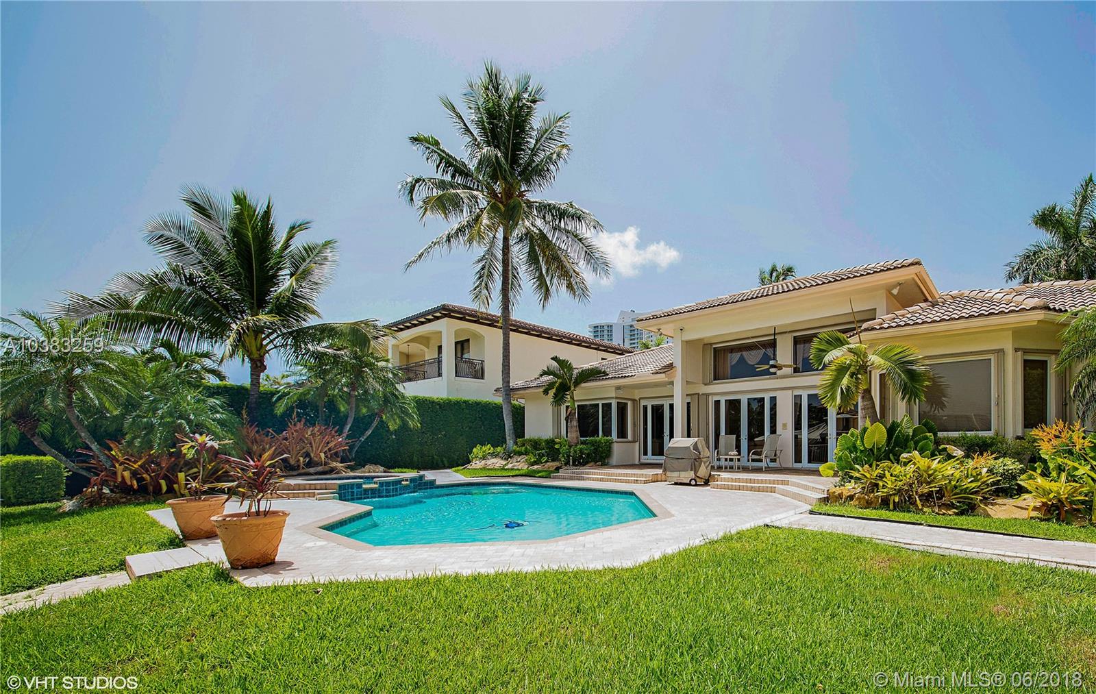 Absolutely gorgeous waterfront residence with 4 bedrooms, 3.5 bathrooms plus private office, located in exclusive gated Golden Isles features marble floors, vaulted ceilings, spacious gourmet kitchen with granite counter-tops, custom-made appliances and cabinetry; master suite with steam shower and jacuzzi; 3 A/C zones. Ideal home for entertaining. Custom heated pool and spa with a chill & heat system. Stunning T canal views, 90' seawall with boat dock and lift, direct ocean access with no fixed bridges. Boaters' paradise. Incredible curb appeal. Excellent location! Close to the beach, restaurants, Gulfstream Park, Aventura Mall and main Highways.