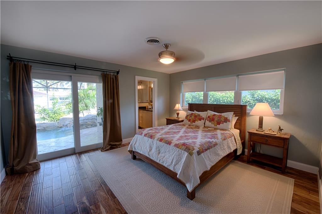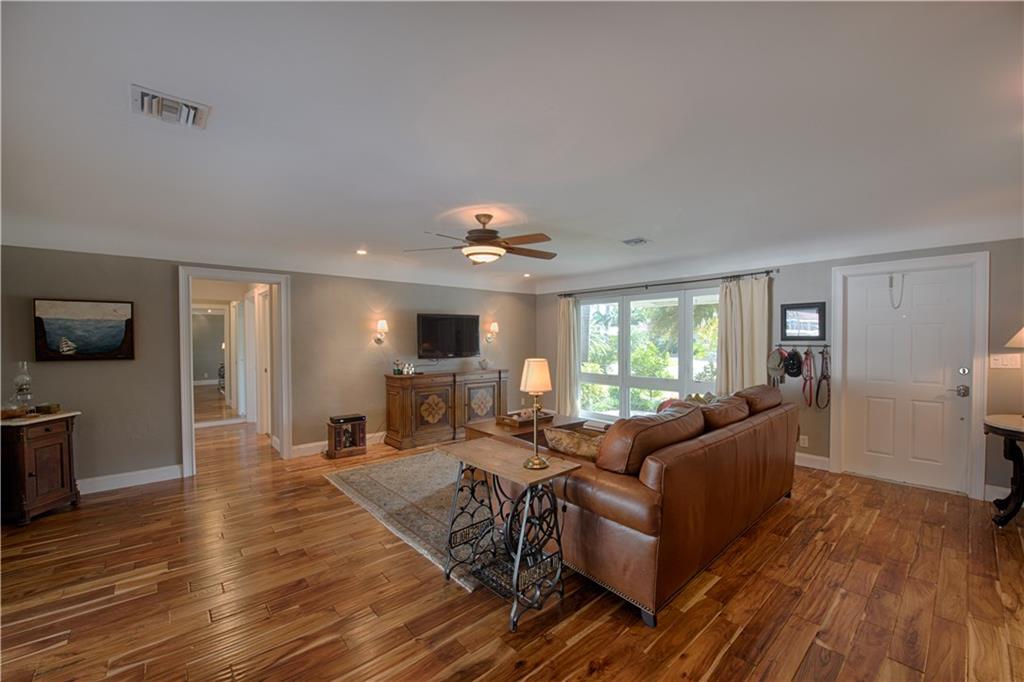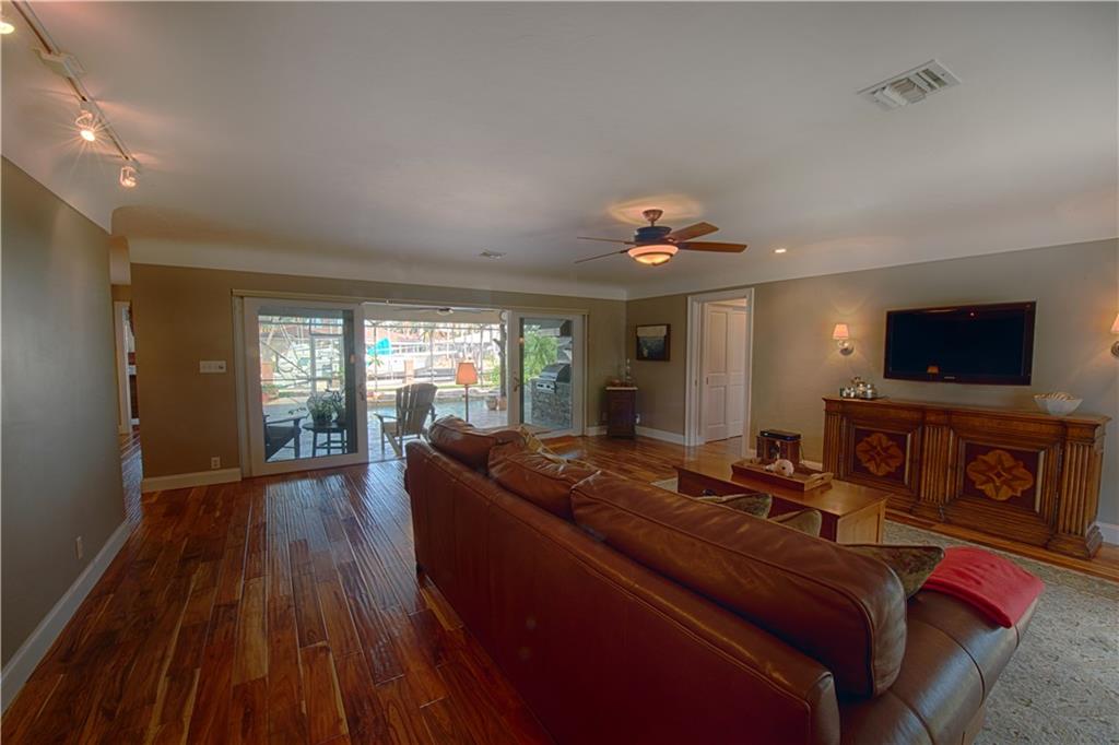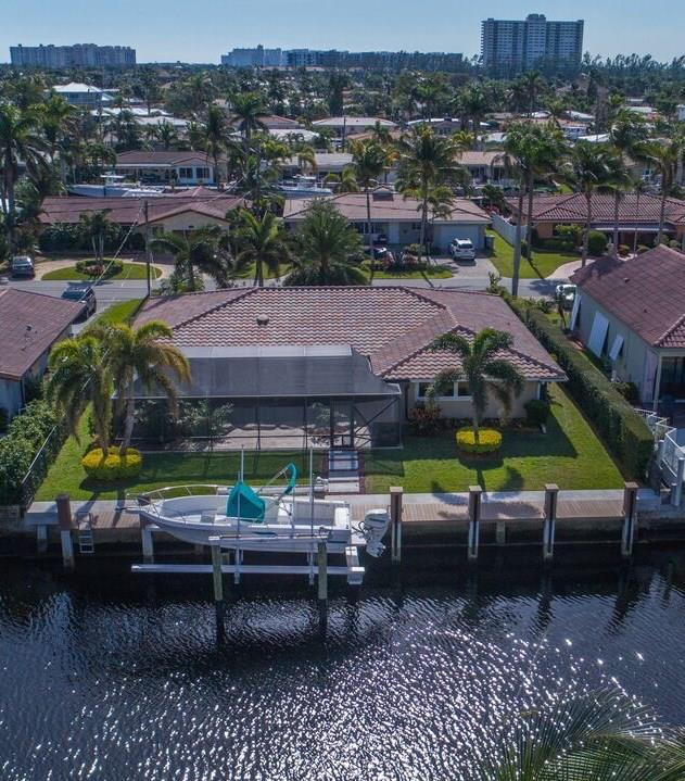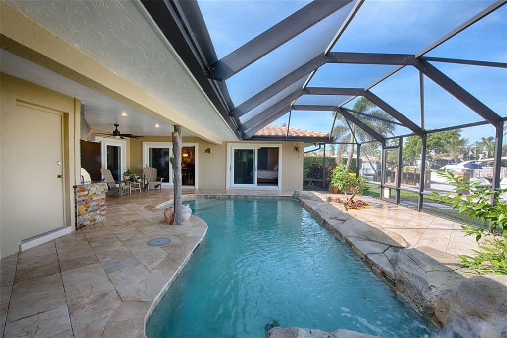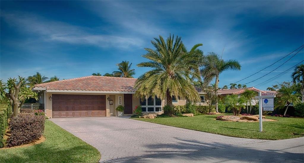 Remodeled in 2013, 3 bed, 3 full bath home w/hand-scraped 3/4" Teak floors throughout. Gourmet kitchen, Viking gas range & wine fridge, subzero refrigerator. All baths remodeled. Three 13' x 14' bedrooms, 2 master suites w/pool & water views. All impact windows/doors. Natural gas tankless water heater, grill & stove. Lot 80' wide on deep, no fixed bridges canal, 2 minutes to intracoastal waterway, 15 minutes to ocean. 70' dock w/new 20,000 lb boat lift. Saltwater pool & spa w/waterfall in screened patio.