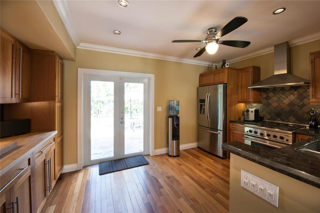 Quality Renovations in this immaculate home! New plumbing and electric, impact windows & French doors, barrel tile strapped roof, natural gas for stove & water heater. Stunning Brazilian chestnut wood floors, crown molding, European kitchen w/butcher blk & granite.Top of the line stainless appliances!Newer Mstr addition w/lg. walk in closet,German fixtures in mstr bath w/sep- shwr & spa tub. Heated Saltwater pl/w/waterfall! Security sys w/cameras. Nest Ac system & tropical landscaping.