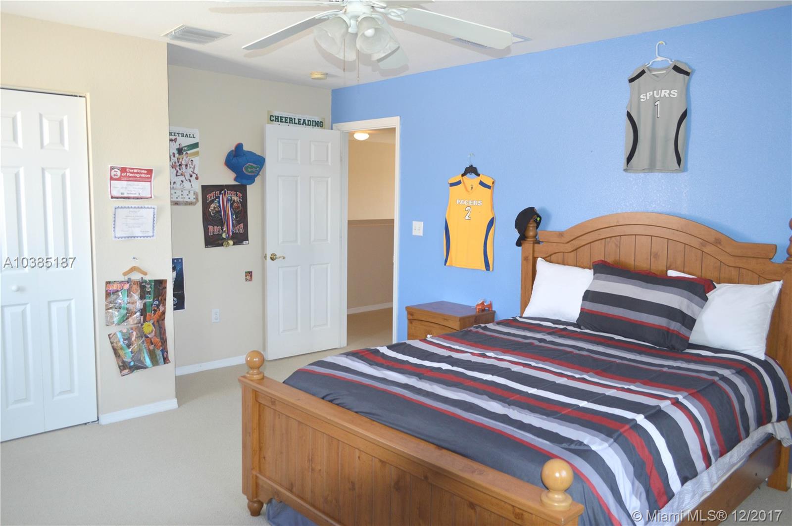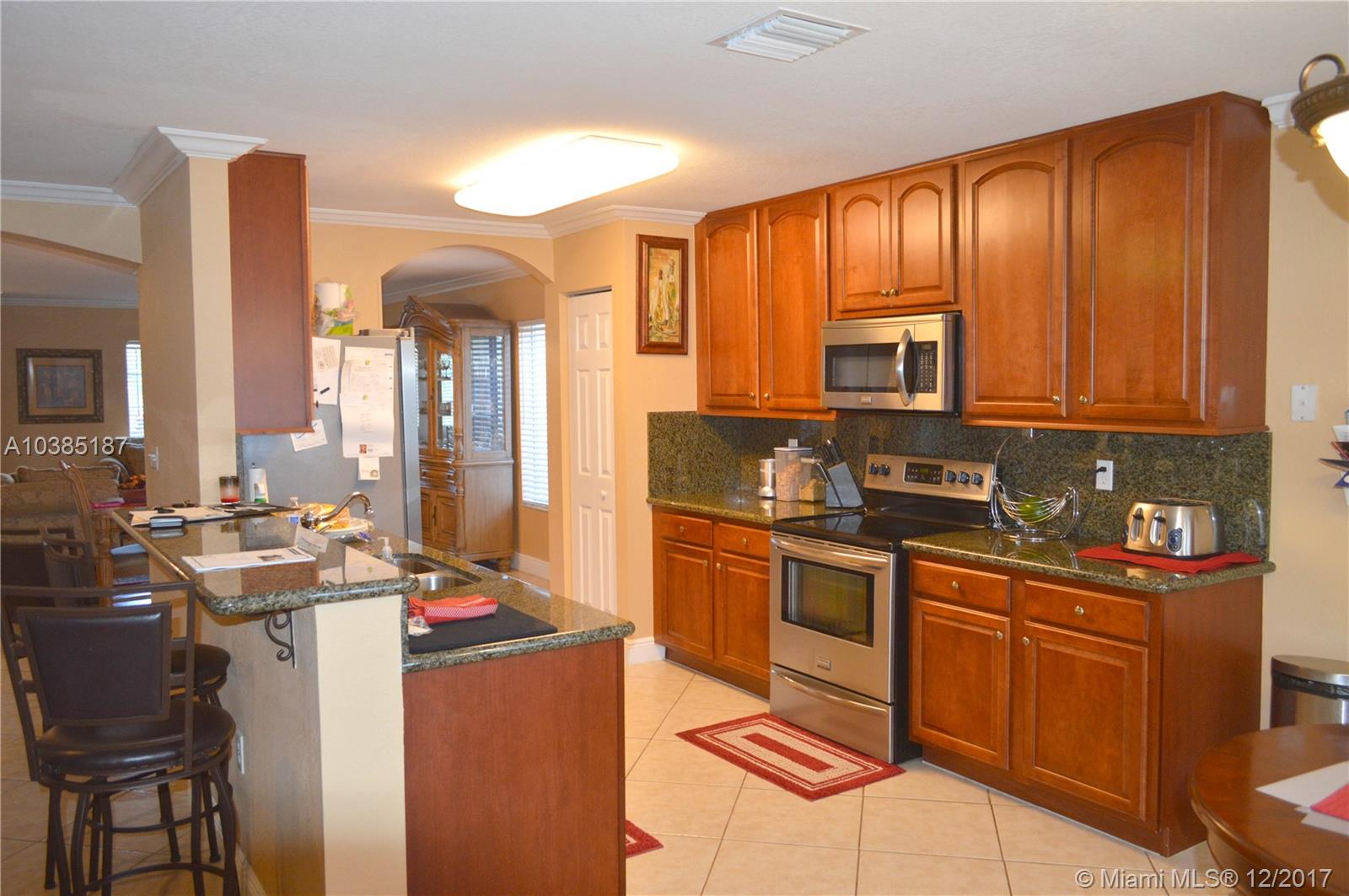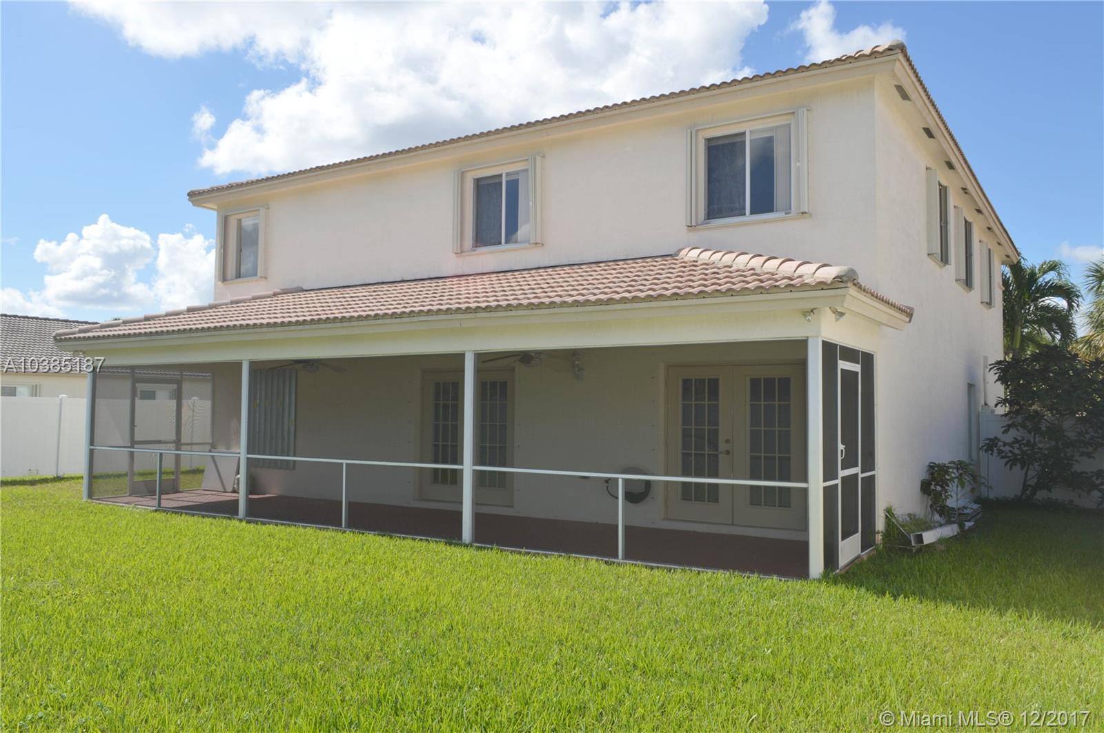 Large 5/3 in excellent condition, with additional den/office or baby nursery room next to master bedroom! Stainless steel appliances, granite countertops, ceramic tiles on the first floor and carpet in bedrooms. His and Hers walk-in closets. Large backyard with covered and paved patio. Impeccable landscaping. This house sits on a private lot. Low $145 monthly maintenance include security, trash and amenities: pool, gym, tennis courts, basketball courts, children's playground, reception room. Perfect for a large or expanding family. Must-see property that is in move-in condition!