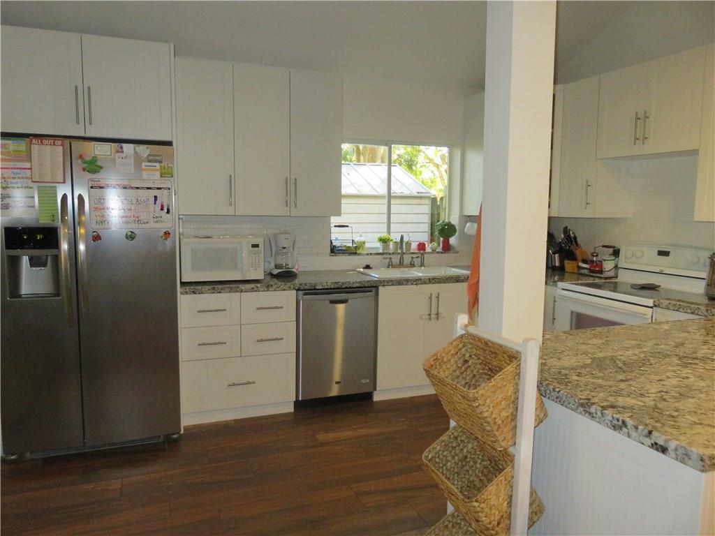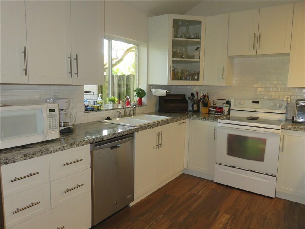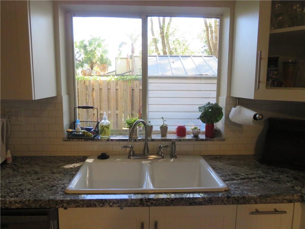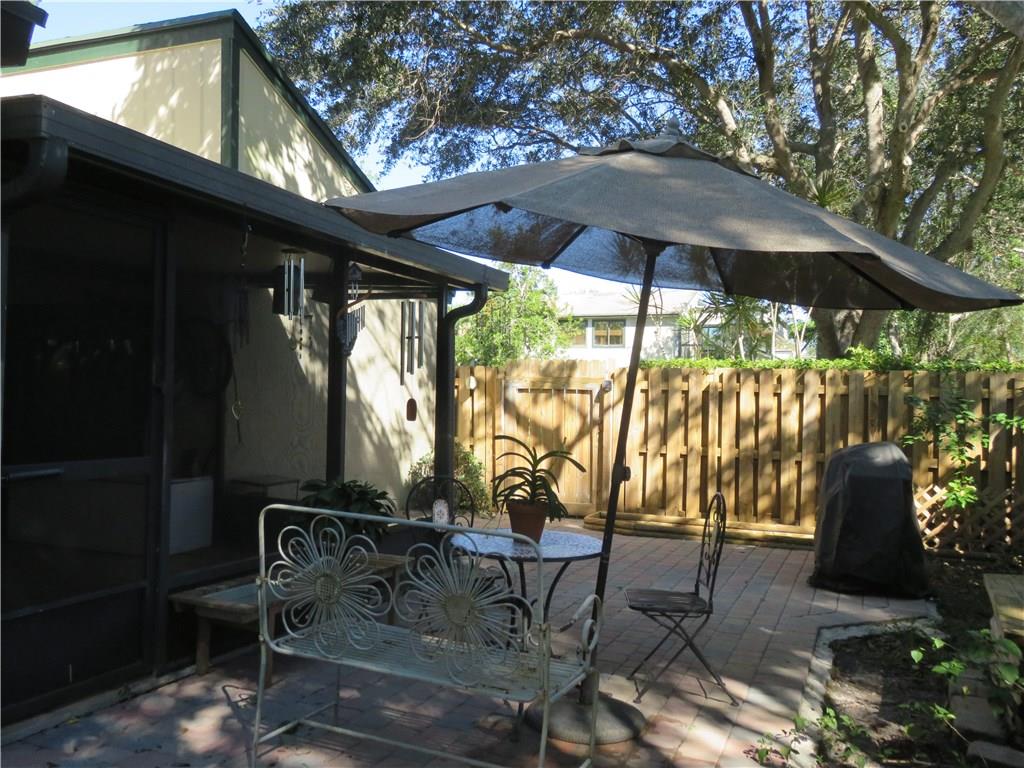 This beautiful home located in well sought Lago West features a screened in entry paved fenced in patio that leads to a living/family entry, dining room overlooking remodeled open kitchen with granite counters & plenty of cabinetry. Master bedroom/bath located downstairs. 1/2 bath next to laundry room. 2 bedrooms & full bath upstairs. Big walk-in attic. Porcelain tile downstairs & carpeting upstairs. Very spacious rooms. FHA & VA approved. No rental restrictions. Insurance included in maintenance fees