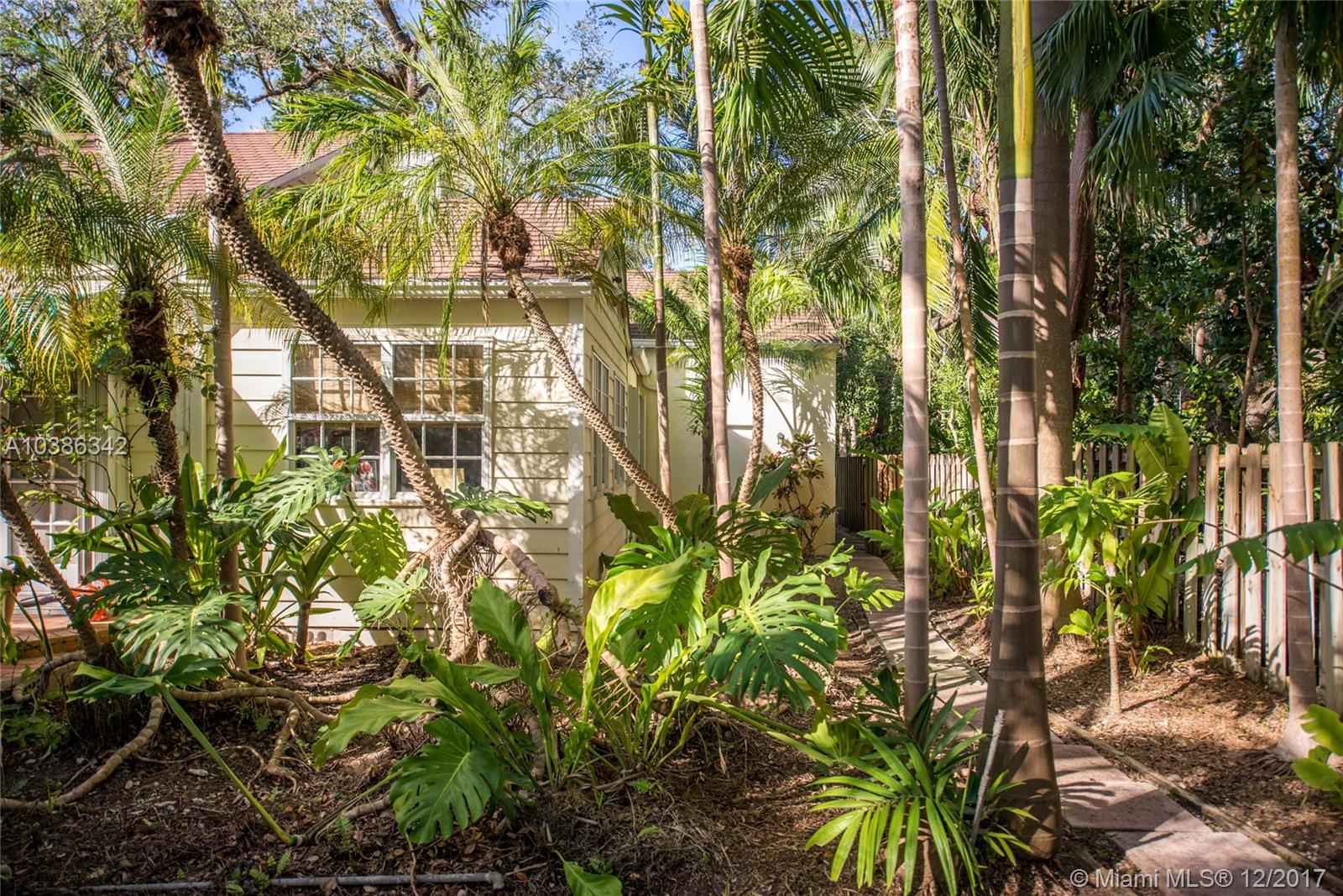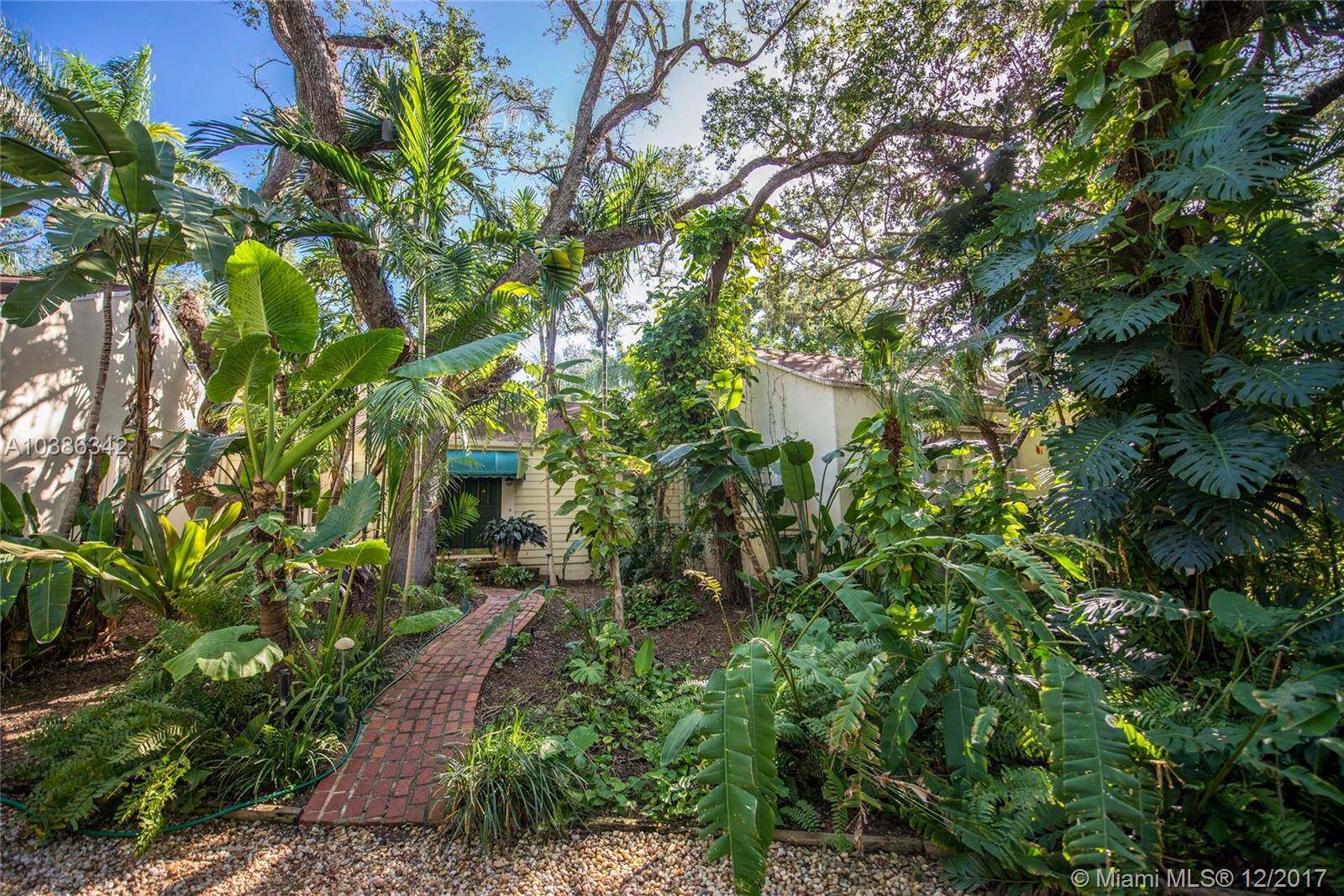 Quintessential “Old Miami” style home on a coveted N. Grove street in a neighborhood of large estates. Walk to bayfront parks & marinas and close to the Grove village center. Gated & exceptionally private grounds w/winding walkways through lush botanical garden canopied by majestic oaks. Light-filled living spaces w/wood floors, banks of French doors, fireplace & custom millwork throughout. Beautifully renovated kitchen features wood cabinetry, commercial-style gas range & breakfast area. Expansive master suite has separate sitting area & 2 room-sized closets. 4BR/3BA main house + charming 1BR/1BA cottage. The home features a 2CG, a whole house generator & camera system throughout. Not in a flood-zone (one of the highest elevations in S. Florida). Minutes to downtown, MIA & the Beaches.