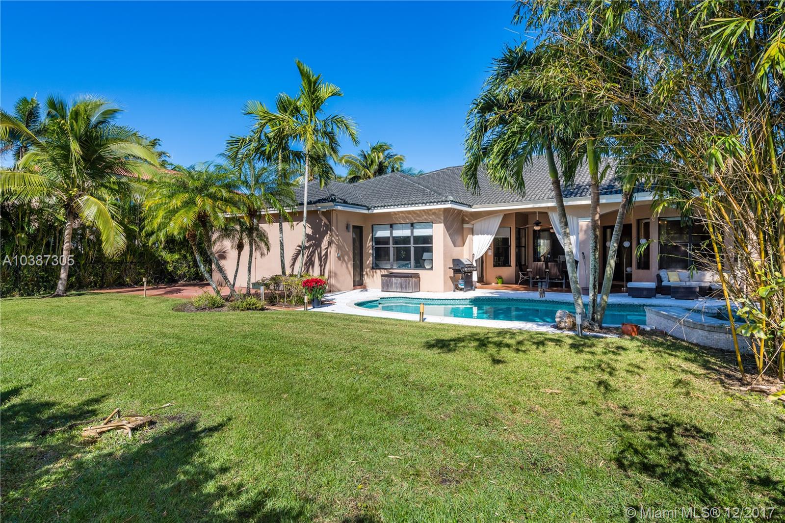 If you like entertaining and wide-open spaces, this may just be the most alluring 1-story home you'll find in the Estates of Pembroke Shores at any price point. Several attributes make this unique 4 bedroom + DEN home appealing. The lot size and location has one of the longest driveway space in the entire community. The split floor plan includes an upgrade list complete with IMPACT windows-doors, a chef's kitchen with granite counters and stainless appliances, an interior/exterior 6-speaker Sonos-system, crown molding and French door patio doors. The Master suite has an upgraded, soothing, bath area and dual walk-in closets. Outdoor fun is plentiful as you relax under the covered patio, enjoy splashing around in your pool or play hard in the oversized fenced-in yard. Guard gated community.