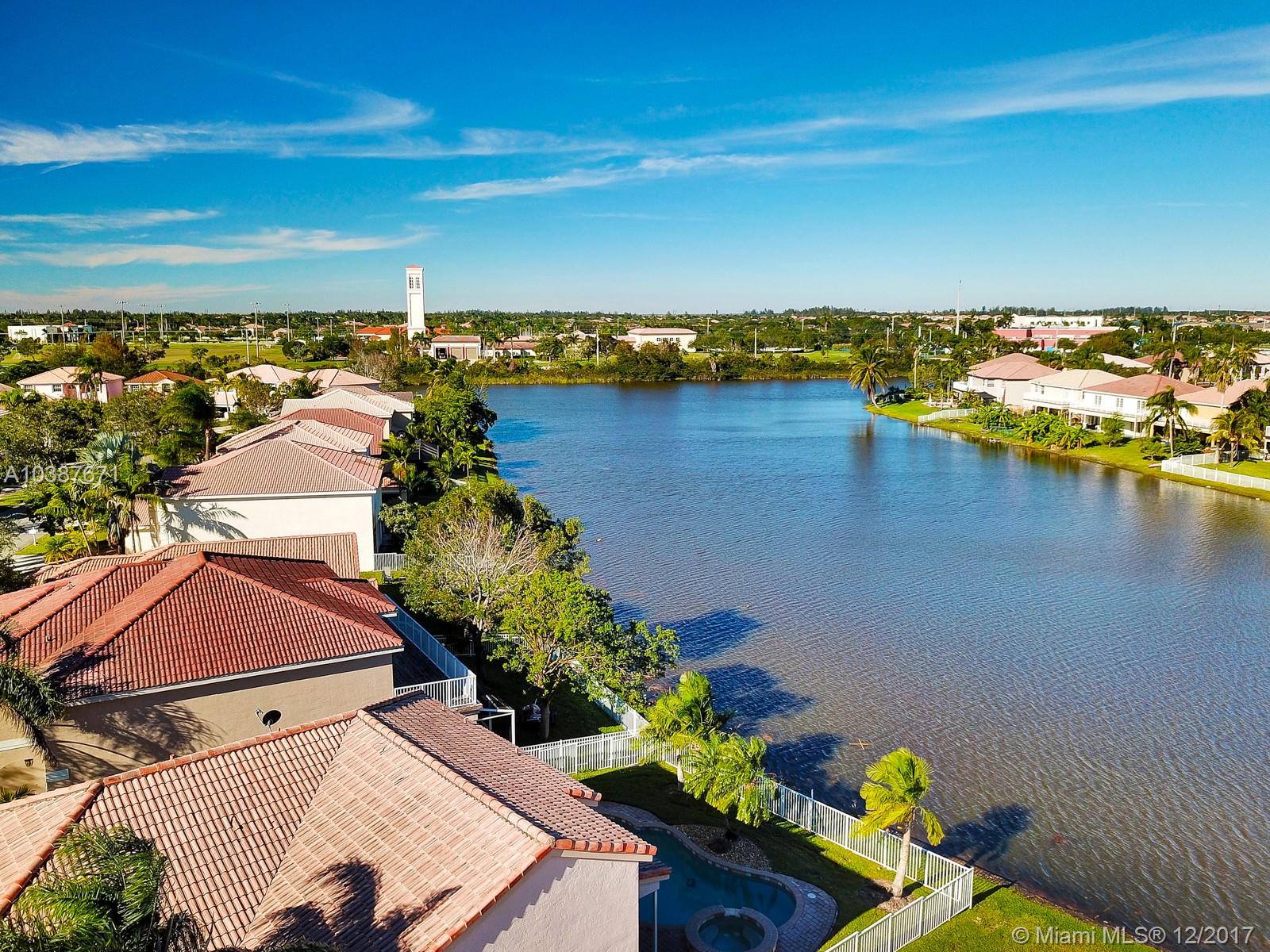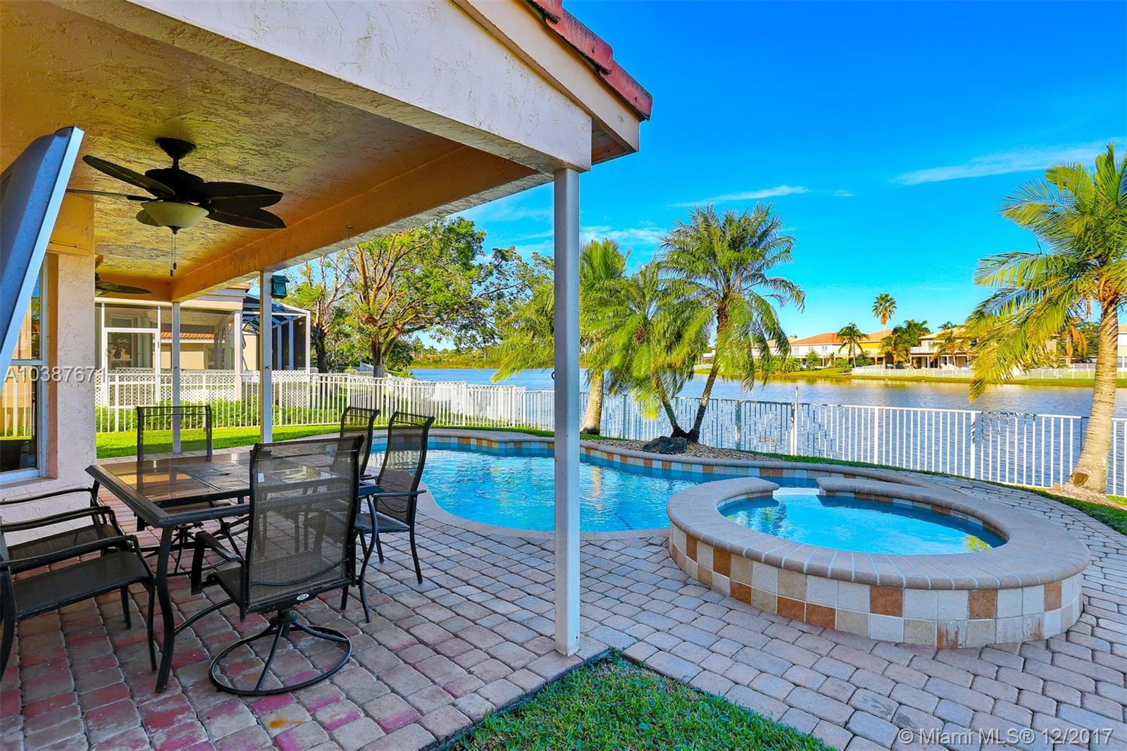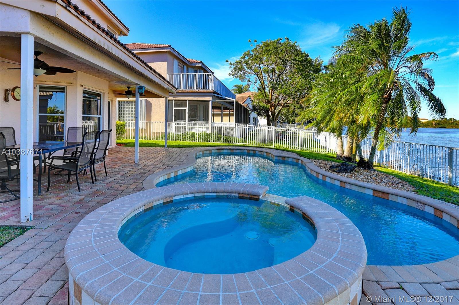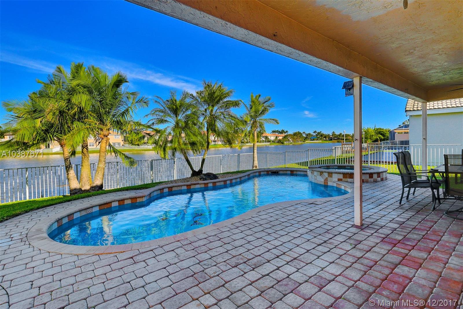 Amazing lake views from this pool home! Spacious , open kitchen concept with breakfast area and a bay window all leading to a large Family room with views of the water. Large Master Bedroom upstairs with a huge walk in closet, extra den overlooking the 1st floor, all laminate floors in bedrooms, pool area features a covered patio, brick pavers, heated pool with an elevated Jacuzzi, fenced yard all overlooking gorgeous long lake views. Property also have a water filtration system and hurricane shutters. This is a great home in a great community!