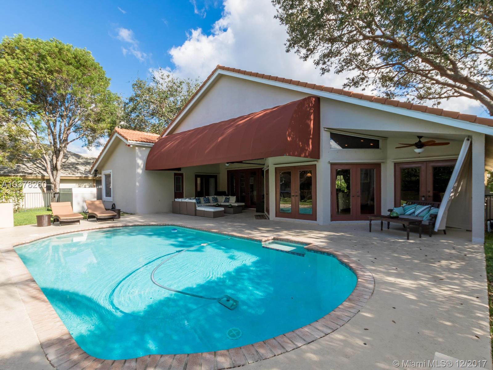 Spacious 5/3 pool home in Eagle Trace! Open floor plan with split bedrooms, built-in Office in 5th bedroom, All bathrooms have been updated, Roof replaced in 2008, Brand new AC units, newer Kitchen appliances, updated kitchen counter top, Hurricane Shutters, Covered Patio, Awning recently replaced. 24 hour manned gates, tennis, sports courts, playground, Close to shops, great schools and major highways.