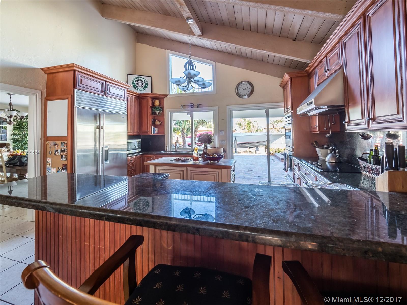 Beautiful Key West Style Home on Deep Water in Exclusive Pompano Isles! This charming residence features, Architectural Style vaulted ceilings with Natural Wood Beams and an abundance of light! The Gourmet kitchen is superbly equipped, with an open style floor plan, Granite counter-tops, Rich Solid Wood Cabinetry, a Double Convection Oven and Sub-zero refrigeration too! Amazing newer Tiki Hut overlooking the waterway is perfect for entertaining.This is a one of a kind waterfront home you will want to see. One sided street for added privacy! Truly a Boaters Paradise! The Dock is fully equipped w/elec.& water. There is an electric Boat lift too! This Charming Oasis is a value added Waterfront Property that is priced right and surely not to last!