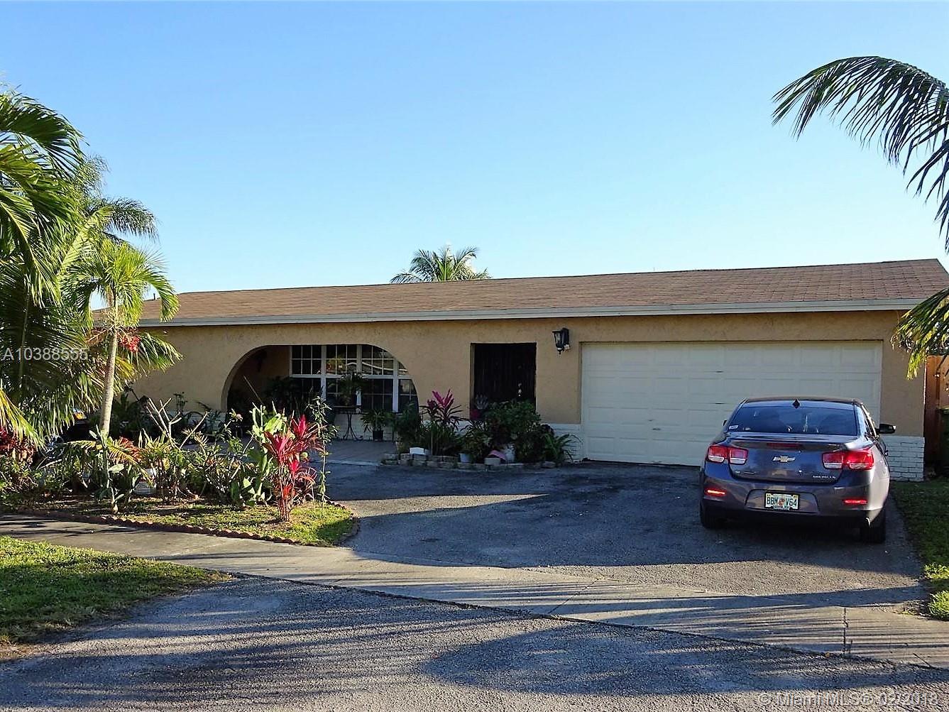 Lovely, large home in a quiet residential neighborhood of Pembroke Pines, just south of Johnson Street. All rooms are spacious and the open floor plan flows beautifully. Wood and tile floors, and ceiling fans throughout. The updated kitchen has windows over the sink with a view to the backyard and a convenient snack counter. The dining area is large enough for a table for 8 as well as a hutch! 2 Car Garage with circular drive, 4 Bedrooms, & 2 Bathrooms. Bathrooms are upgraded - dual sinks!. No Homeowner's Association. Between I-75 and the Turnpike, convenient to either Dade or Broward destinations.