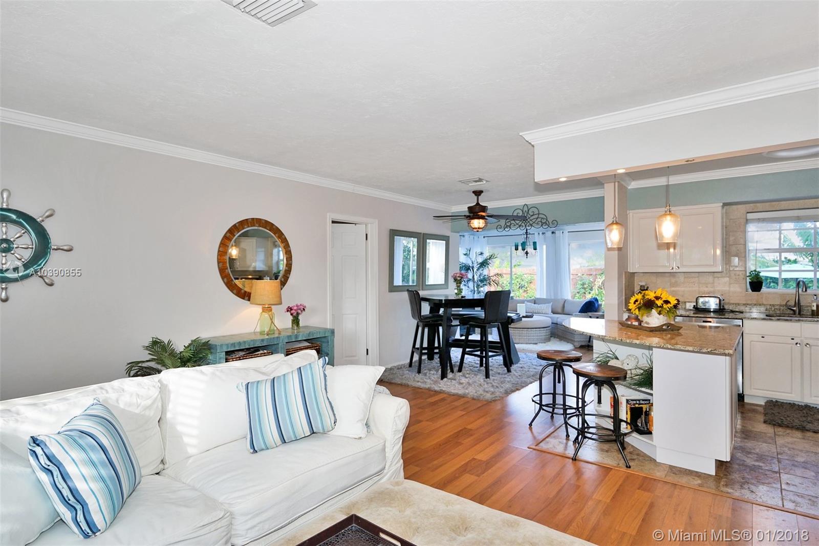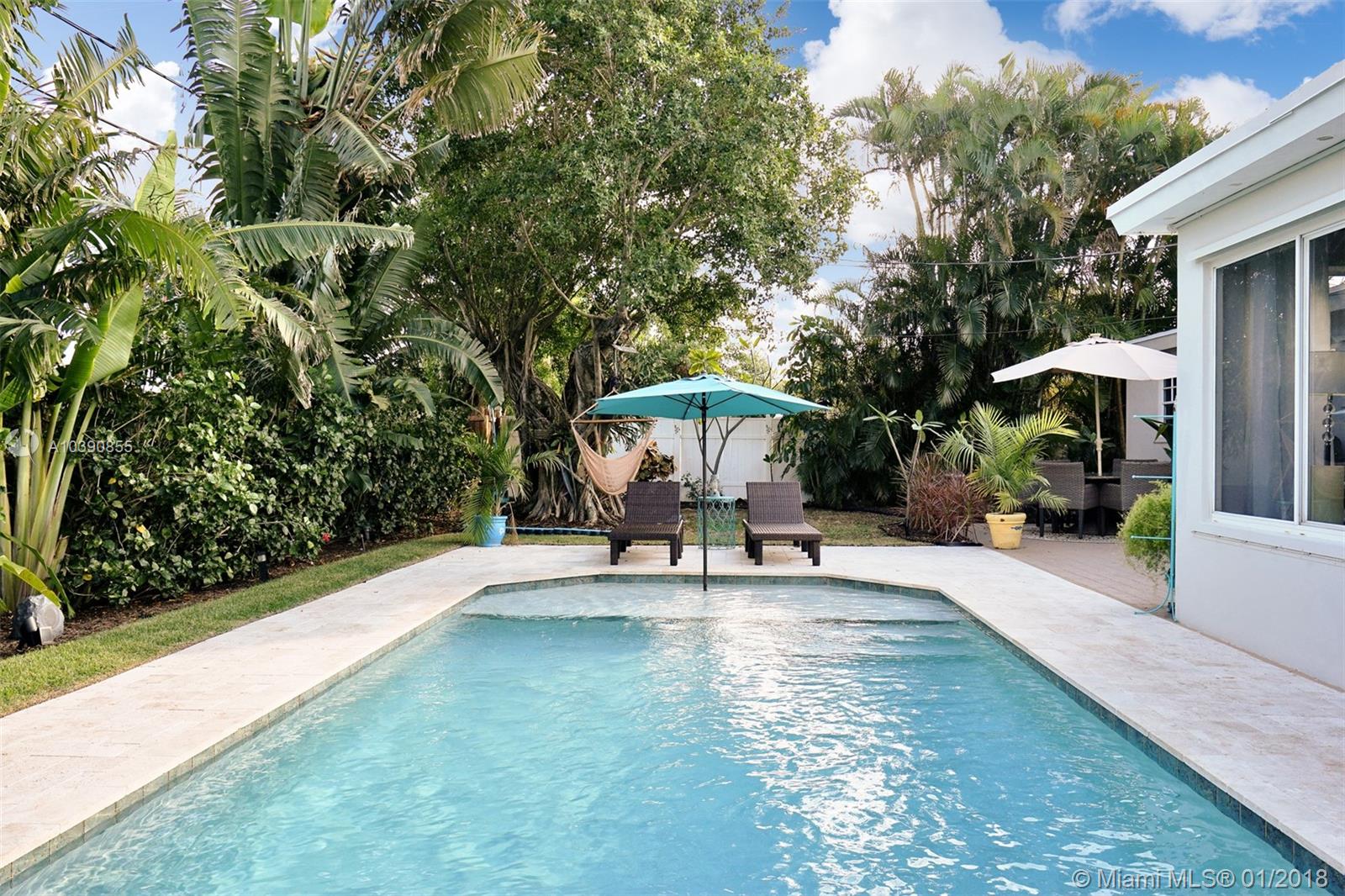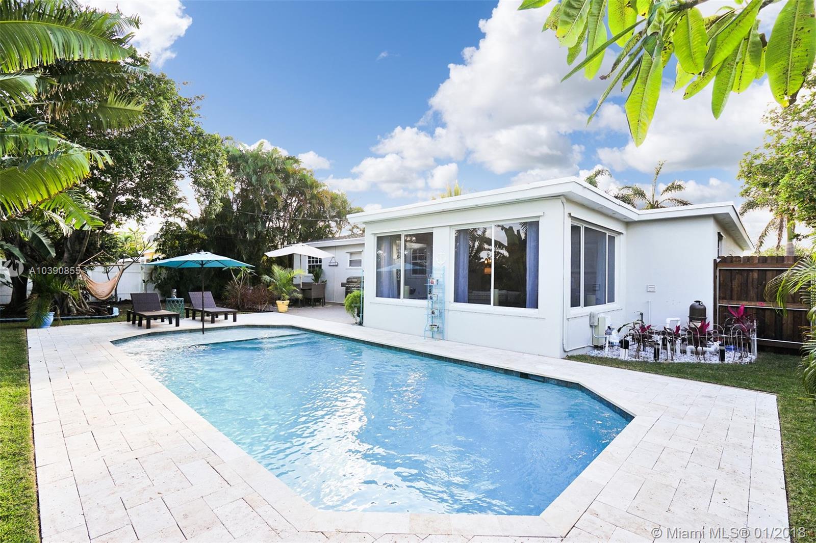 East Boca Living! Perfectly maintained 3/2 home! 2017 salt water pool, Beautiful yard & landscaping. Ext & Int paint, Kitchen has new 2017 S/S appliances, granite. Impact garage door, patio door & Hurricane panels w/new hardware. Newer A/C & W/H. Too many updates to list! This property is a must see. 5 min to beach, walk to shops. No HOA!