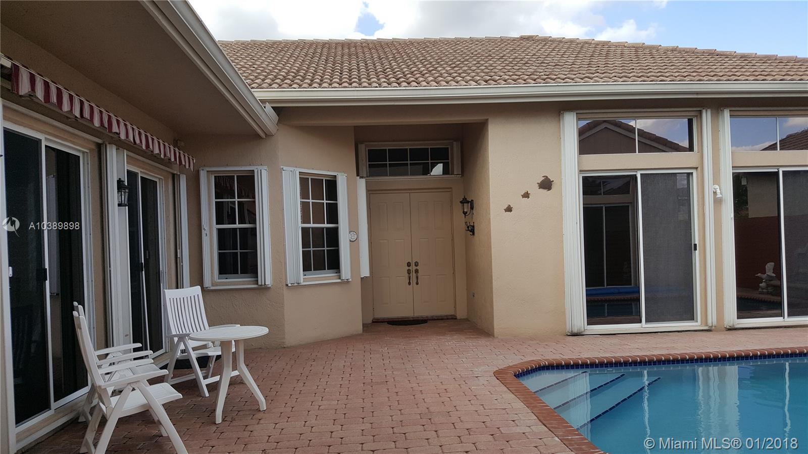 AWARD WINNING DESIGN OF COURTYARD HOME. MAIN HOUSE IS 3BR/2BA + 1BR/1BA DETACHED GUESTHOUSE (MOTHER-INLAW SUITE). LOCATED IN DESIREABLE SPRING VALLEY CLOSE TO I75, SHERIDAN AND PINES BLVD (COSTCO) FOR EASY COMMUTE. METICULOUSLY MAINTAINED BY ORIGINAL OWNERS. HIGH END LAMINATE WOOD FLOORING THROUGHOUT. QUARTZ COUNTERTOPS IN KITCHEN & MASTER BATH. FORMAL DINING ROOM. SPACIOUS 21'X14' MASTER BR WITH SITTING AREA & TRAY CEILING. LOW HOA FEE OF $75/MONTH, COMMUNITY POOL, RECREATION AREA, TENNIS COURTS. THIS AMAZING HOME HAS 2 DRIVEWAYS + COVERERED PARKING UNDER THE PORTE-COCHERE+ 2 CAR GARAGE FOR TOTAL PARKING UP TO 11 CARS. 'A' RATED SCHOOLS. ACCORDIAN HURRICANE SHUTTERS ON ALL OPENINGS. AUTO APRINKLERS DRAW FROM LAKE. PLEASE EXCLUDE WASHER & DRYER. OWNERS PREFER A MID/LATE MARCH CLOSING.